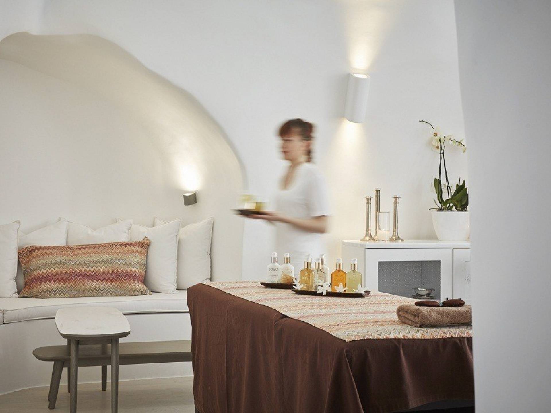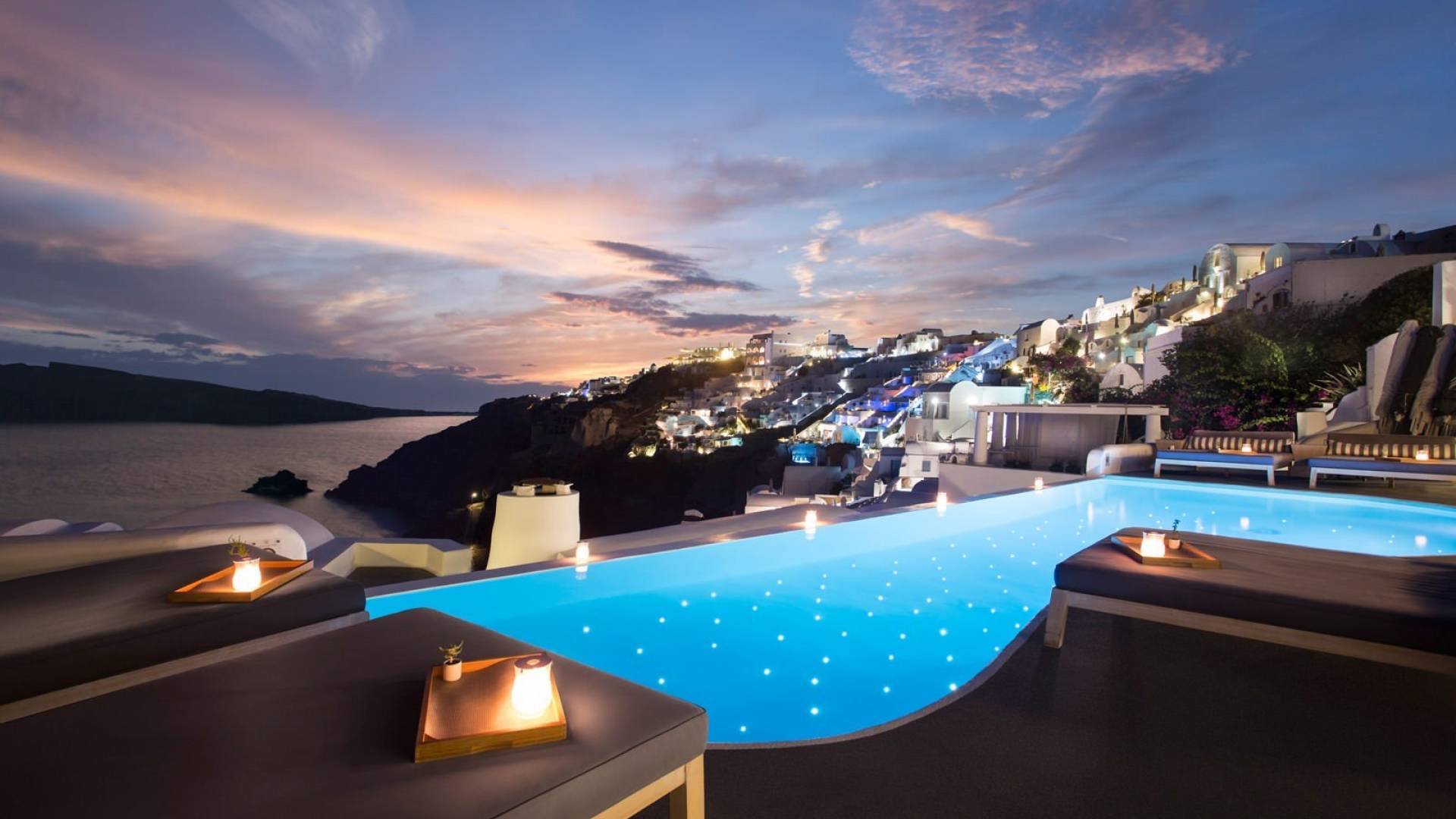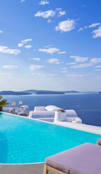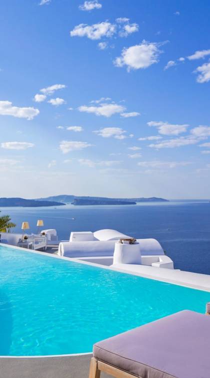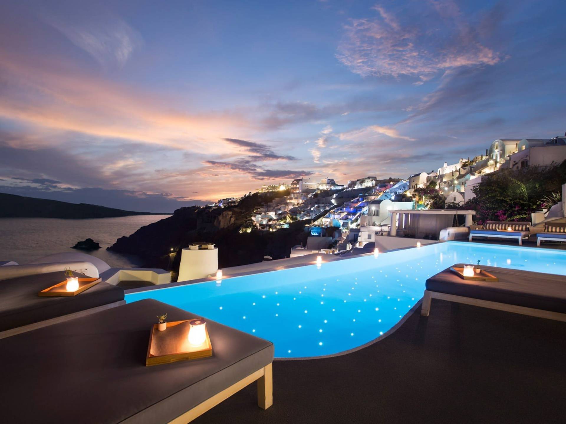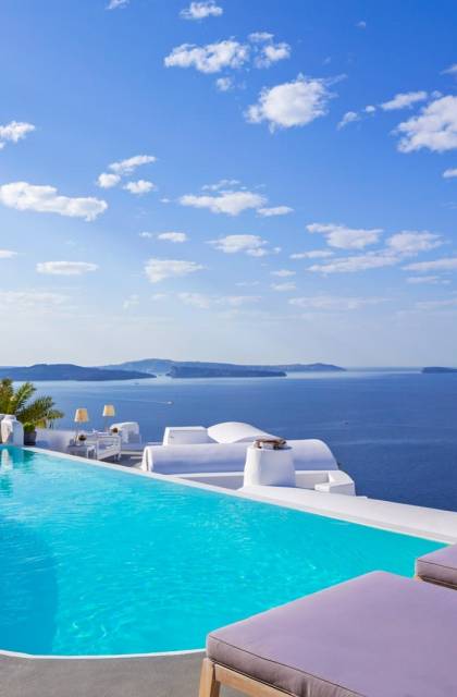 Katikies Santorini combina armoniosamente la estética del lujo de Caldera viviendo en uno de los entornos naturales más magníficos del mundo, en un entorno espléndido que ofrece todos los lujos. Se ha prestado especial atención a todas las comodidades y servicios que están disponibles para los huéspedes desde la selección de excelentes opciones gastronómicas, las 3 piscinas infinitas, el jacuzzi interior, la terraza para tomar el sol con jacuzzi al aire libre y una pequeña biblioteca con acceso a Internet.