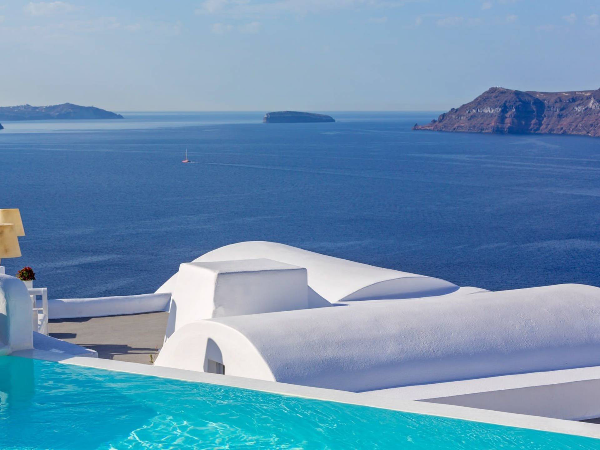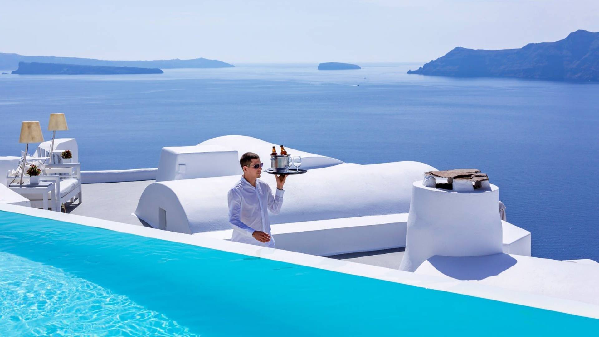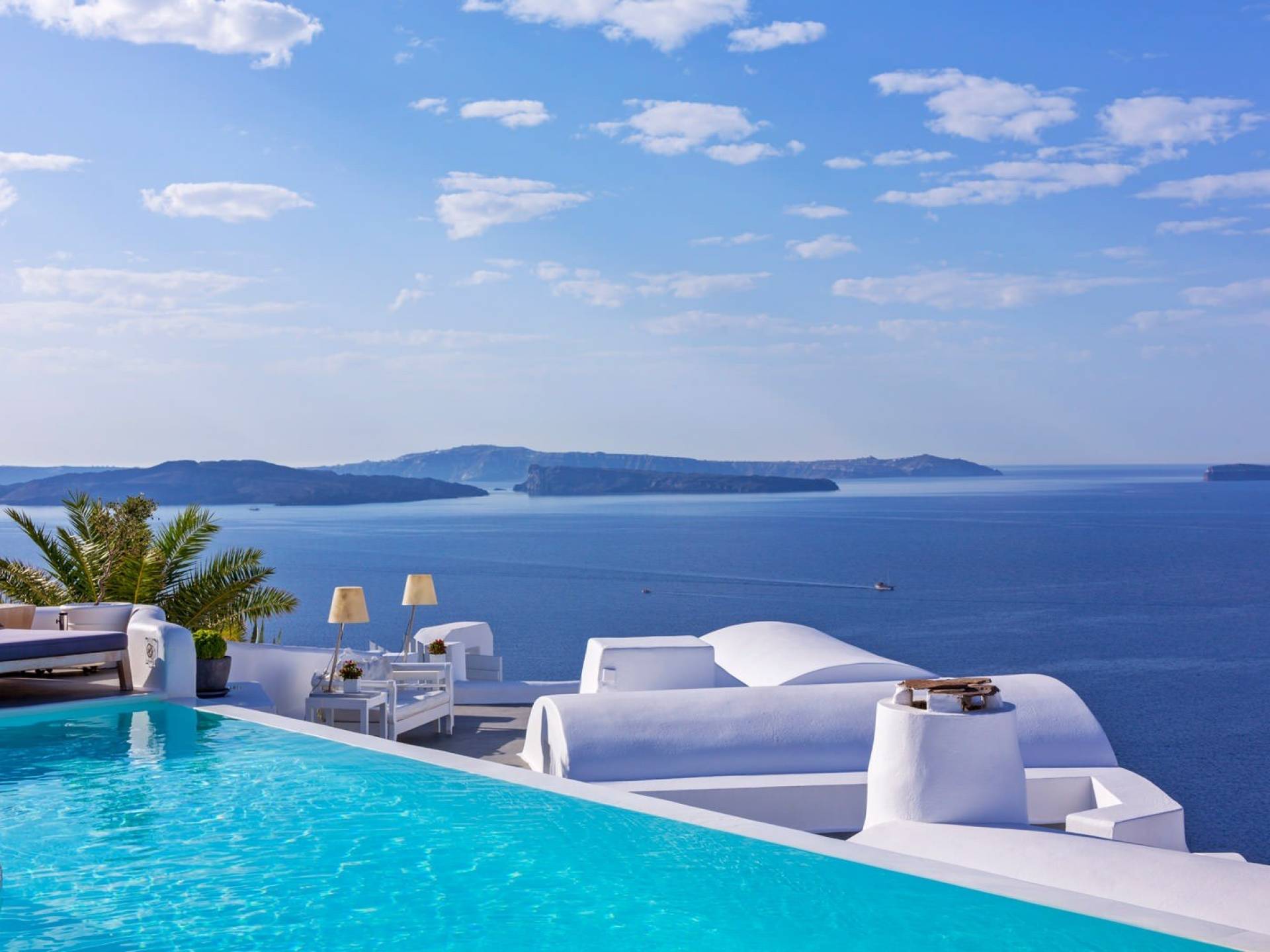 Katikies Santorini combina armoniosamente la estética del lujo de Caldera viviendo en uno de los entornos naturales más magníficos del mundo, en un entorno espléndido que ofrece todos los lujos. Se ha prestado especial atención a todas las comodidades y servicios que están disponibles para los huéspedes desde la selección de excelentes opciones gastronómicas, las 3 piscinas infinitas, el jacuzzi interior, la terraza para tomar el sol con jacuzzi al aire libre y una pequeña biblioteca con acceso a Internet.