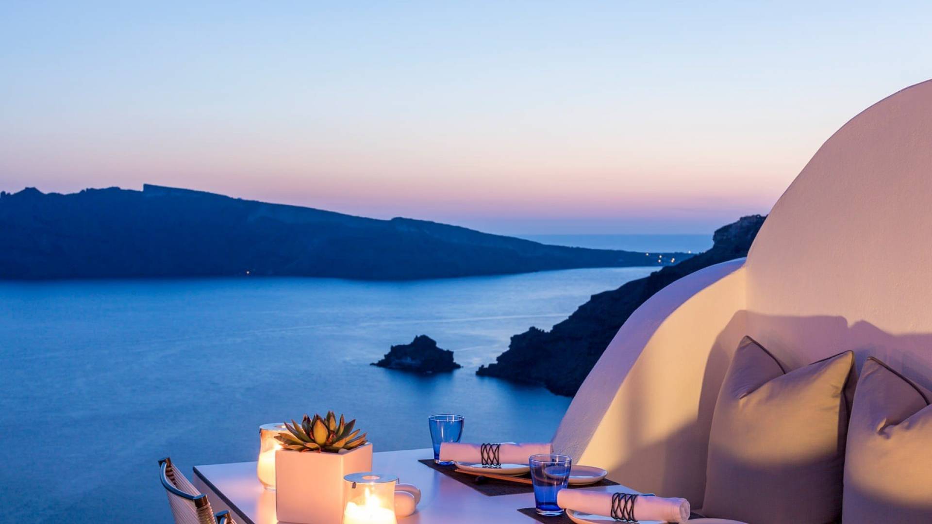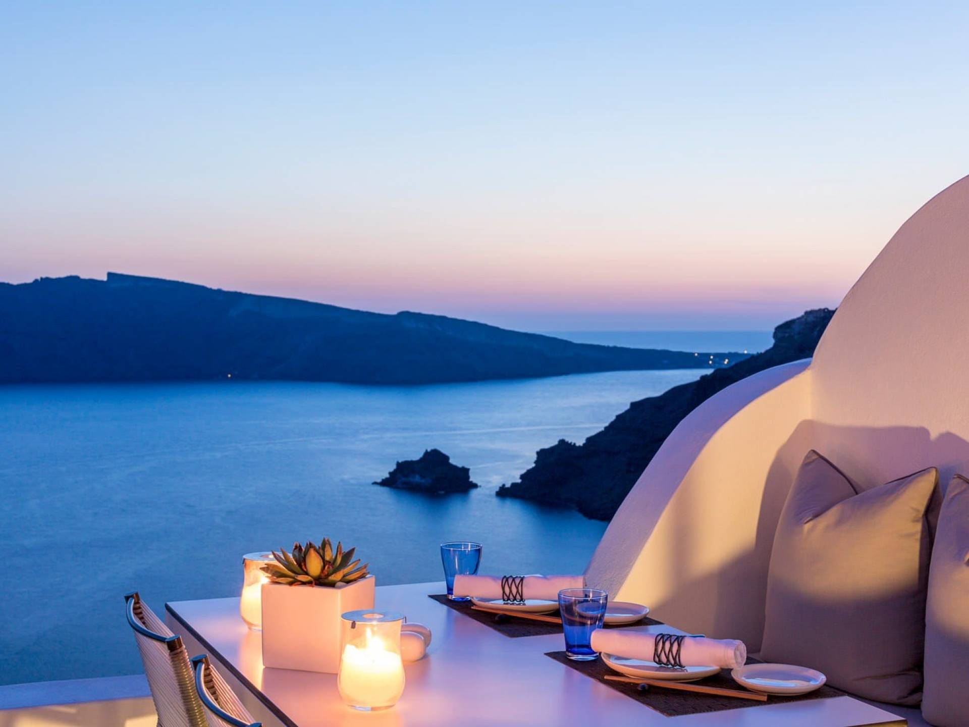 Inspirando profundas emociones de encanto y fascinación, el hotel de lujo Katikies en Oia Santorini es famoso por sus servicios incomparables, atmósfera cálida y sentido del romance combinados de manera única en un entorno excepcional y un entorno natural, invitando a sus huéspedes a experimentar momentos de puro lujo en uno de los mejores hoteles de Oia Santorini. La impresionante vista de la caldera y el mar azul desde todas las suites de lujo, las sublimes puestas de sol de Santorini y las buganvillas rosadas perfectamente cuidadas brindan el magnífico telón de fondo para este perennemente reluciente y reluciente hotel de lujo blanco que se derrama por los acantilados de la mágica Caldera. Un hotel de lujo legítimamente considerado como uno de los mejores hoteles en Oia Santorini por sus servicios personalizados y opciones de alojamiento de alta gama.