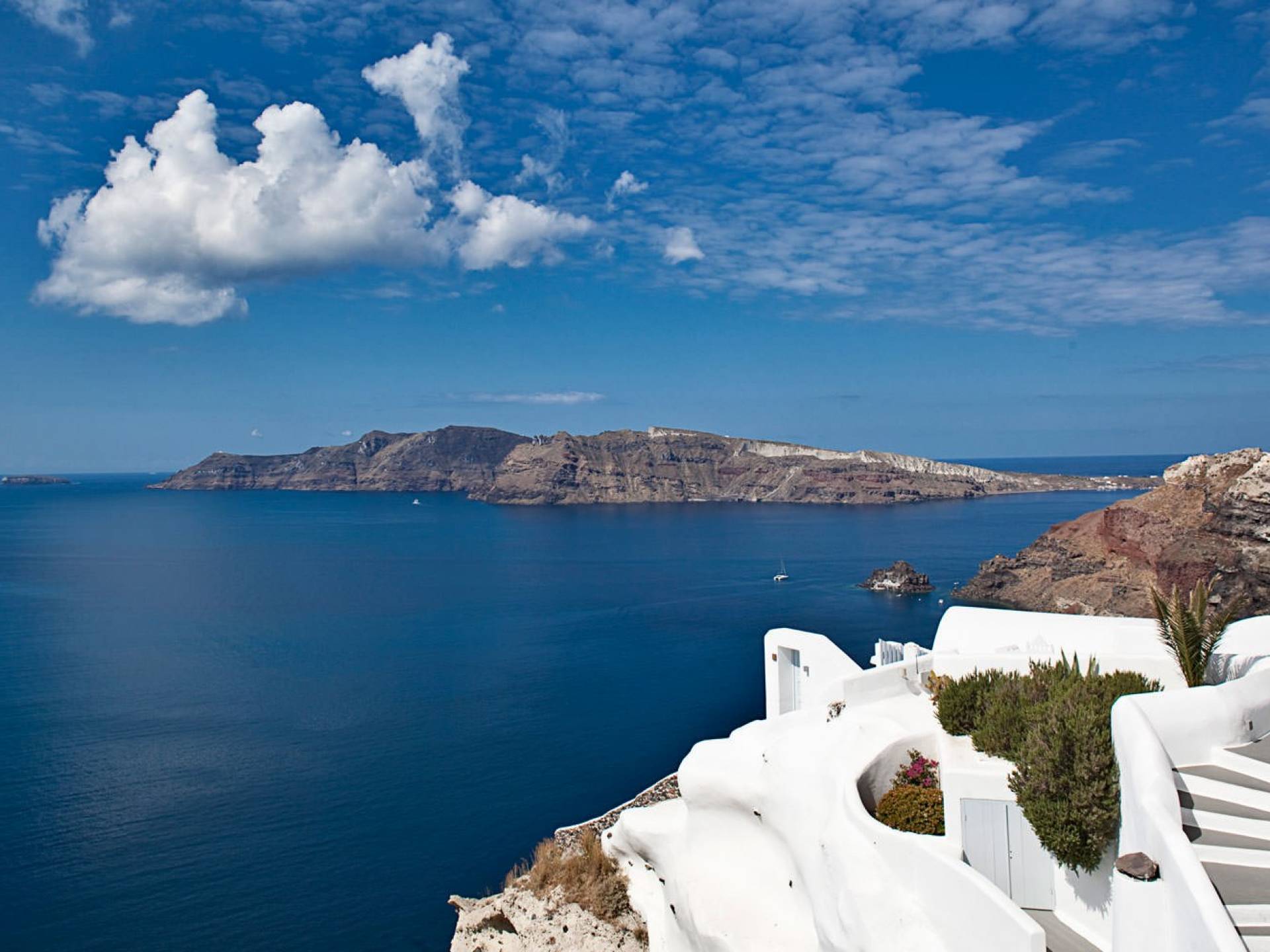 Oia es el pueblo más famoso de Santorini, a 11 km de Fira, en la parte norte de la isla. Reconocido mundialmente por su fascinante puesta de sol, merece el título del pueblo más hermoso de Santorini. Situado en la cima de un acantilado, se abre a una vista asombrosa sobre el volcán de Palia y Nea Kameni y la isla de Thirassia. Su carácter tradicional con casas encaladas, calles adoquinadas e iglesias con cúpulas azules crean un marco increíble…Oia es el pueblo más famoso de Santorini, a 11 km de Fira, en la parte norte de la isla. Reconocido mundialmente por su fascinante puesta de sol, merece el título del pueblo más hermoso de Santorini. Situado en la cima de un acantilado, se abre a una vista asombrosa sobre el volcán de Palia y Nea Kameni y la isla de Thirassia. Su carácter tradicional con casas encaladas, calles adoquinadas e iglesias con cúpulas azules crean un marco increíble…