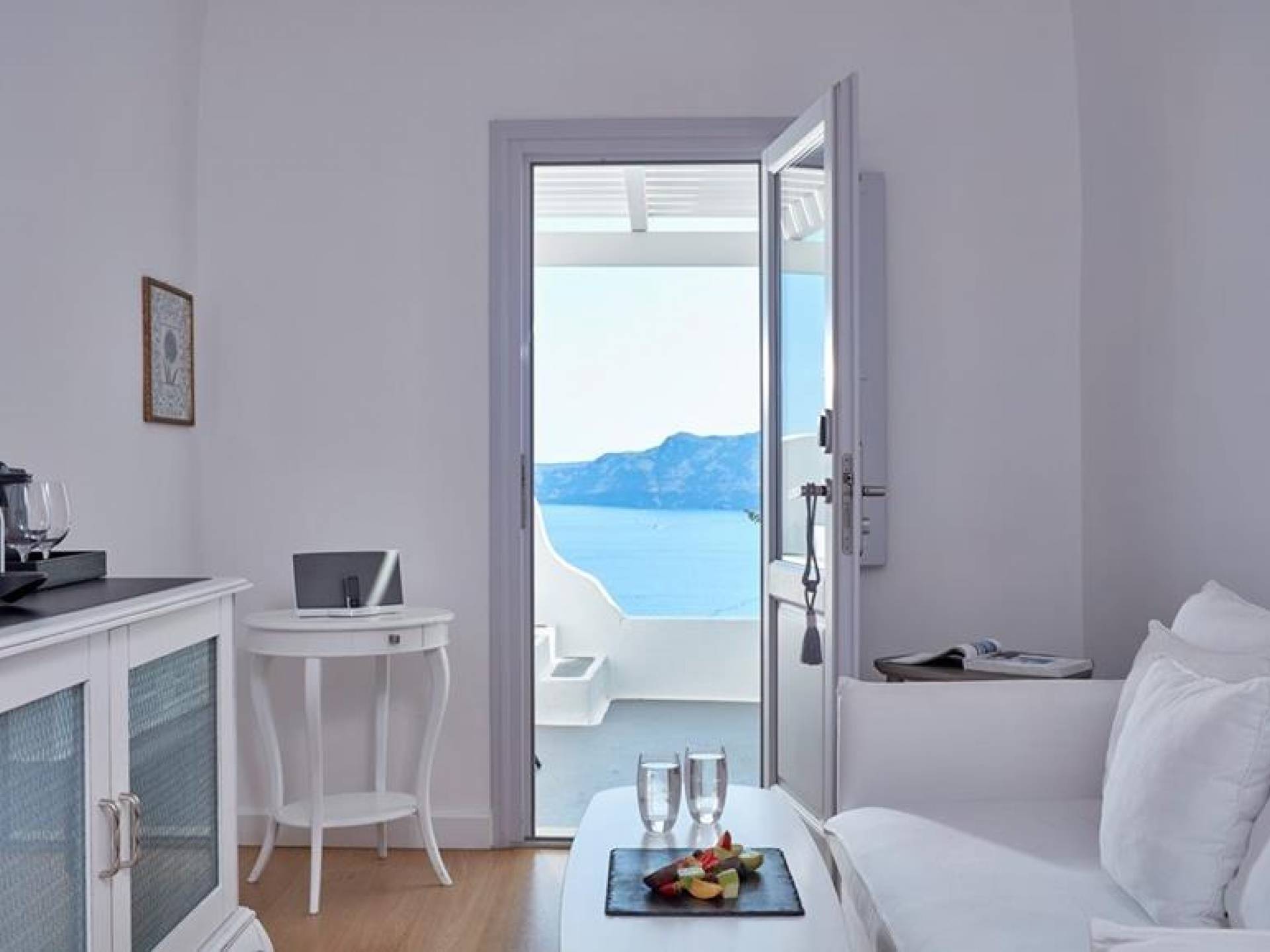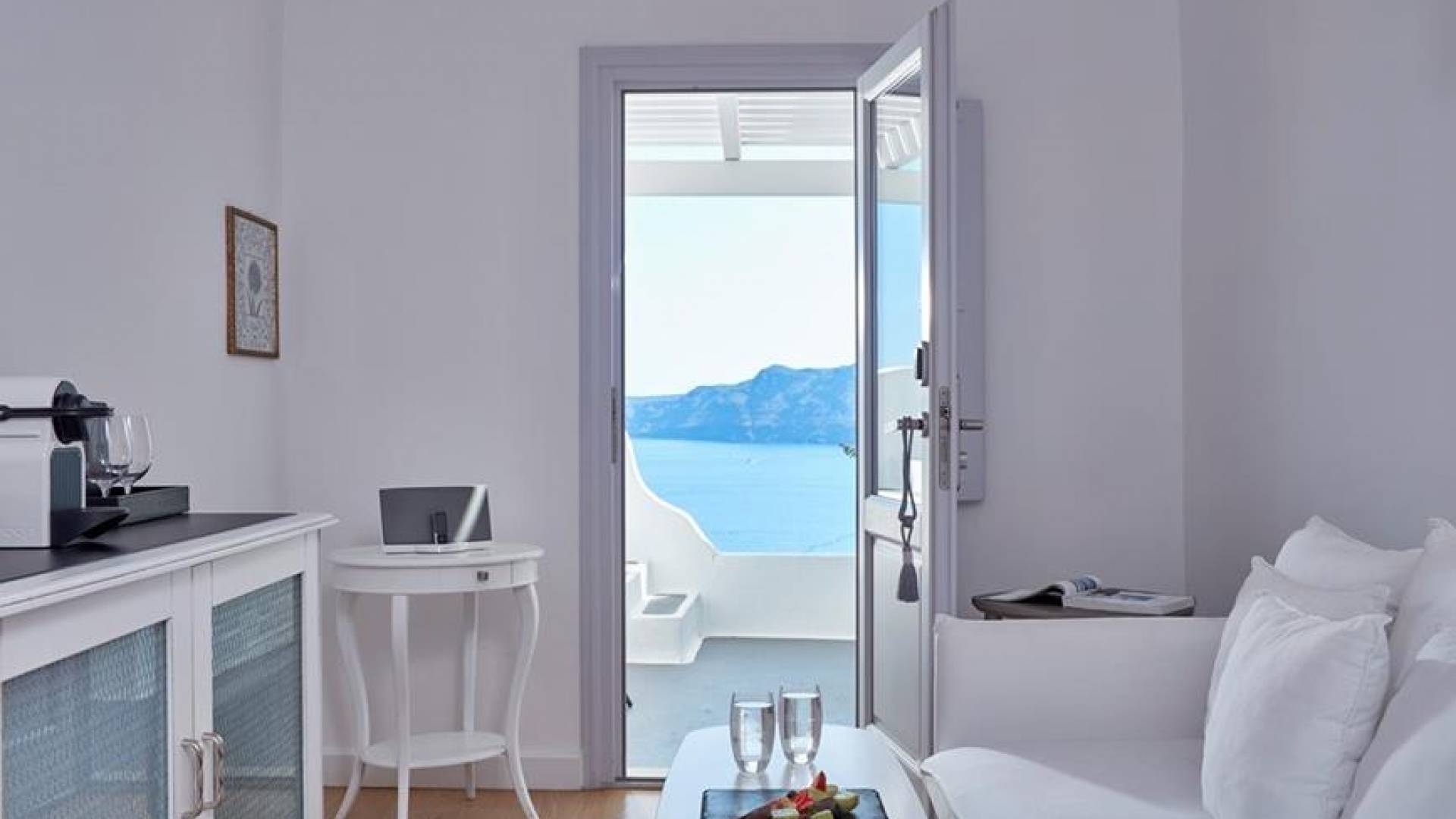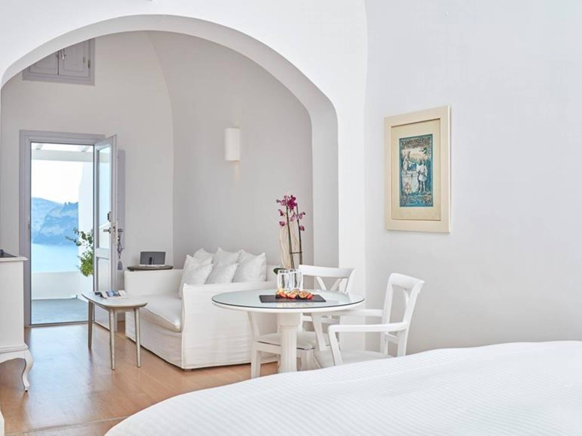 La sensación de intimidad se proyecta en esta opulenta de las suites. La atención cuidadosa a los exquisitos detalles contemporáneos y clásicos del mar Egeo abunda en las suntuosas áreas de estar y de dormir. La majestuosa terraza combina la ceremonia con la elegancia simple con un salón al aire libre, un comedor al aire libre, una terraza privada para tomar el sol y un jacuzzi al aire libre para dos personas, todo con estupendas vistas a la Caldera.