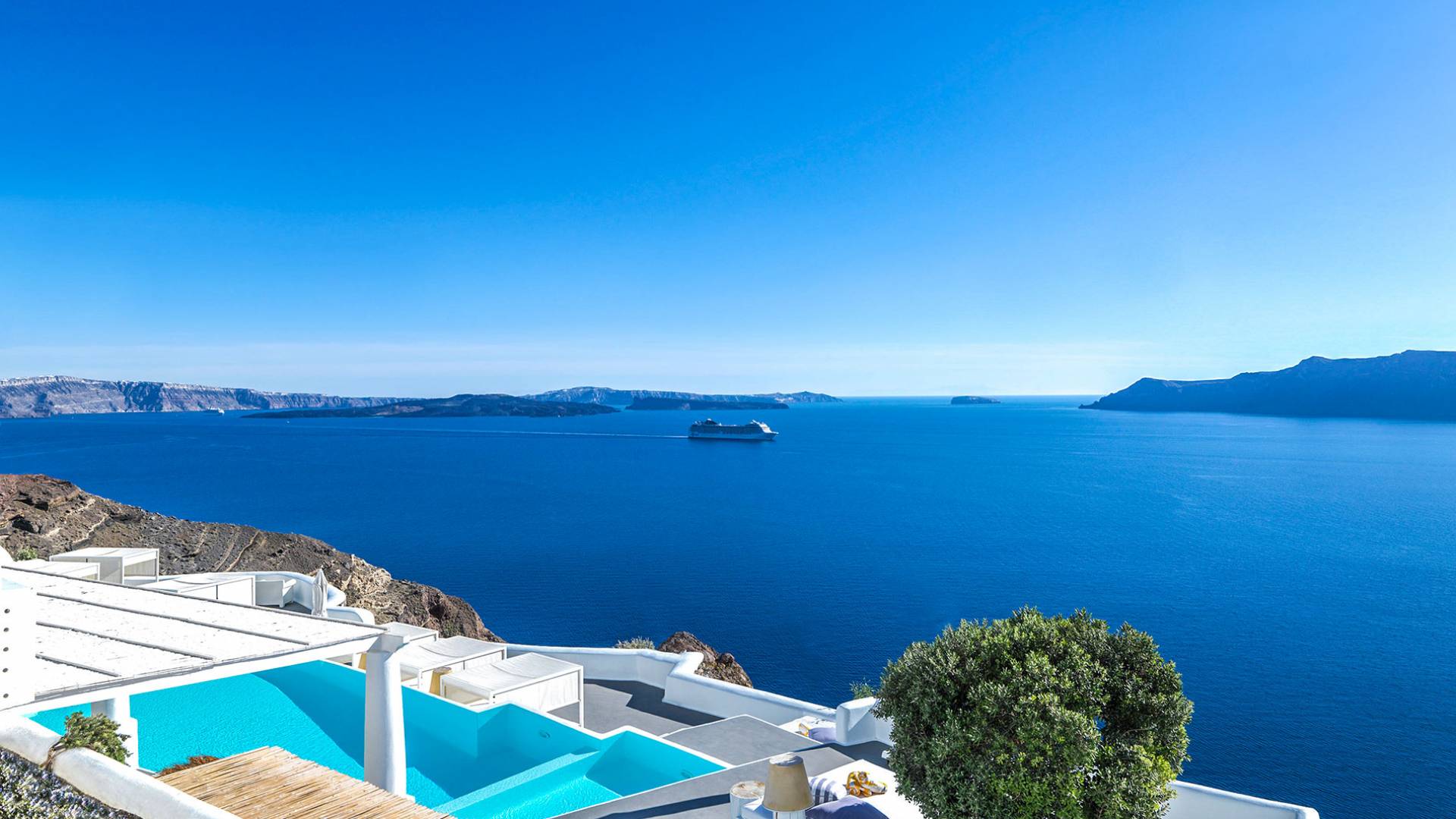 Combinación inigualable de elegancia clásica y estilo contemporáneo, puntuada por un mobiliario simple, en perfecta armonía con los paisajes, diseñado para encontrar la perfección con instalaciones increíbles para su máxima relajación y comodidad suprema. La pieza central serena de la Master Suite es la gran terraza privada con vistas panorámicas al mar y vistas vírgenes de la Caldera con piscina privada. Esta opción proporciona exclusividad, dándole acceso a servicios exclusivos.