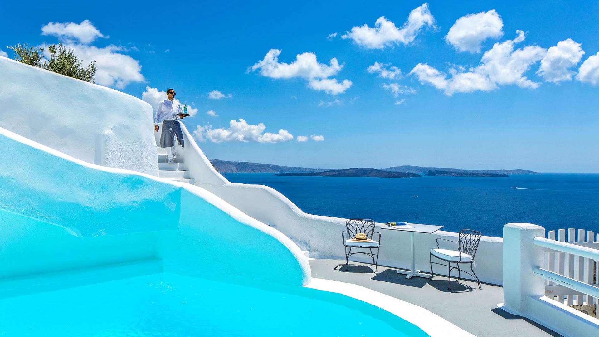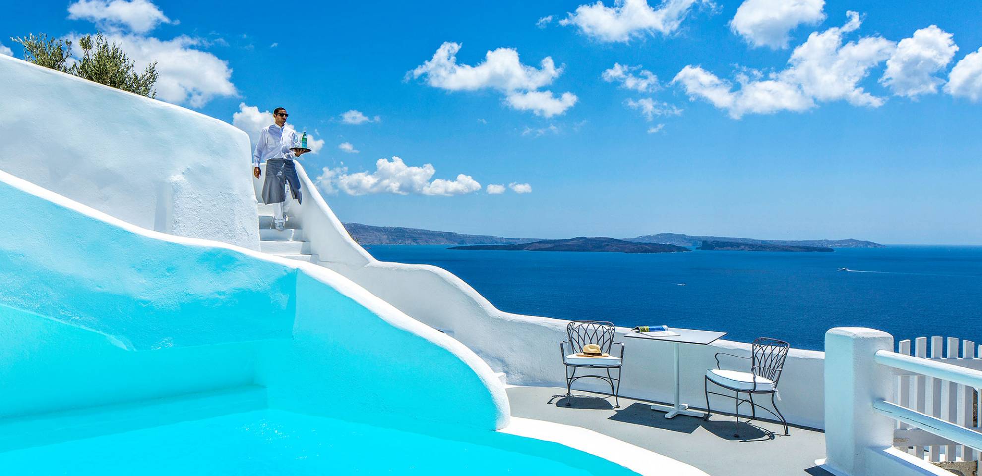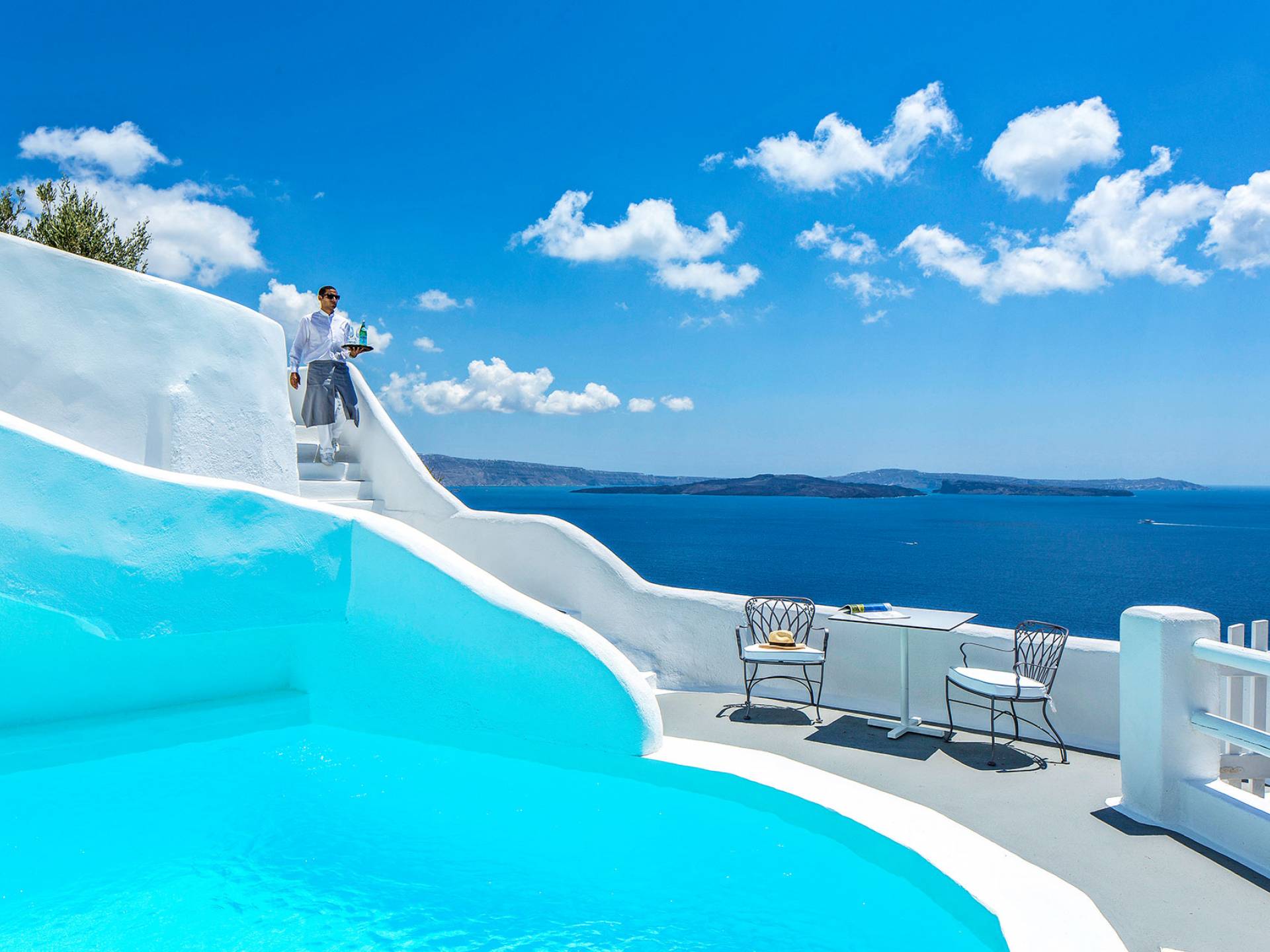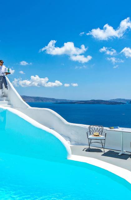 Katikies Kirini Santorini lleva la palabra lujo a un nivel completamente nuevo ofreciendo a los visitantes la idílica atmósfera de Santorini con alojamientos más allá de la imaginación. Las suites de lujo, con vistas a la Caldera, han sido recientemente renovadas y decoradas, en tonos claros de blanco, con elegante simplicidad, encarnando el carácter finalmente chic de este exclusivo hotel boutique en Santorini, Oia.