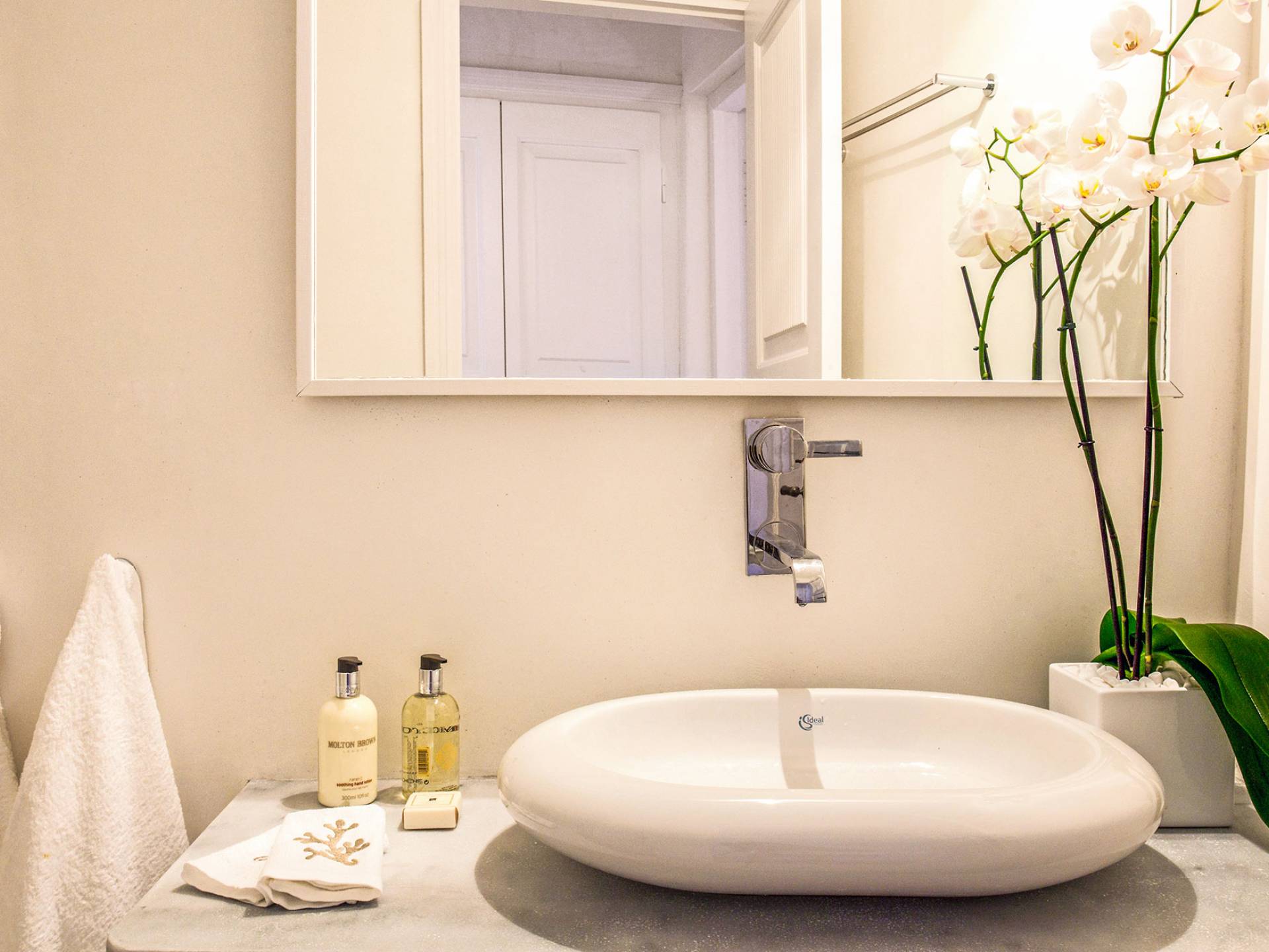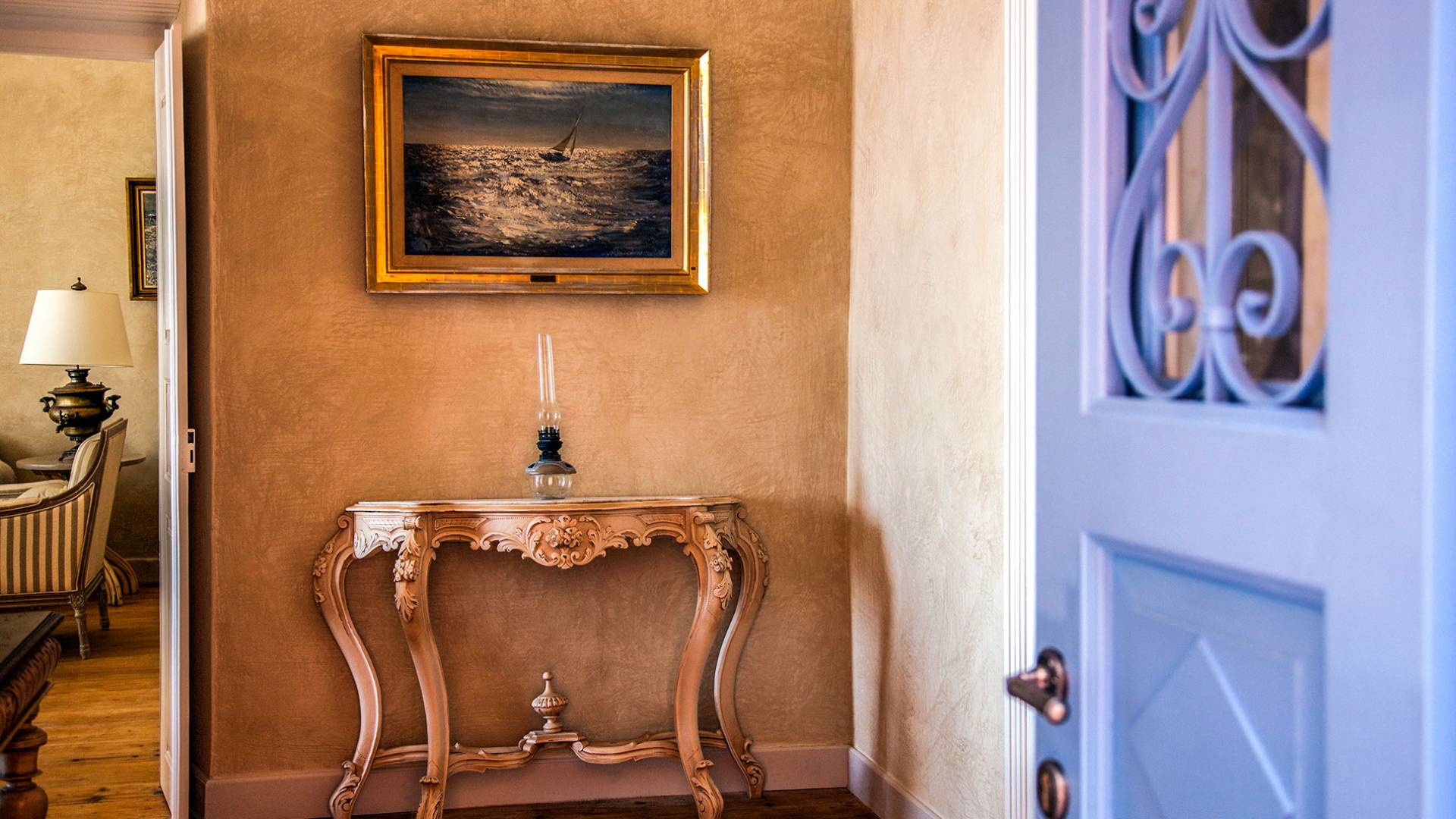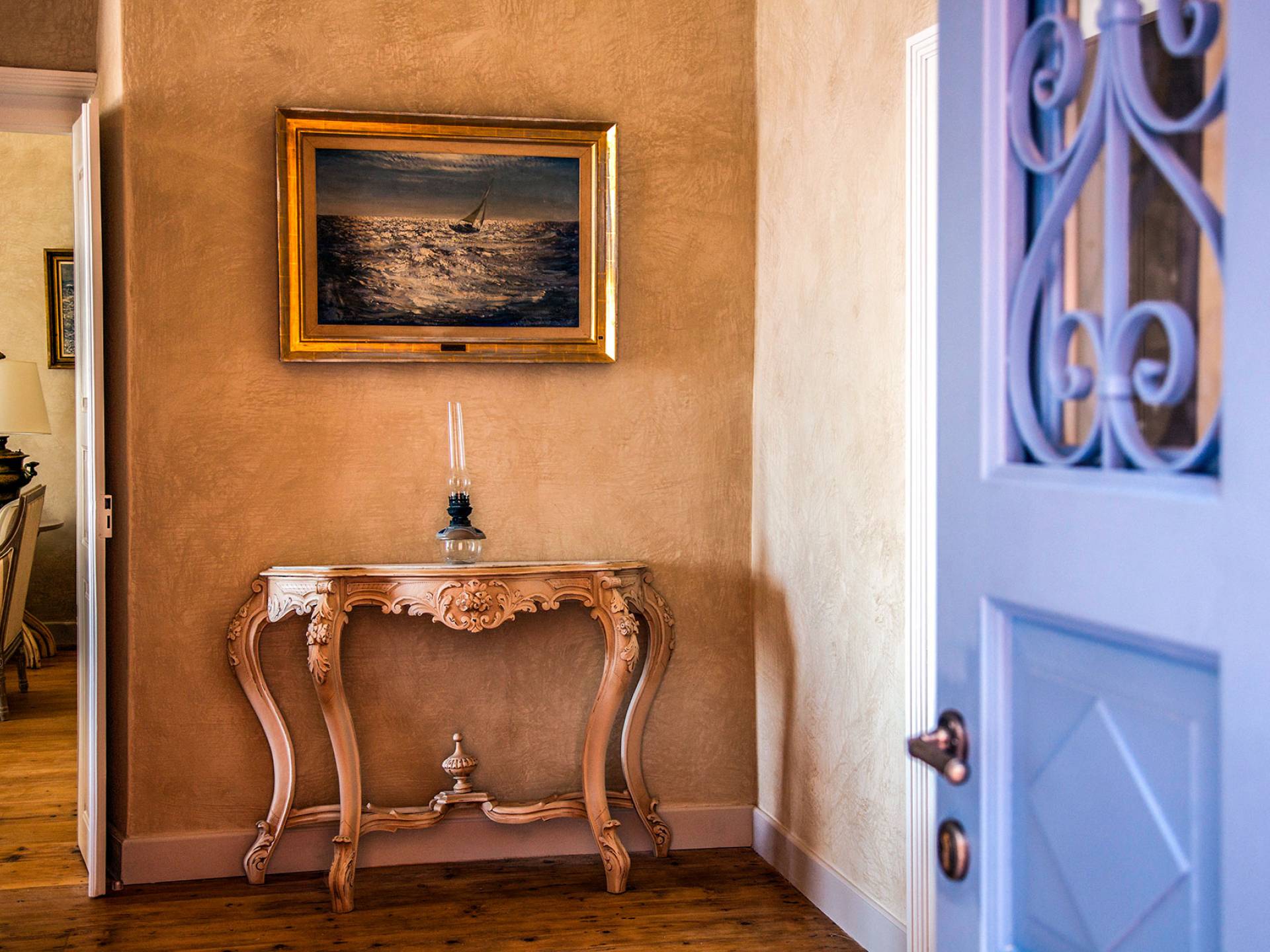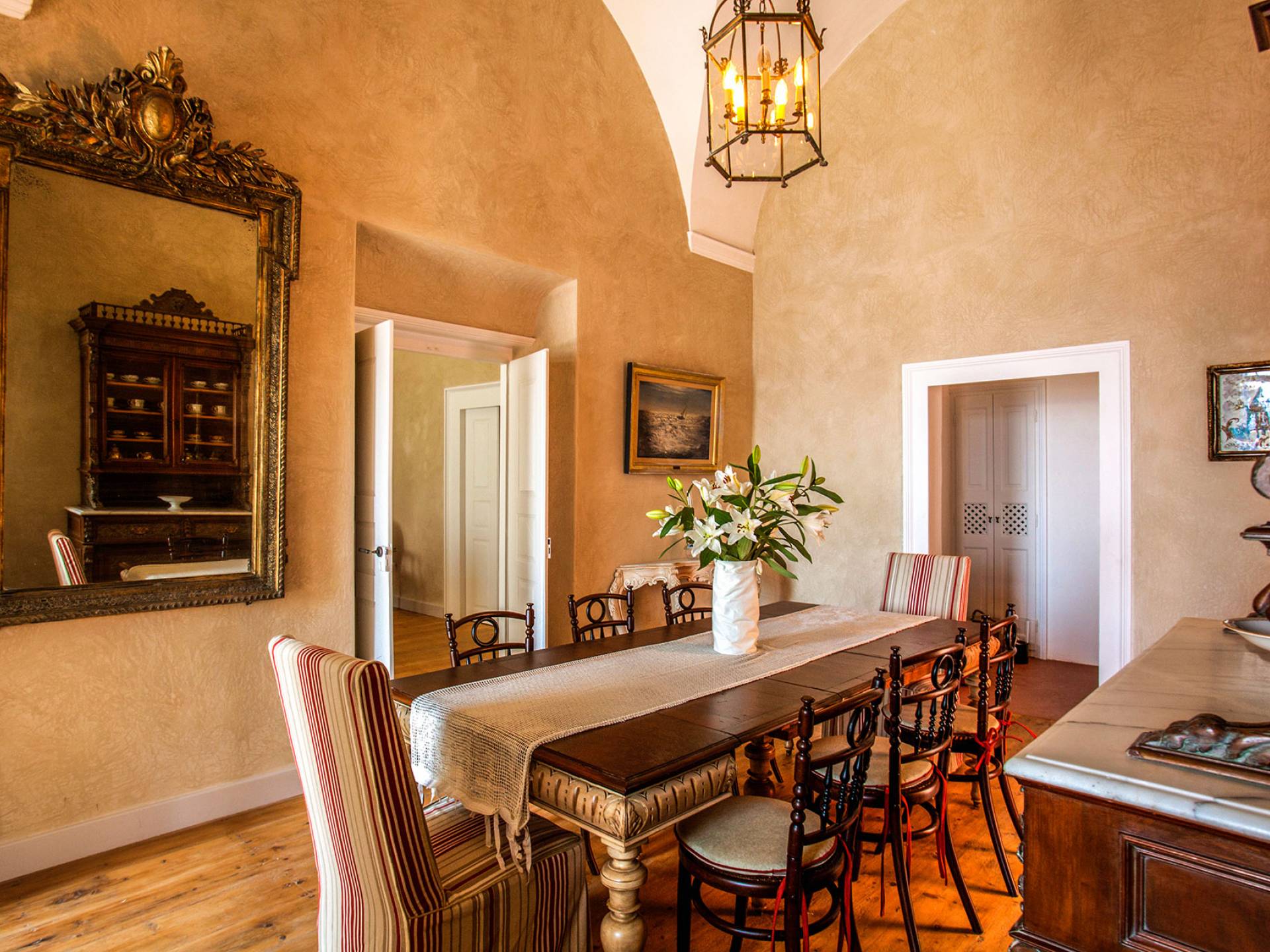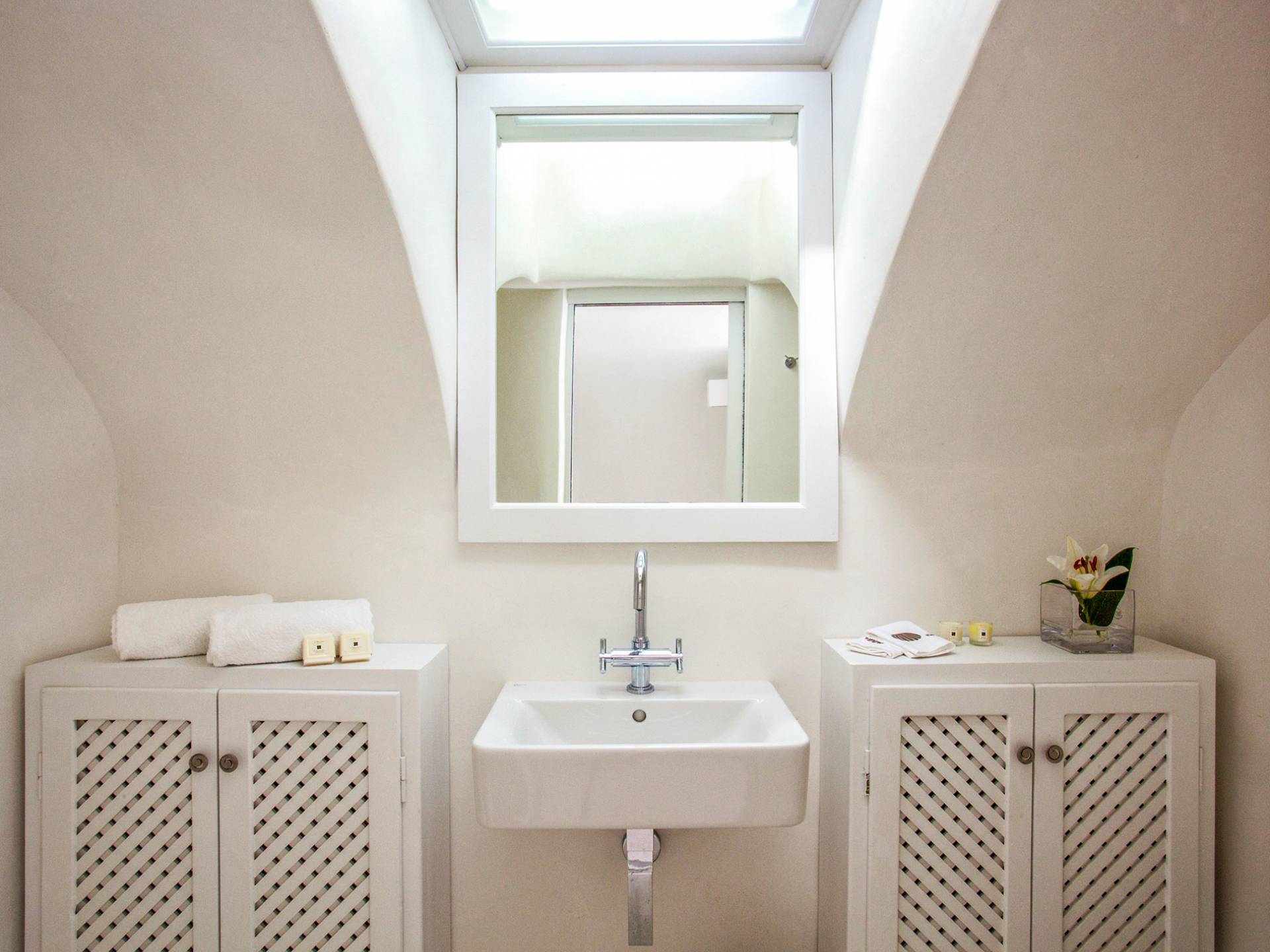 Frente a la mansión, el "patio" es realmente la terraza de los tiempos tradicionales de la isla. Tiene vistas igualmente panorámicas, que se complementa con la fachada neoclásica. Decorado en el modo tradicional de la isla, el patio interior, es el elemento sorpresa arquitectónico de buen gusto de Oia Mansion. Balcón privado con espectacular vista al idílico atardecer. Su reflejo en el agua crea un conducto dorado hacia el sol.