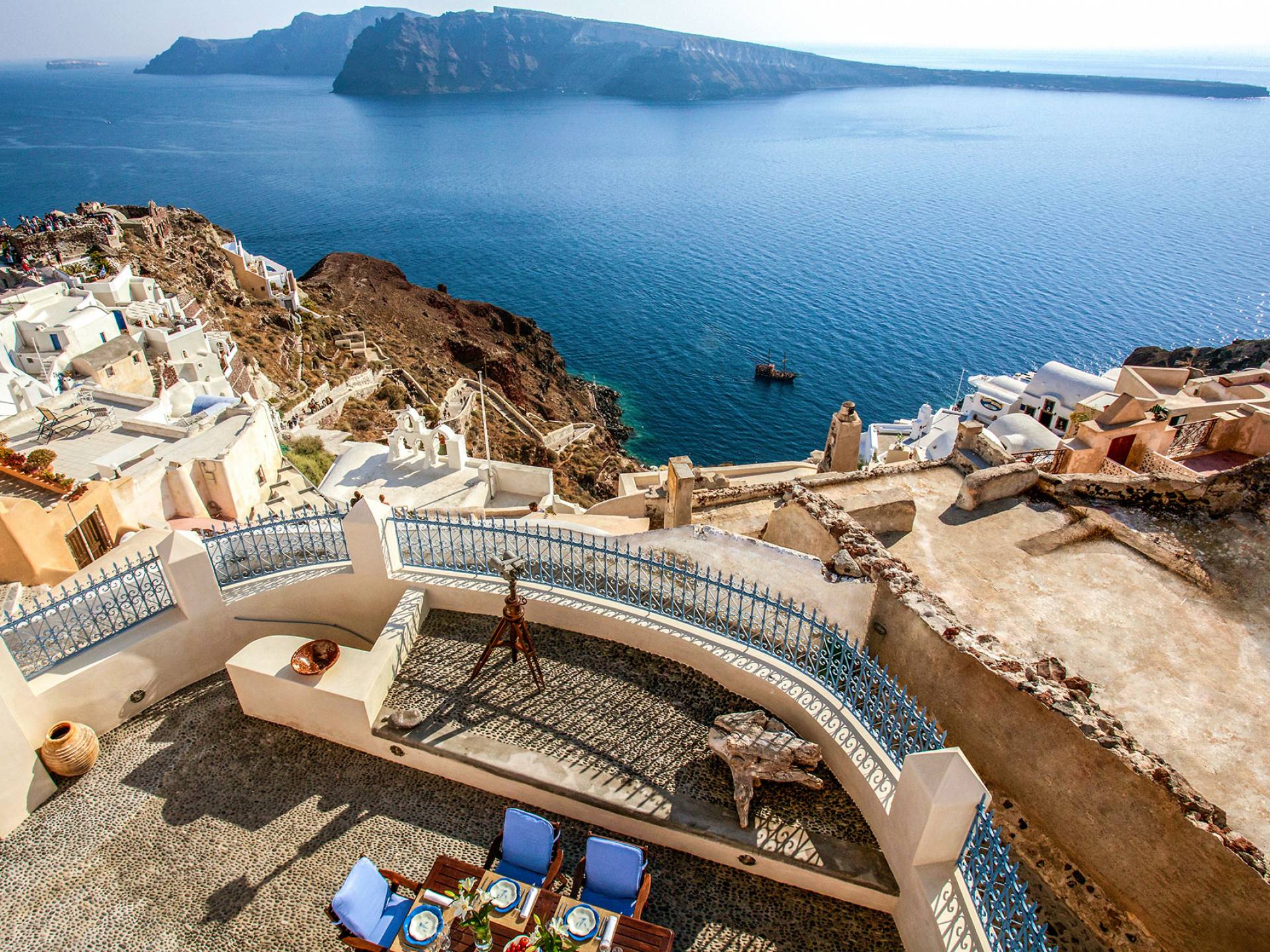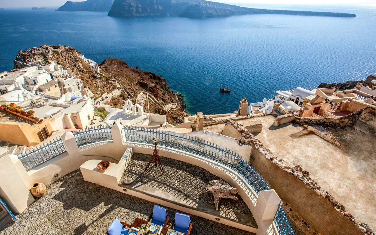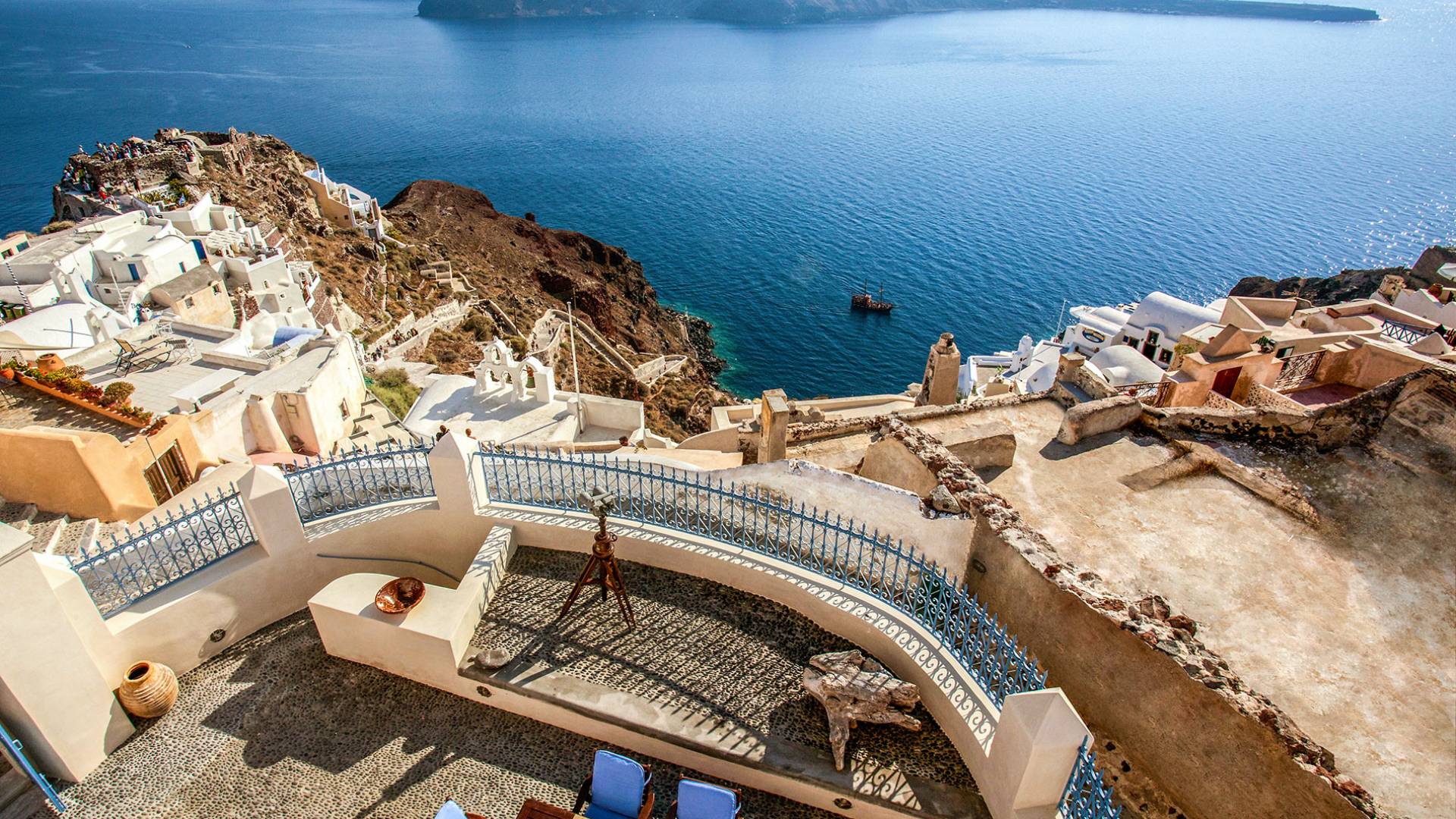 Oia es el pueblo más famoso de Santorini, a 11 km de Fira, en la parte norte de la isla. Reconocido mundialmente por su fascinante puesta de sol, merece el título del pueblo más hermoso de Santorini. Situado en la cima de un acantilado, se abre a una vista asombrosa sobre el volcán de Palia y Nea Kameni y la isla de Thirassia. Su carácter tradicional con casas encaladas, calles adoquinadas e iglesias con cúpulas azules crean un marco increíble…Oia es el pueblo más famoso de Santorini, a 11 km de Fira, en la parte norte de la isla. Reconocido mundialmente por su fascinante puesta de sol, merece el título del pueblo más hermoso de Santorini. Situado en la cima de un acantilado, se abre a una vista asombrosa sobre el volcán de Palia y Nea Kameni y la isla de Thirassia. Su carácter tradicional con casas encaladas, calles adoquinadas e iglesias con cúpulas azules crean un marco increíble…