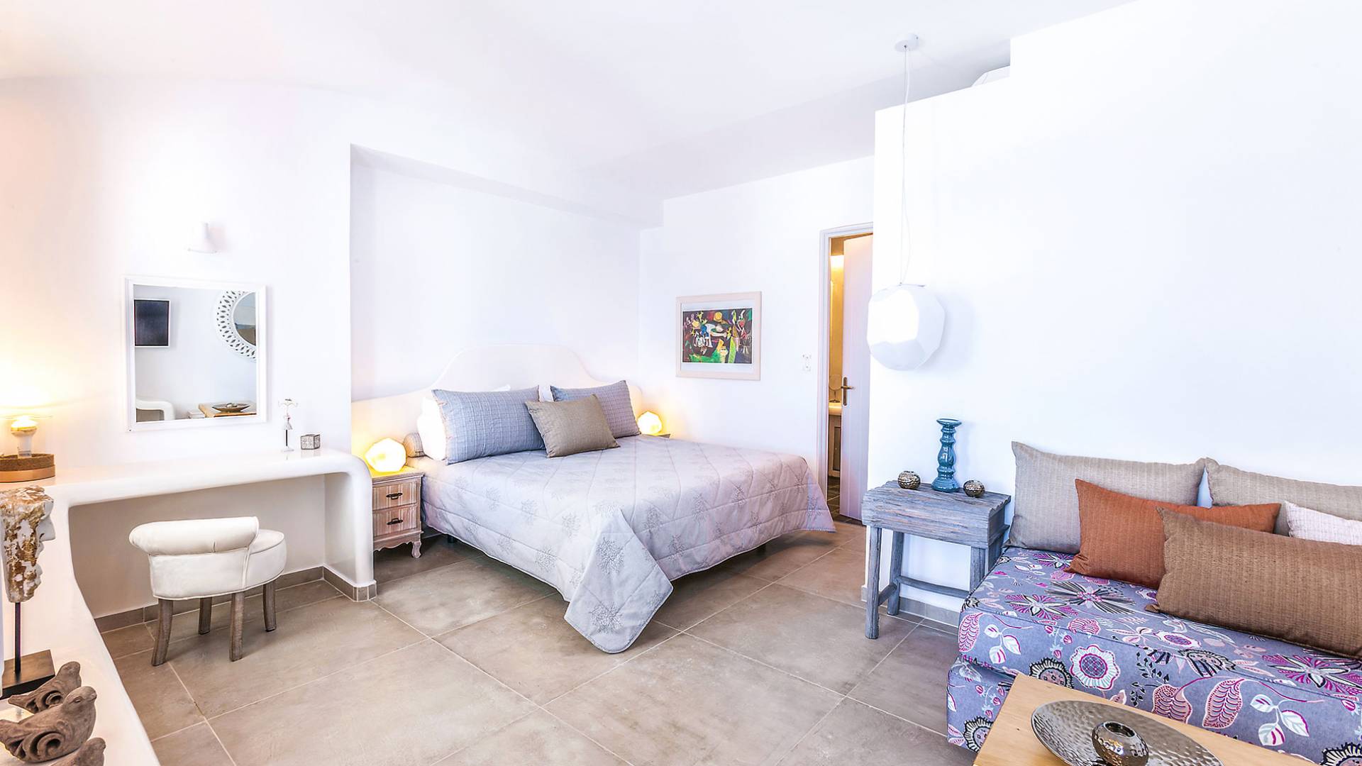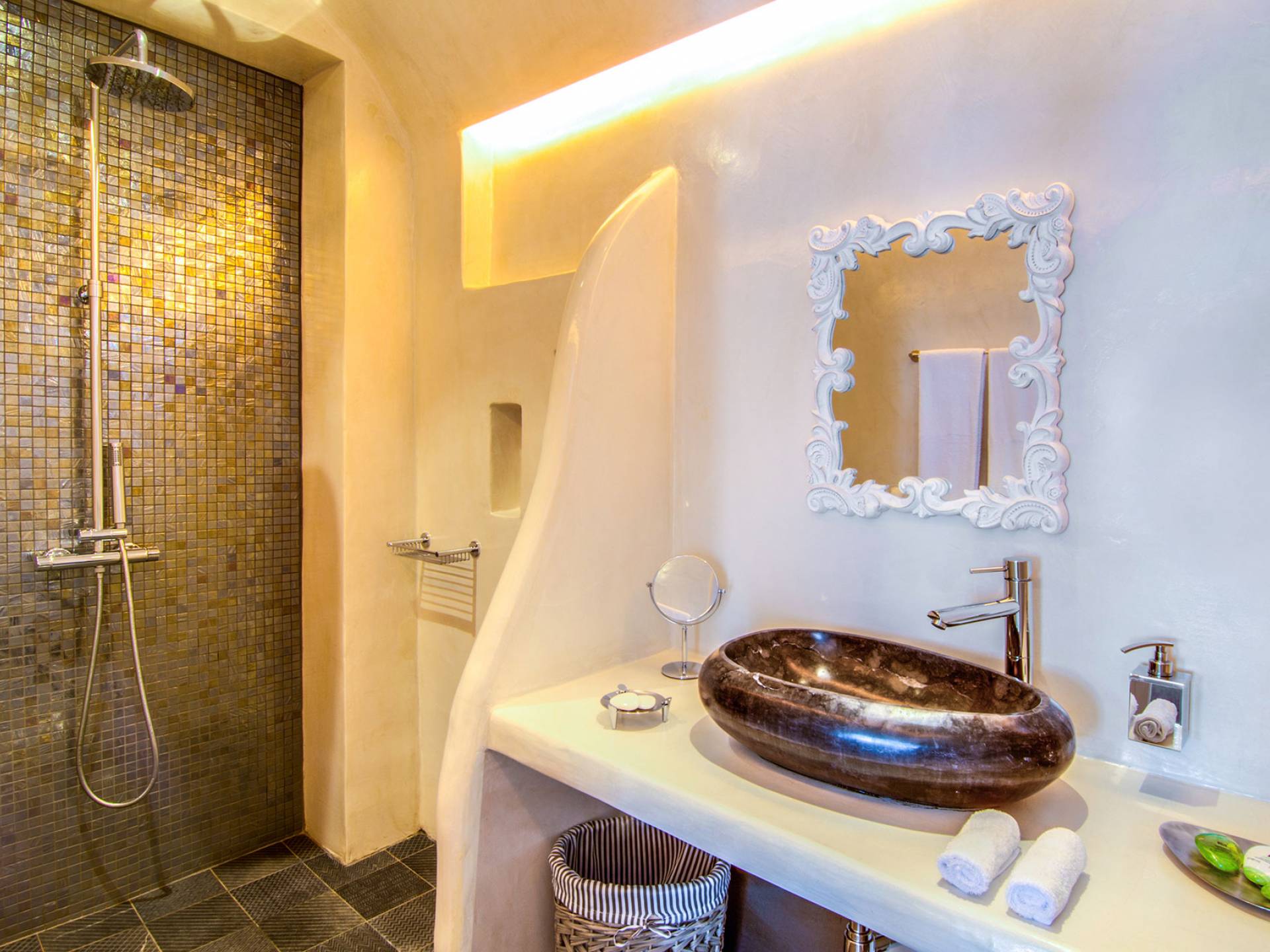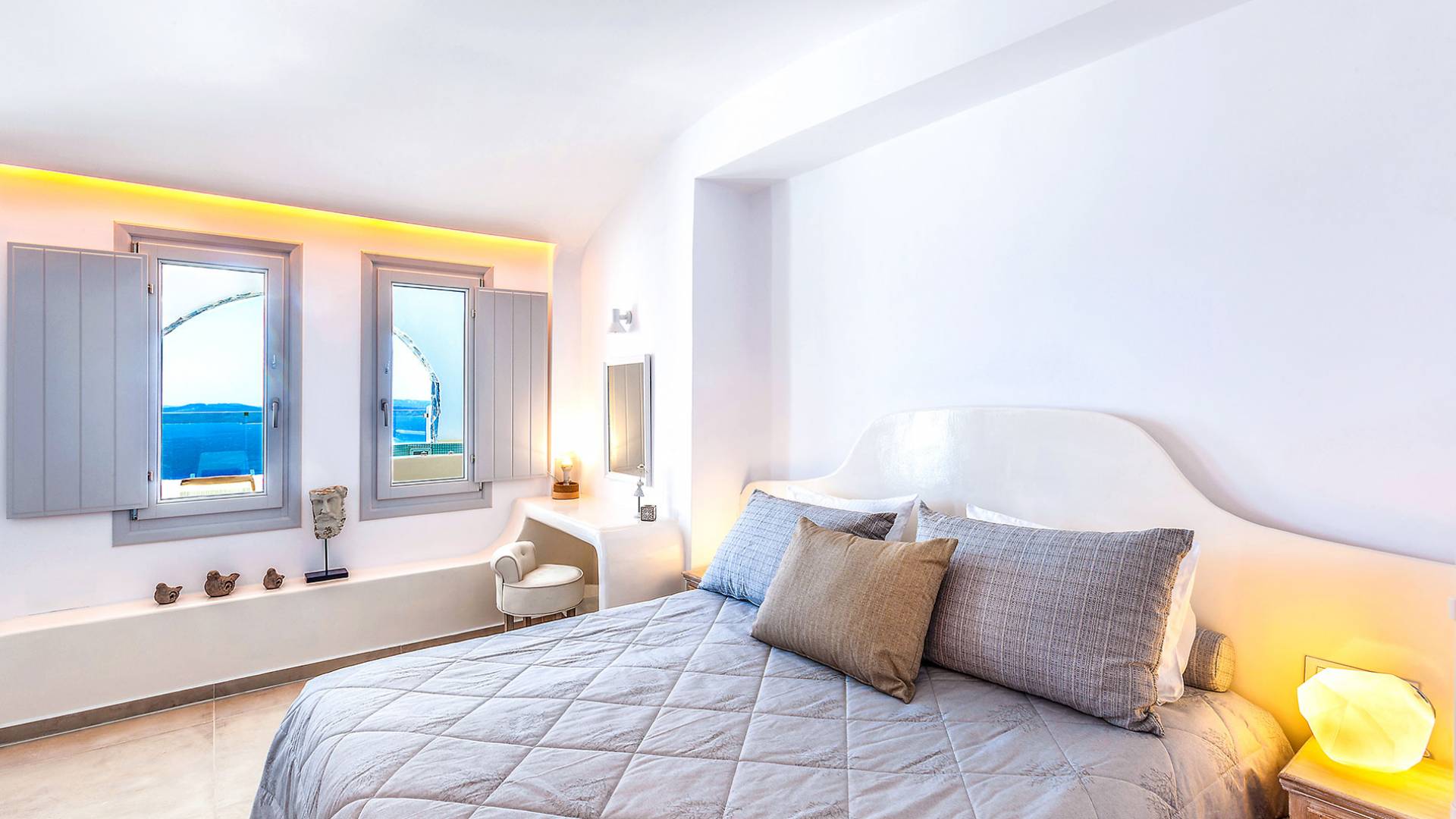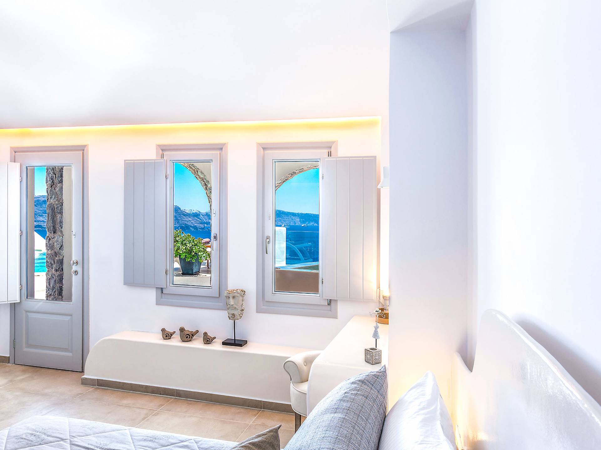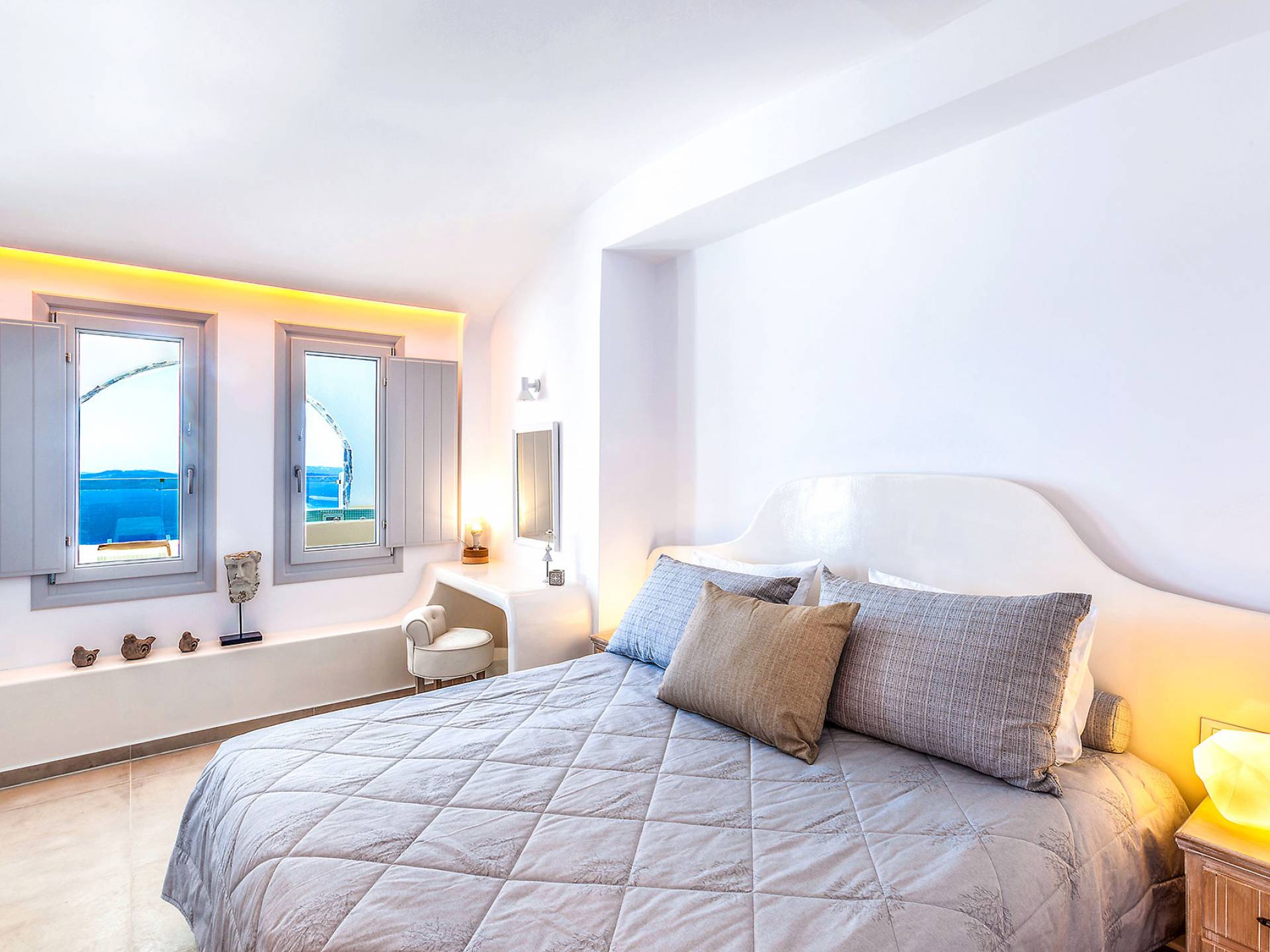 Presentamos la suite Secret Prestige que ofrece vistas despejadas a la Caldera y cuenta con una terraza privada con jacuzzi donde los huéspedes pueden relajarse por completo, disfrutando de preciosos momentos de pura relajación. Ubicada en el primer nivel y con una decoración fresca y contemporánea con sutiles toques de las Cícladas que emanan ese ambiente isleño tradicional, la suite Secret Prestige es una suite relajante que definitivamente te encantará.
