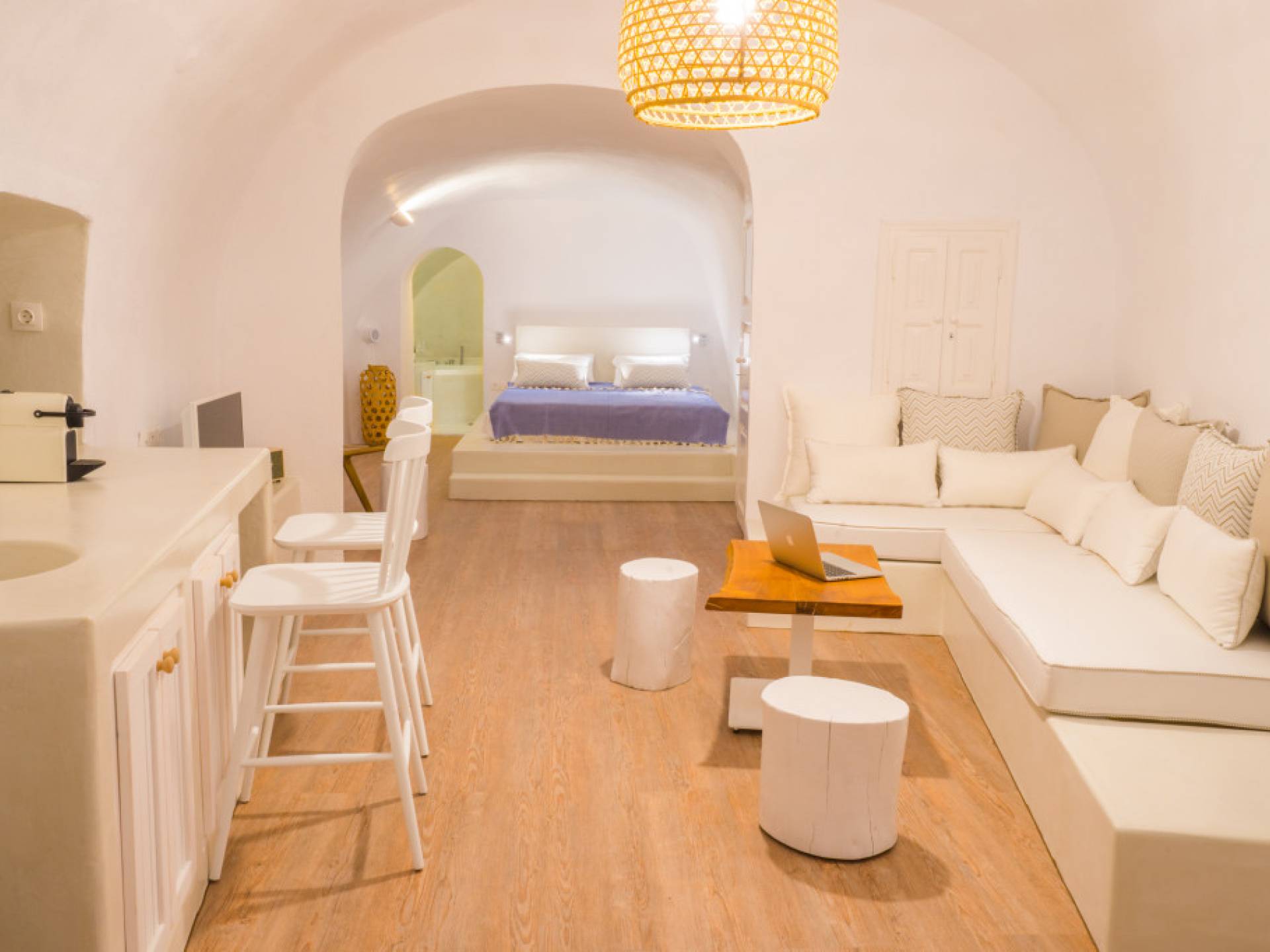Canvas Suites en la Caldera de Oia Santorini ofrece un alojamiento de lujo minimalista rodeado de las impresionantes vistas de la isla de fama mundial. Canvas Suites es un complejo de 7 Suites de lujo, construido según la arquitectura tradicional de las Cícladas, brindando comodidad, funcionalidad, discreción, respetando el medio ambiente. Colgadas en el famoso acantilado de la caldera de Oia, todas las suites están perfectamente orientadas al mar Egeo, con vistas al volcán de Santorini.