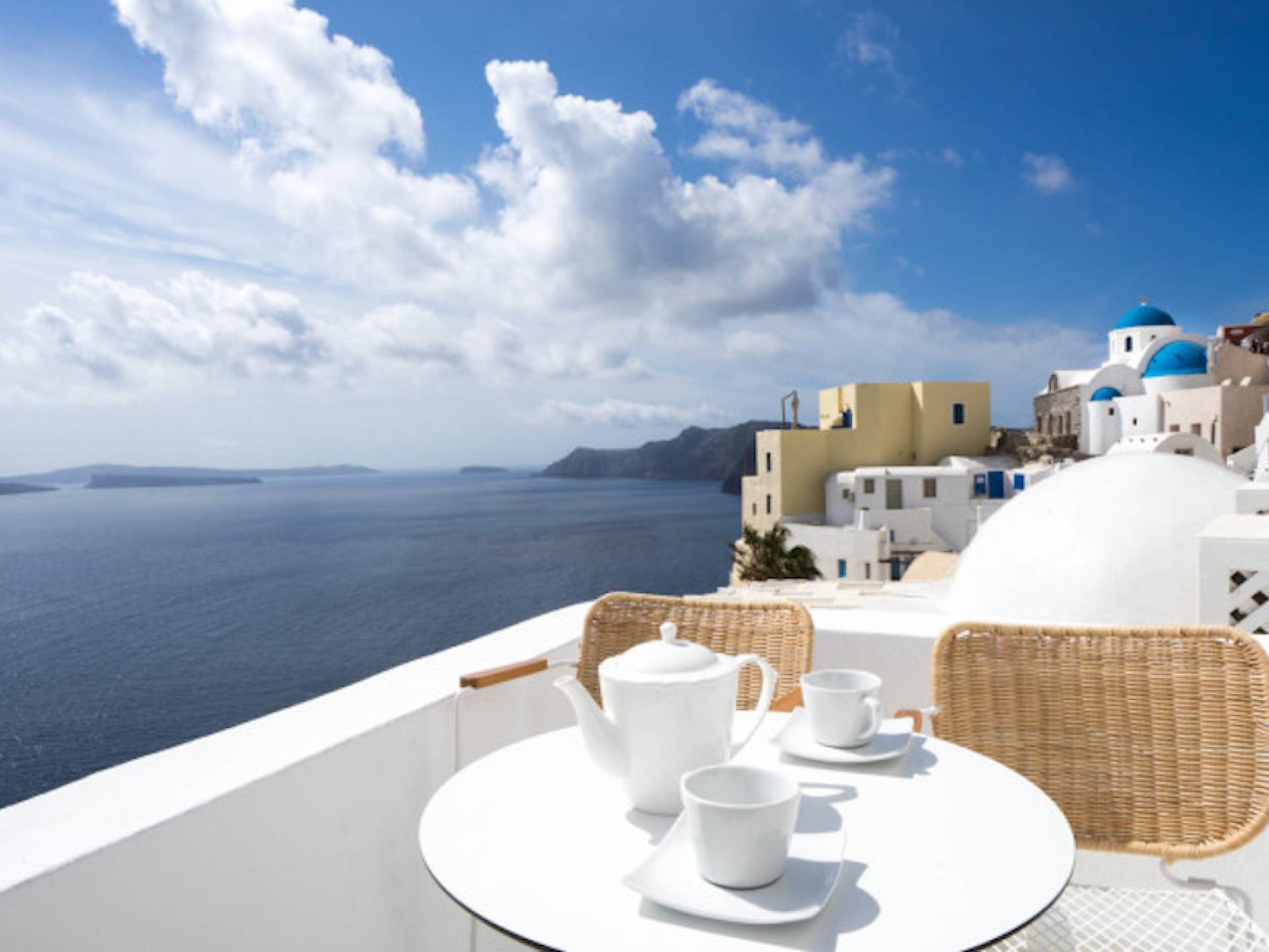 Oia es el pueblo más famoso de Santorini, a 11 km de Fira, en la parte norte de la isla. Reconocido mundialmente por su fascinante puesta de sol, merece el título del pueblo más hermoso de Santorini. Situado en la cima de un acantilado, se abre a una vista asombrosa sobre el volcán de Palia y Nea Kameni y la isla de Thirassia. Su carácter tradicional con casas encaladas, calles adoquinadas e iglesias con cúpulas azules crean un marco increíble…Oia es el pueblo más famoso de Santorini, a 11 km de Fira, en la parte norte de la isla. Reconocido mundialmente por su fascinante puesta de sol, merece el título del pueblo más hermoso de Santorini. Situado en la cima de un acantilado, se abre a una vista asombrosa sobre el volcán de Palia y Nea Kameni y la isla de Thirassia. Su carácter tradicional con casas encaladas, calles adoquinadas e iglesias con cúpulas azules crean un marco increíble…