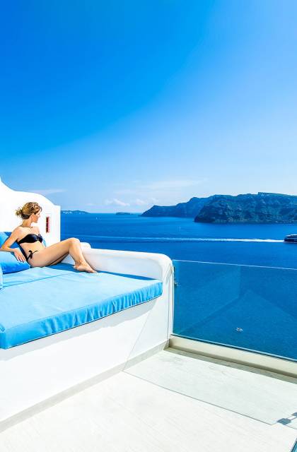 Oia es el pueblo más famoso de Santorini, a 11 km de Fira, en la parte norte de la isla. Reconocido mundialmente por su fascinante puesta de sol, merece el título del pueblo más hermoso de Santorini. Situado en la cima de un acantilado, se abre a una vista asombrosa sobre el volcán de Palia y Nea Kameni y la isla de Thirassia. Su carácter tradicional con casas encaladas, calles adoquinadas e iglesias con cúpulas azules crean un marco increíble. En Oia, encontrará una variedad de servicios, desde restaurantes hasta cafés y tiendas, siendo su zona más concurrida la principal calle peatonal. Hacer turismo en Oia incluye el Museo Marítimo, las ruinas de una fortaleza veneciana y galerías de arte. Desde el pequeño puerto de Oia, Ammoudi, hay pequeñas embarcaciones que te llevan a la isla de Thirassia.