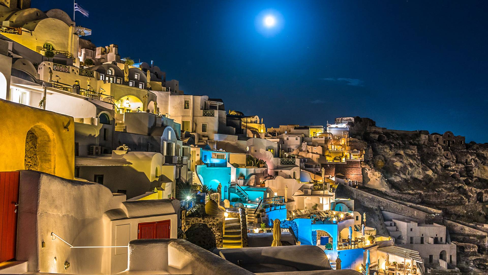 Oia es el pueblo más famoso de Santorini, a 11 km de Fira, en la parte norte de la isla. Reconocido mundialmente por su fascinante puesta de sol, merece el título del pueblo más hermoso de Santorini. Situado en la cima de un acantilado, se abre a una vista asombrosa sobre el volcán de Palia y Nea Kameni y la isla de Thirassia. Su carácter tradicional con casas encaladas, calles adoquinadas e iglesias con cúpulas azules crean un marco increíble…Oia es el pueblo más famoso de Santorini, a 11 km de Fira, en la parte norte de la isla. Reconocido mundialmente por su fascinante puesta de sol, merece el título del pueblo más hermoso de Santorini. Situado en la cima de un acantilado, se abre a una vista asombrosa sobre el volcán de Palia y Nea Kameni y la isla de Thirassia. Su carácter tradicional con casas encaladas, calles adoquinadas e iglesias con cúpulas azules crean un marco increíble…