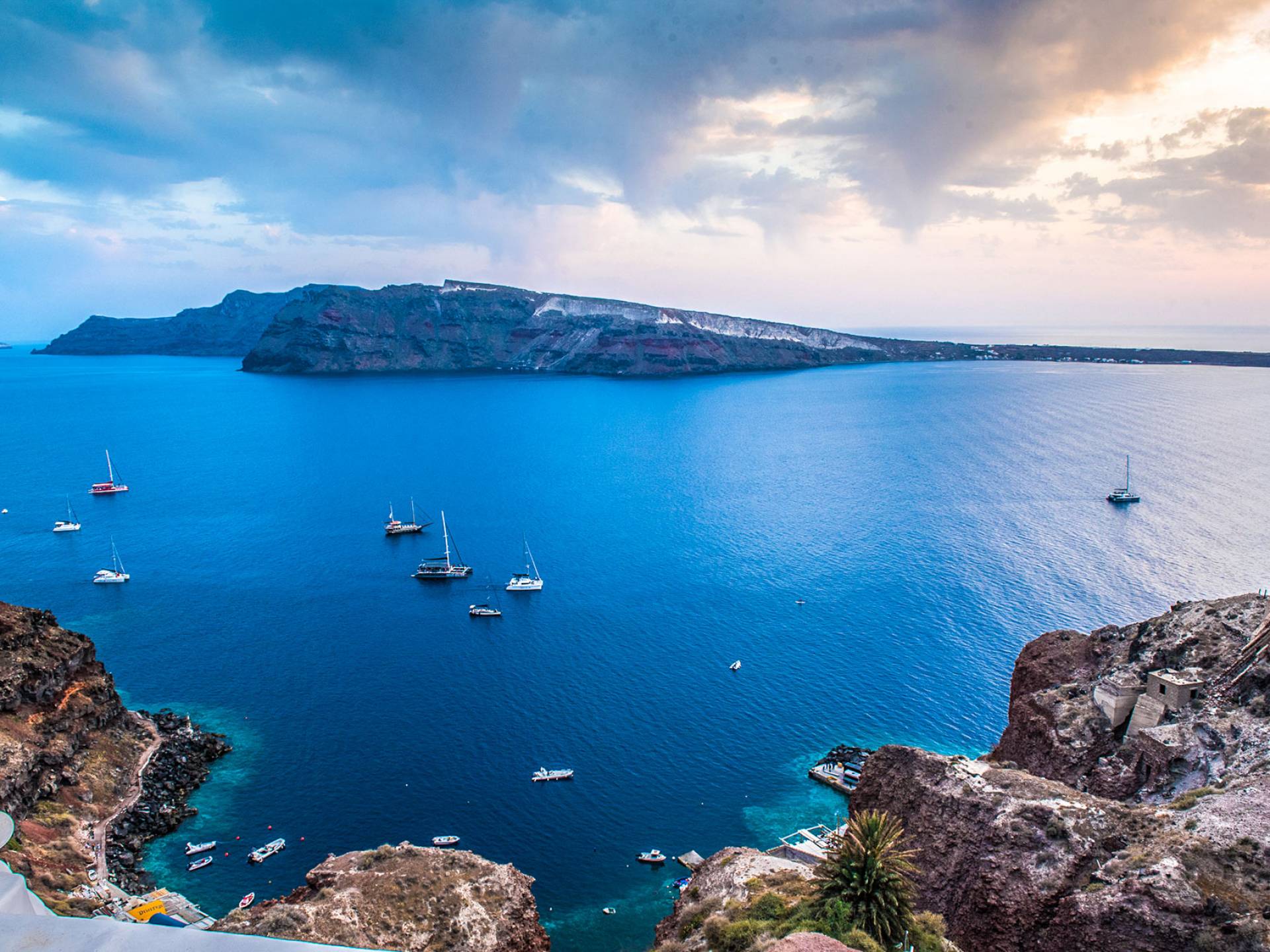 La belleza eterna de la isla de Santorini atrae a miles de visitantes cada año y se encuentra entre los principales destinos turísticos del mundo. Su paisaje volcánico salvaje, los acantilados escarpados, la naturaleza salvaje y las hermosas playas combinadas con su rica historia y tradiciones hacen de Santorini la joya de la corona de Grecia. La forma inicial de Santorini durante la antigüedad fue redonda. Obtuvo su forma actual en aproximadamente 1.650 aC debido a una severa erupción volcánica que desapareció en la mitad de la isla. Hoy, la mitad de la caldera de Santorini está sumergida, lo que la convierte en la única caldera hundida en el mundo.