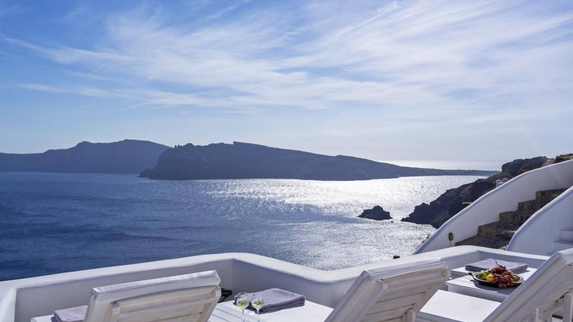 The White Pearl Villas despierta seductoramente todos los sentidos con sus impresionantes vistas al volcán, toques personalizados, estética sofisticada y comodidad insuperable. Disfrute de su mística y disfrute de las vacaciones de su vida. Las Villas están seductoramente ubicadas en los acantilados de Oia Santorini, donde la impresionante puesta de sol deslumbra al espectador con su irreal y ardiente mezcla de tonos rojos, azules, amarillos y naranjas y la infinidad del agua azul que se extiende hasta el horizonte. .