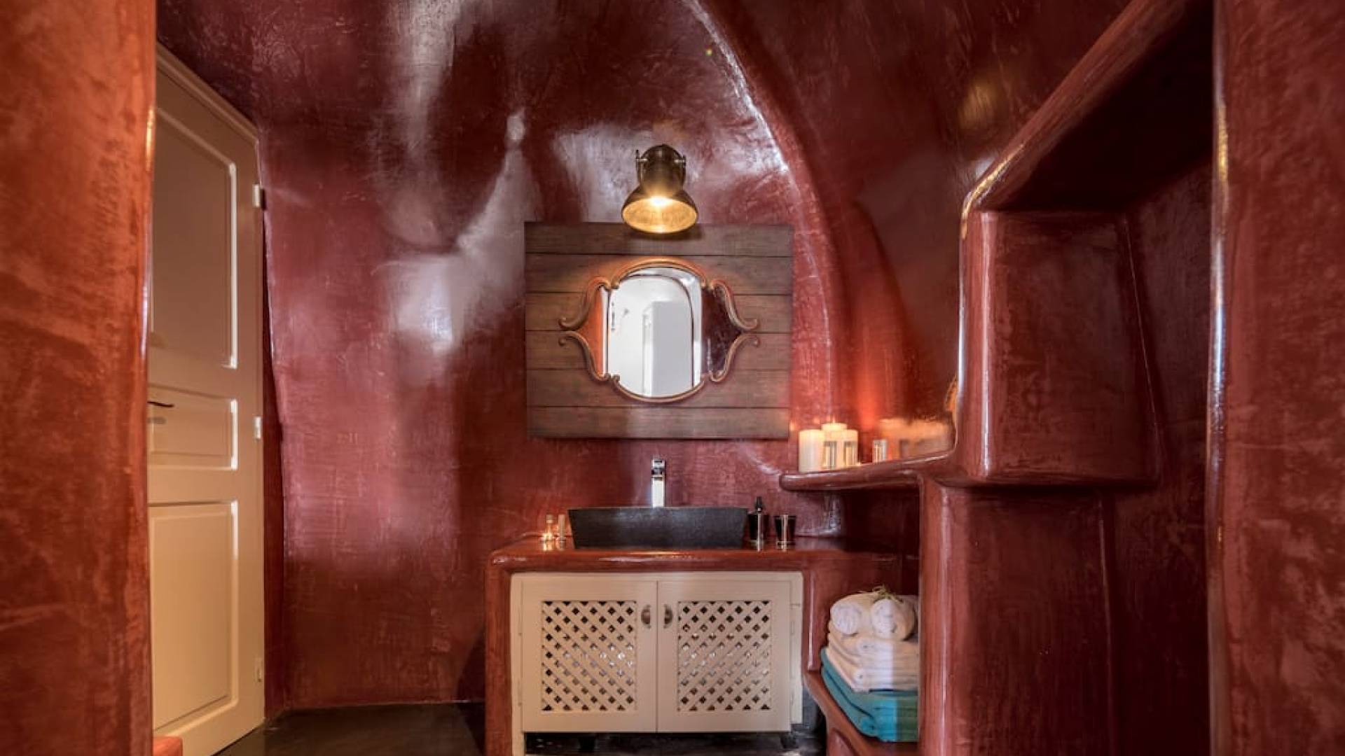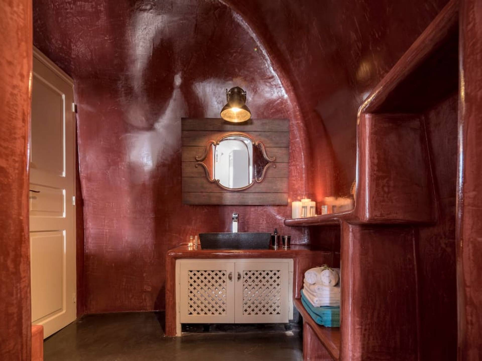 Cada villa de planta abierta cuenta con una cama queen size, aire acondicionado autónomo, una pequeña cocina completamente equipada, con mini-nevera, estufa, hervidor y cafetera espresso, una mesa con sillas, TV de pantalla plana vía satélite, CD y DVD reproductor, acceso gratuito a Wi-Fi y un hermoso baño en color rubí intenso, completo con jacuzzi interior, artículos de tocador de cortesía, pantuflas, baño y toallas de playa. Villas Mystic Luxury también tiene acceso a la zona de la piscina compartida.