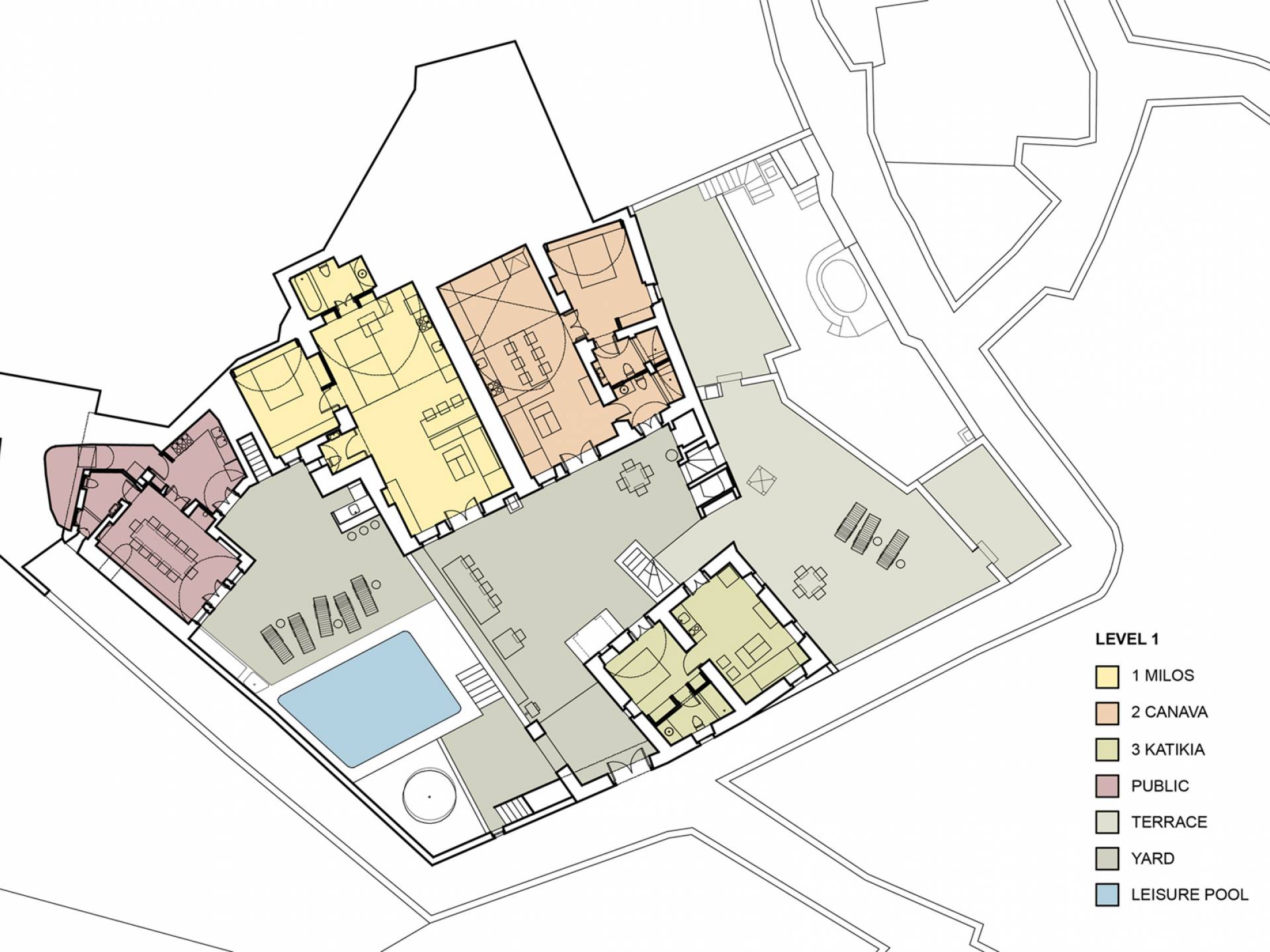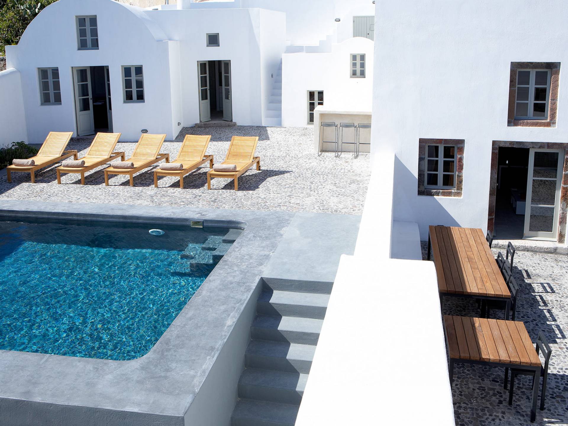 Tienes que quedarte aquí, vivir en él y respirarlo, para apreciar plenamente el esplendor de los techos altos y la luz natural de Fabrica. La villa cuenta con un generoso espacio al aire libre: con dos impresionantes terrazas con piscina y varios arreglos adicionales al aire libre, tendrá muchas opciones para encontrar el lugar perfecto para disfrutar del sol griego. Se ha prestado atención y cuidado a esta casa para asegurarnos de que todo sea elegante y lujoso sin ser exigente. Ofrece una comodidad inmejorable y una elegancia natural para lo que es verdaderamente una villa de lujo única en su tipo. Debido a su distribución, Fabrica se puede dividir en dos villas privadas y totalmente separadas, o contratarse como un todo, un retiro verdaderamente espectacular para una boda inolvidable o una gran reunión familiar. También organizamos retiros de spa de una semana y escuelas de cocina fuera de temporada.