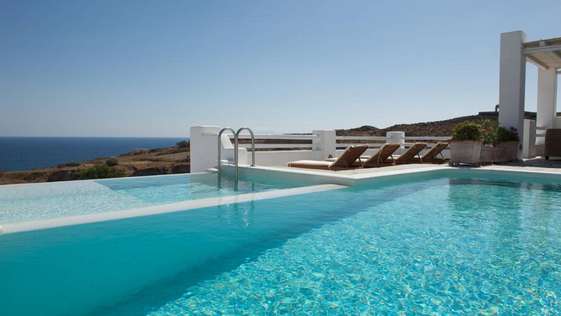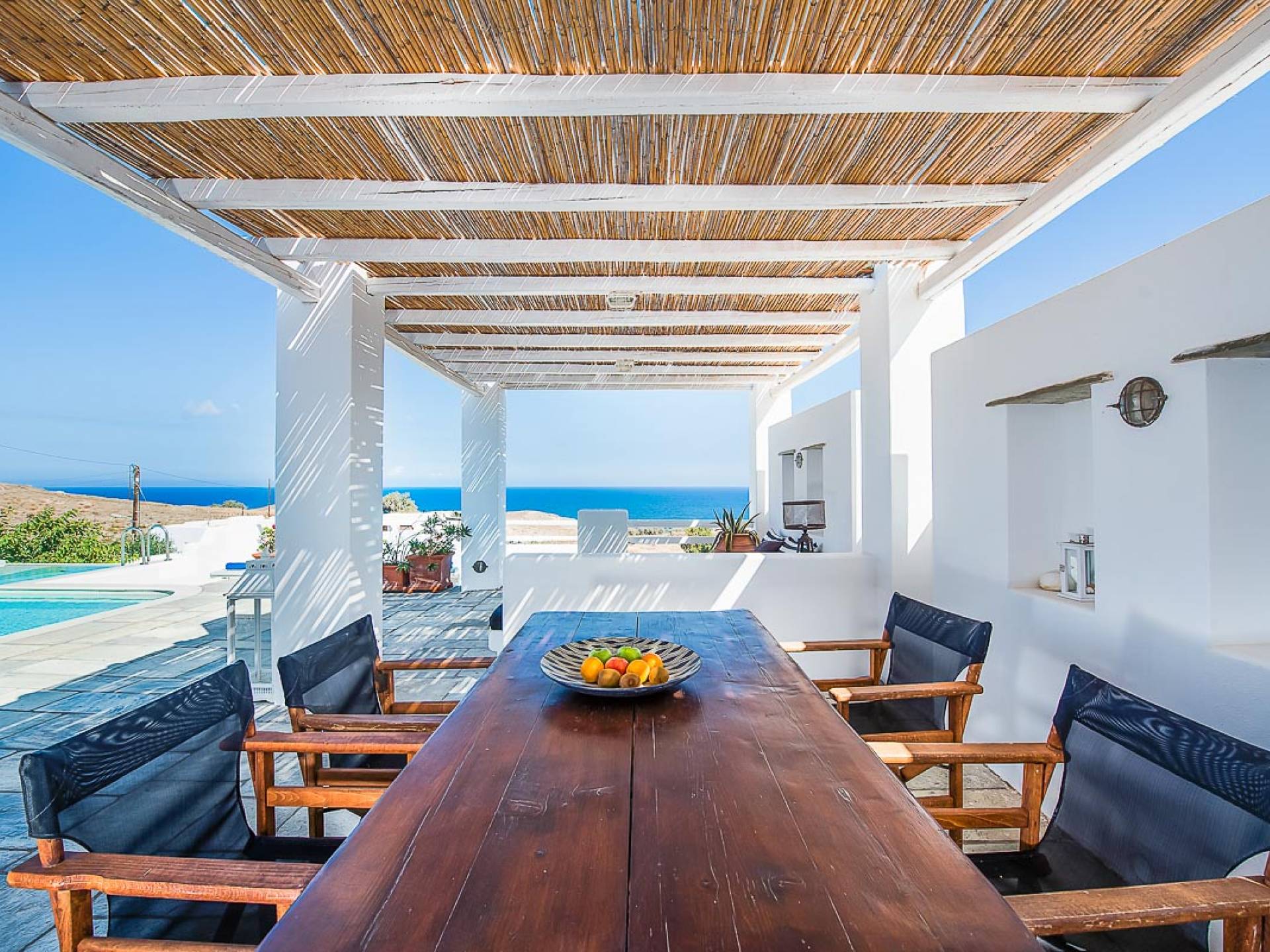 Hay muchos aspectos impresionantes de Tramountana Villa Santorini. La arquitectura es impresionante, las vistas al mar Egeo son magníficas, el área exterior es espaciosa y diversa, y el acabado interior de la casa es del más alto nivel.