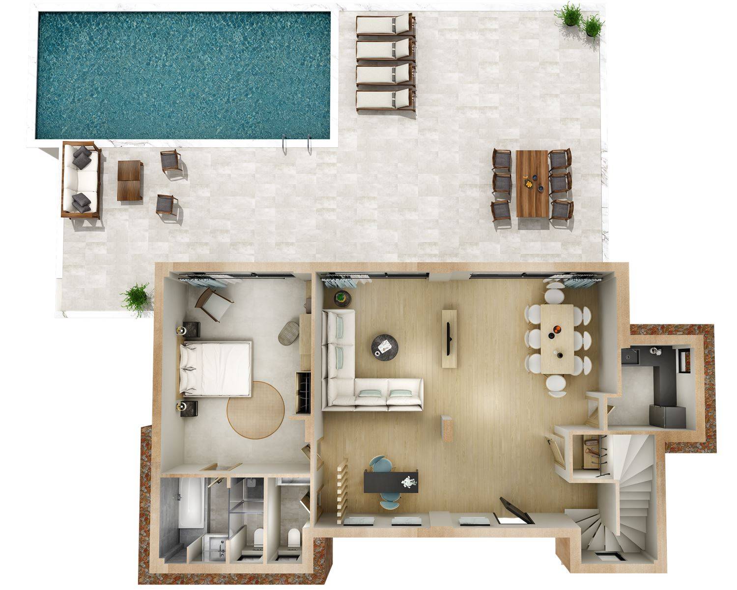 Una villa-suite de ensueño de 200 m2, con piscina de 36 m2, terraza de 100 m2 en planta baja y porche de 32 m2 en 1ª planta. Cuenta con 4 habitaciones, sala de estar, cocina y comedor para 8 personas, mira al mar que se extiende frente a la playa Big Banana y está cómodamente ubicado en el paisaje verde. Un lugar perfecto para vivir. Con capacidad para 8 adultos y 2 niños.