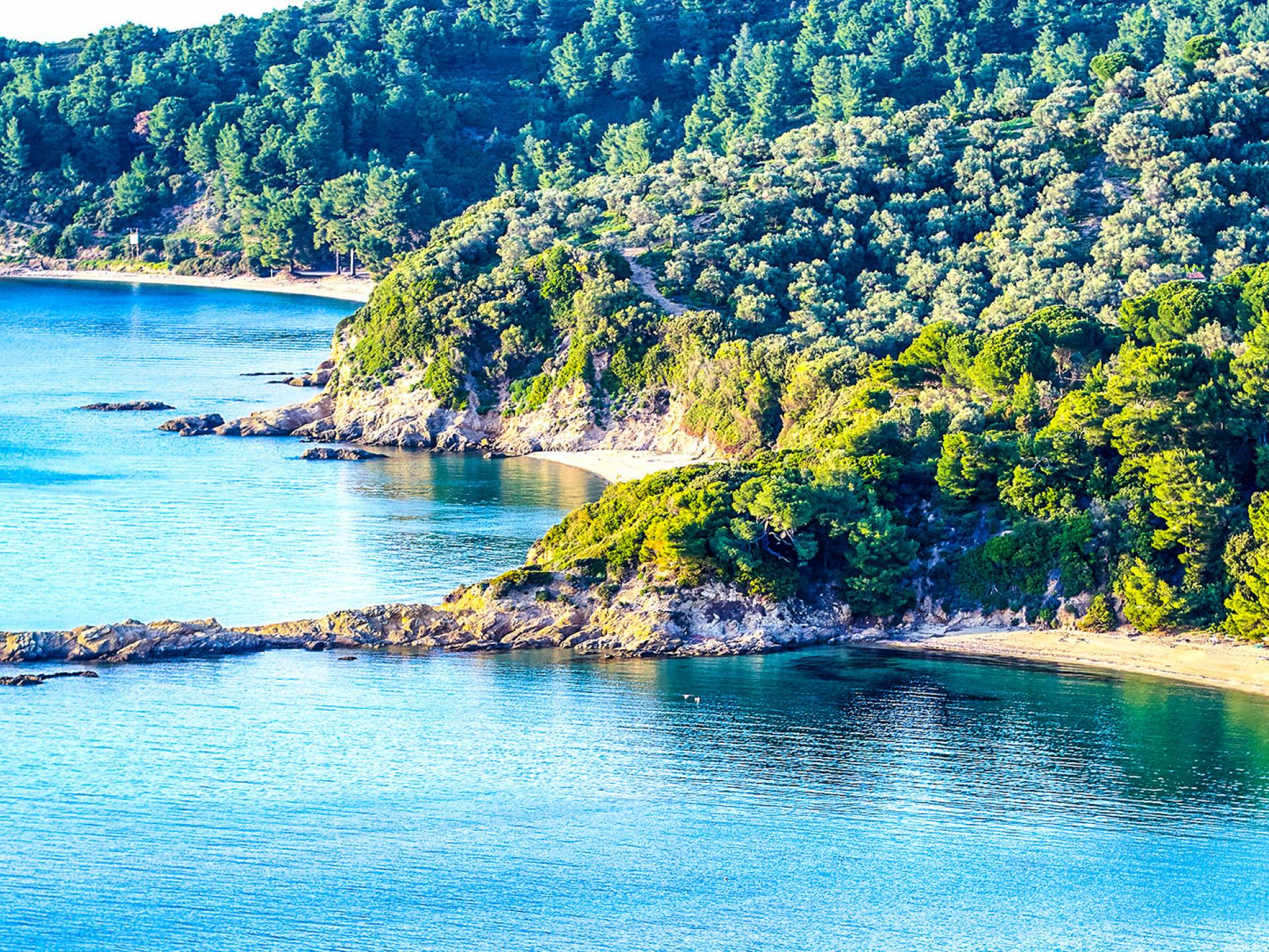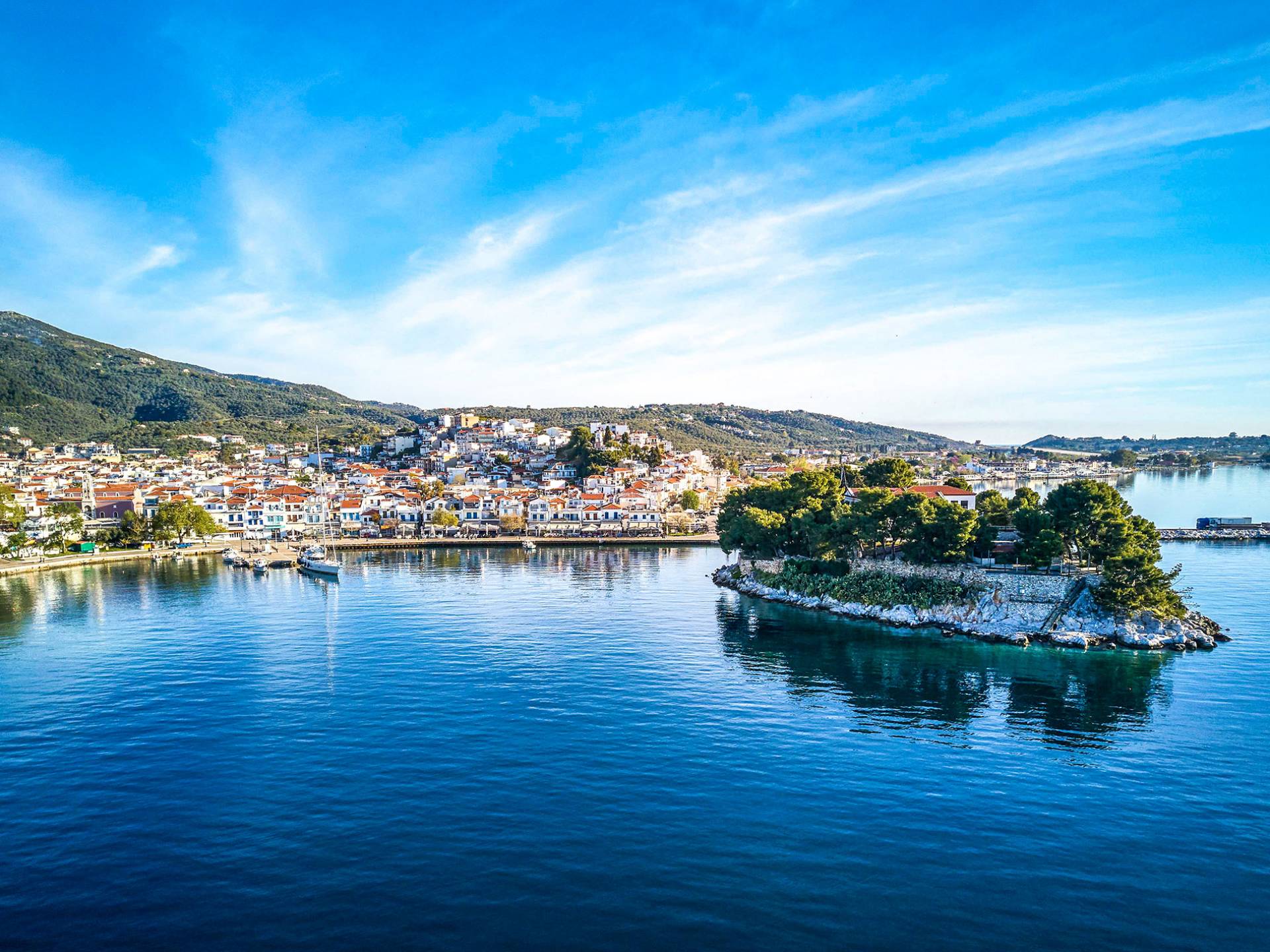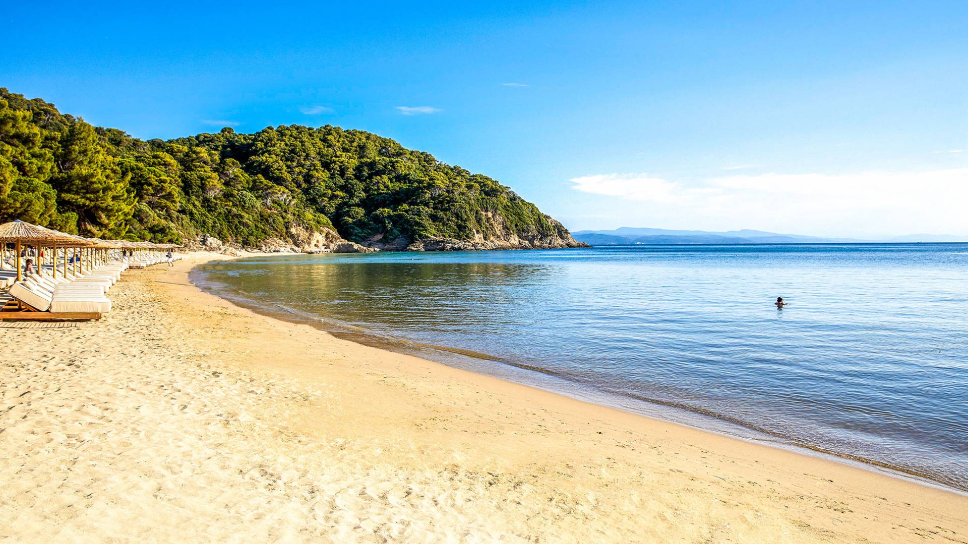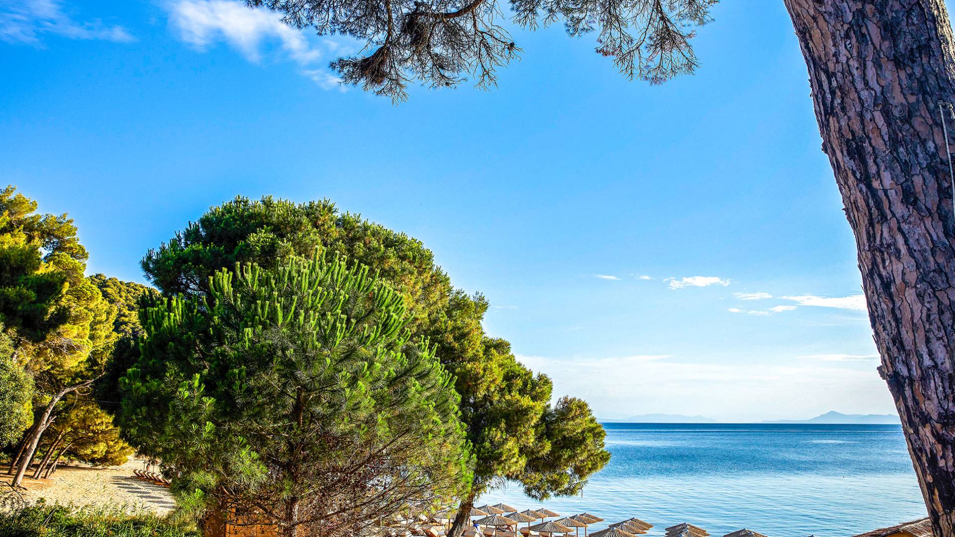 En la parte suroeste de Skiathos, el hotel ELIVI Skiathos se alza sobre una colina cubierta de pinos y un frondoso olivar. situado en la península de Pounta con vistas a las cuatro playas más hermosas de Skiathos, Koukounaries, Ambelakia, Banana y Little Banana Beach, cubre un espacio continuo de 213 acres.