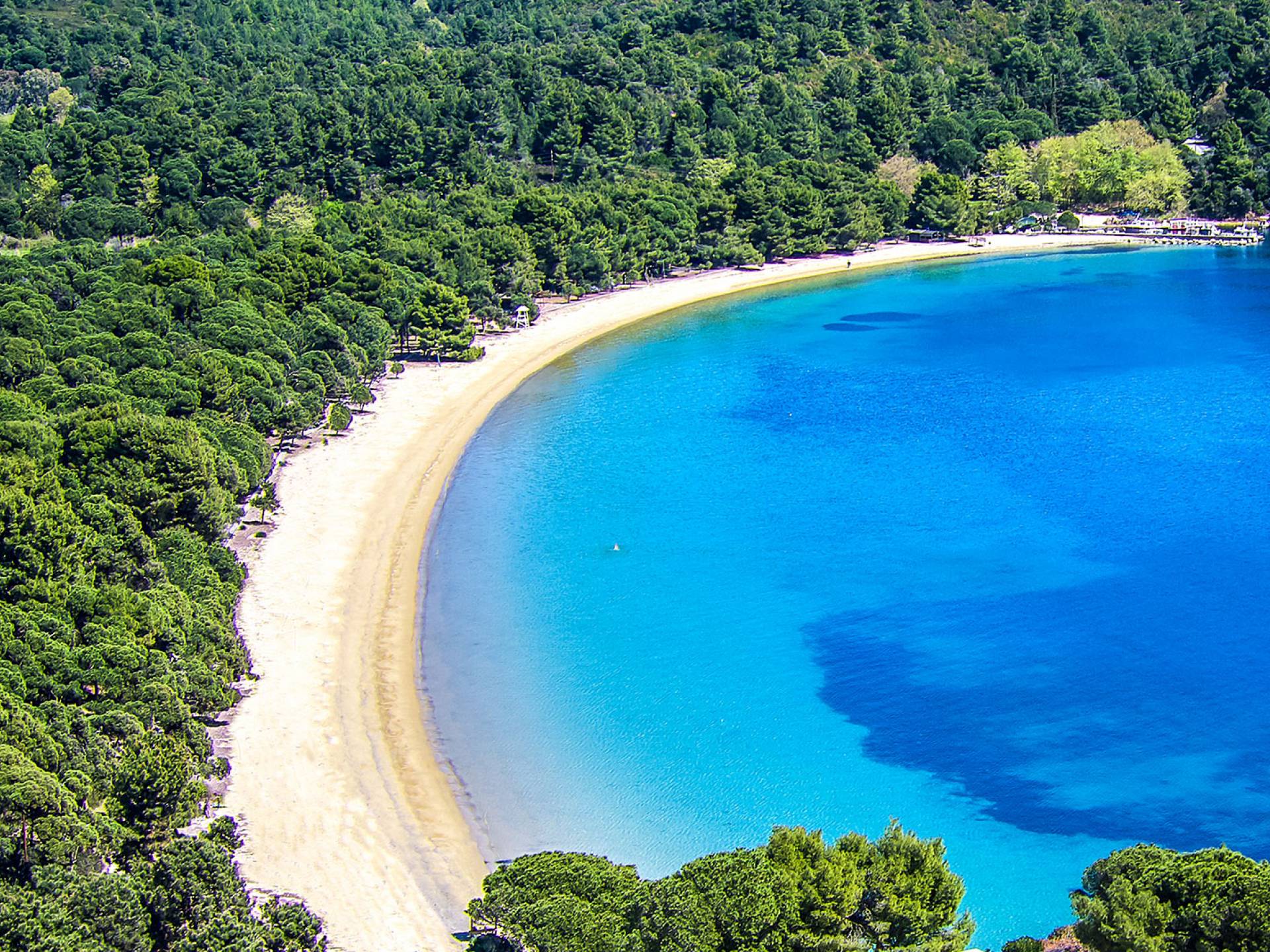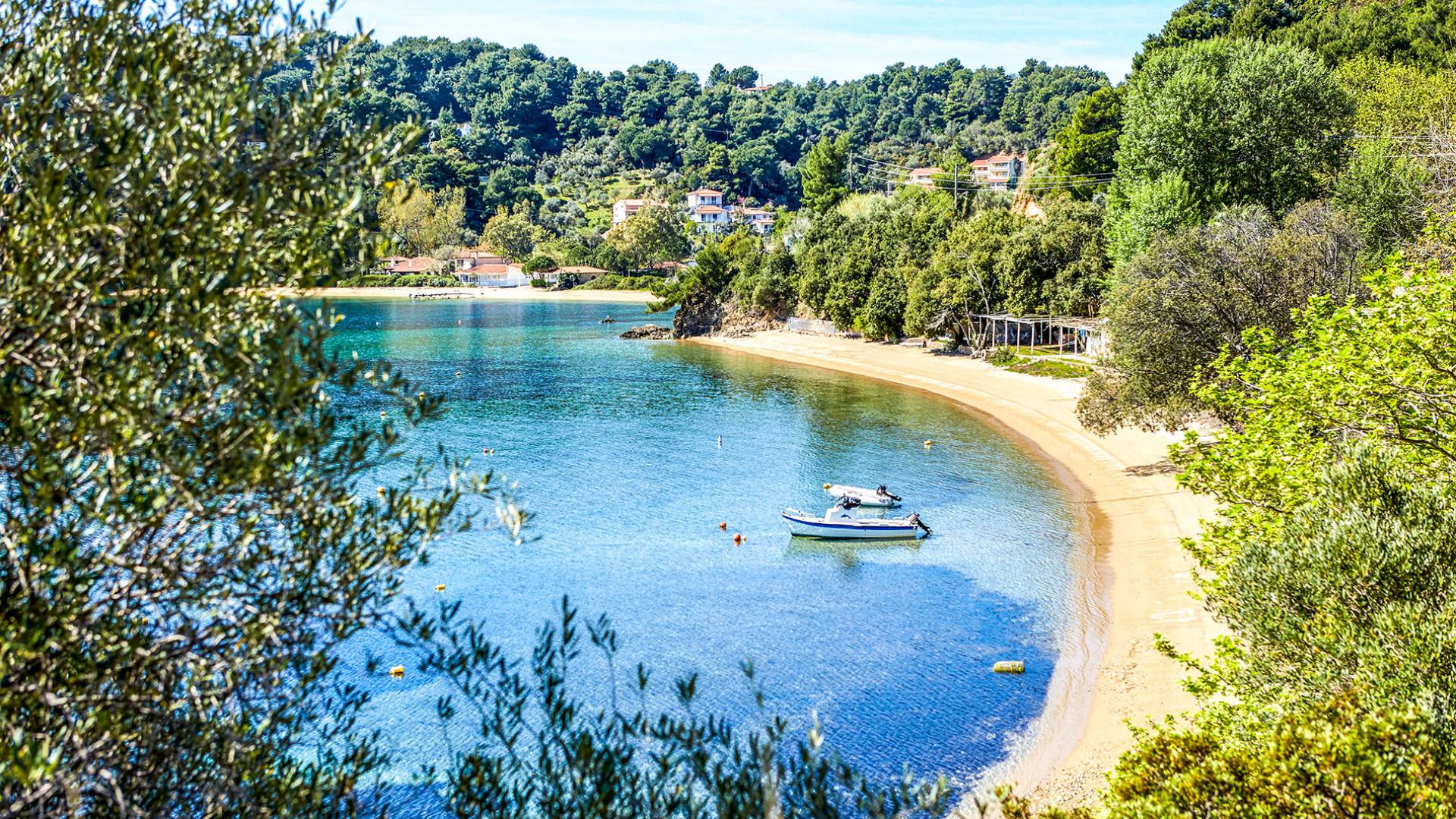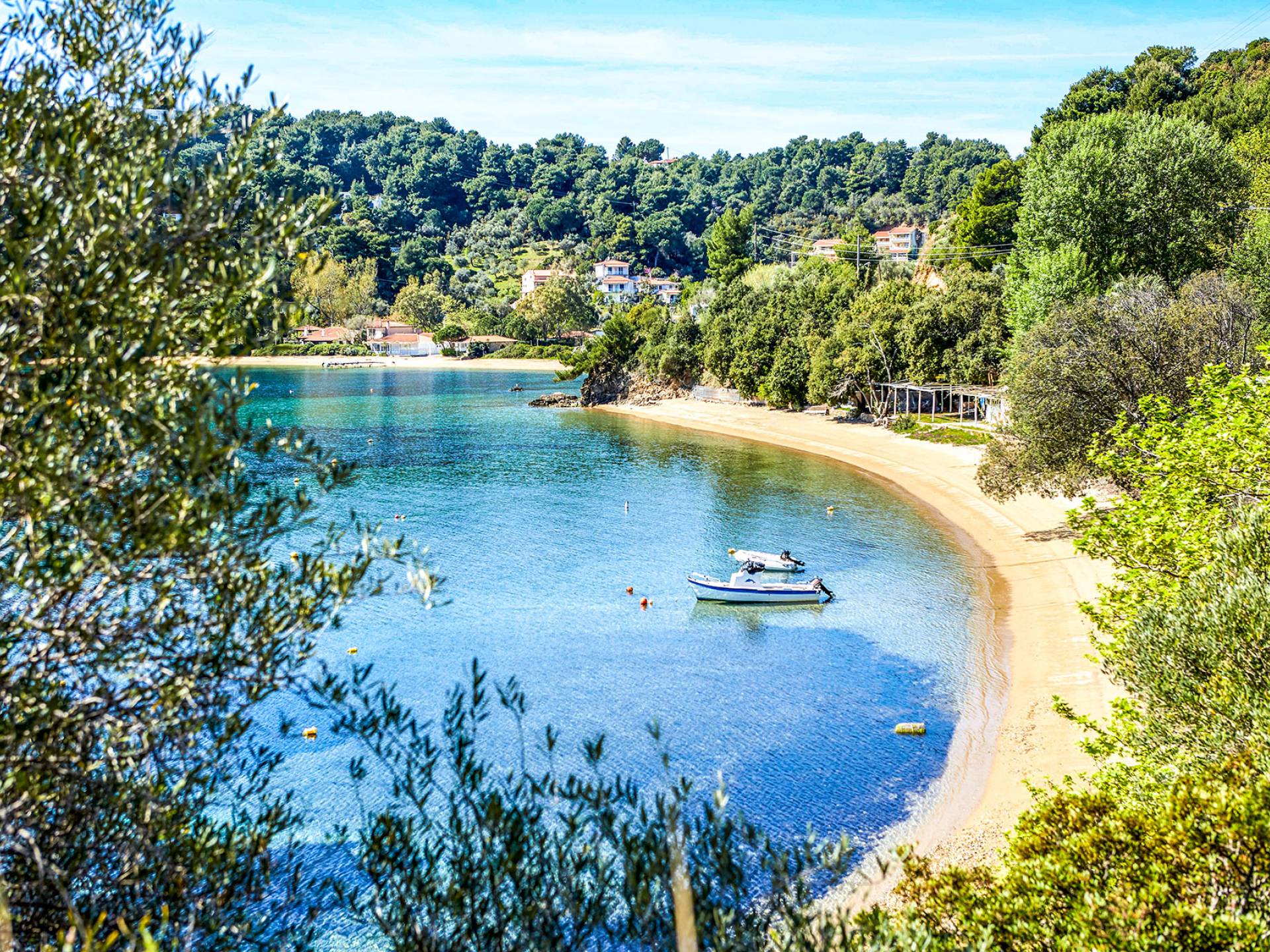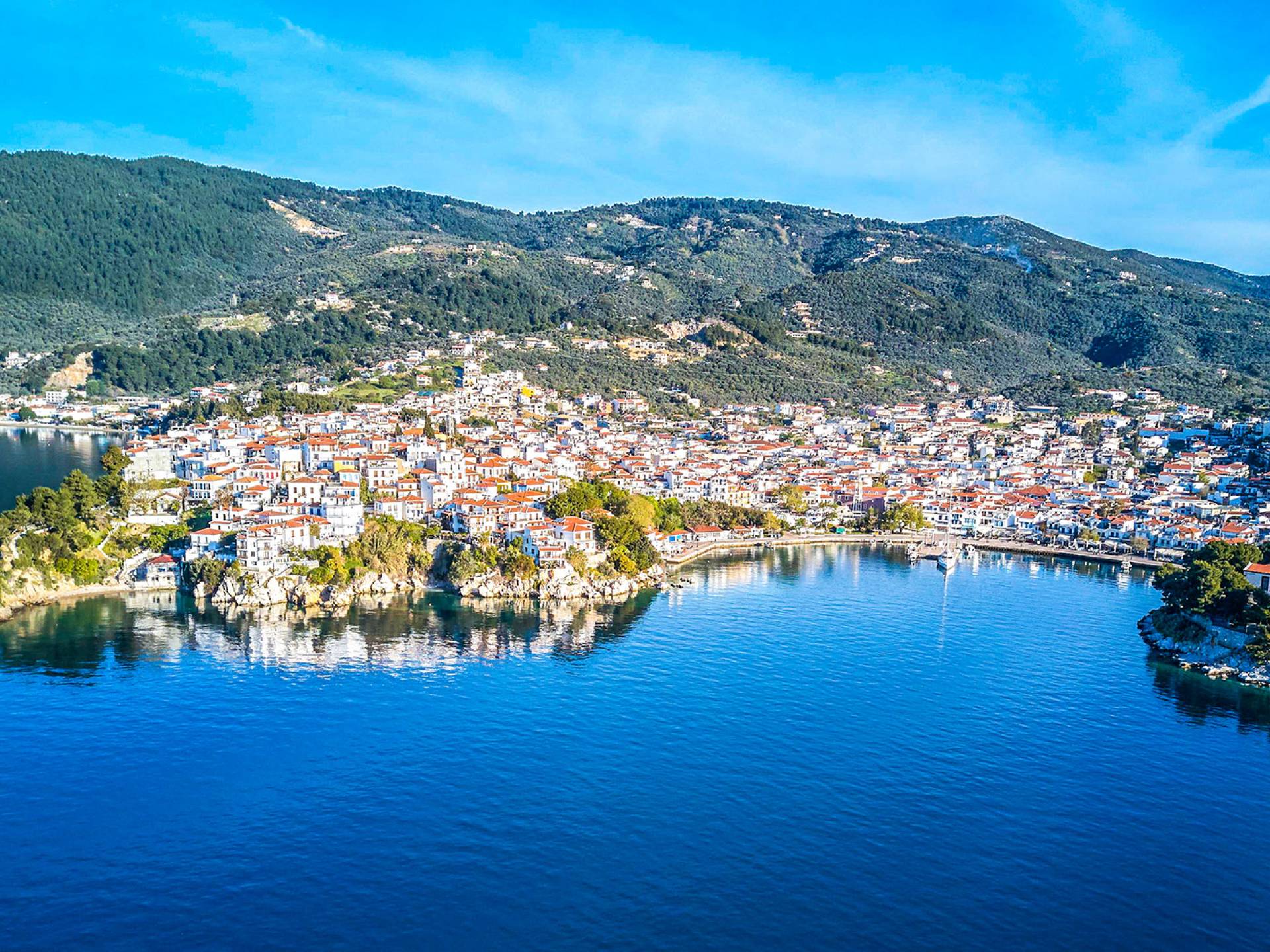 En la parte suroeste de Skiathos, el hotel ELIVI Skiathos se alza sobre una colina cubierta de pinos y un frondoso olivar. situado en la península de Pounta con vistas a las cuatro playas más hermosas de Skiathos, Koukounaries, Ambelakia, Banana y Little Banana Beach, cubre un espacio continuo de 213 acres.
