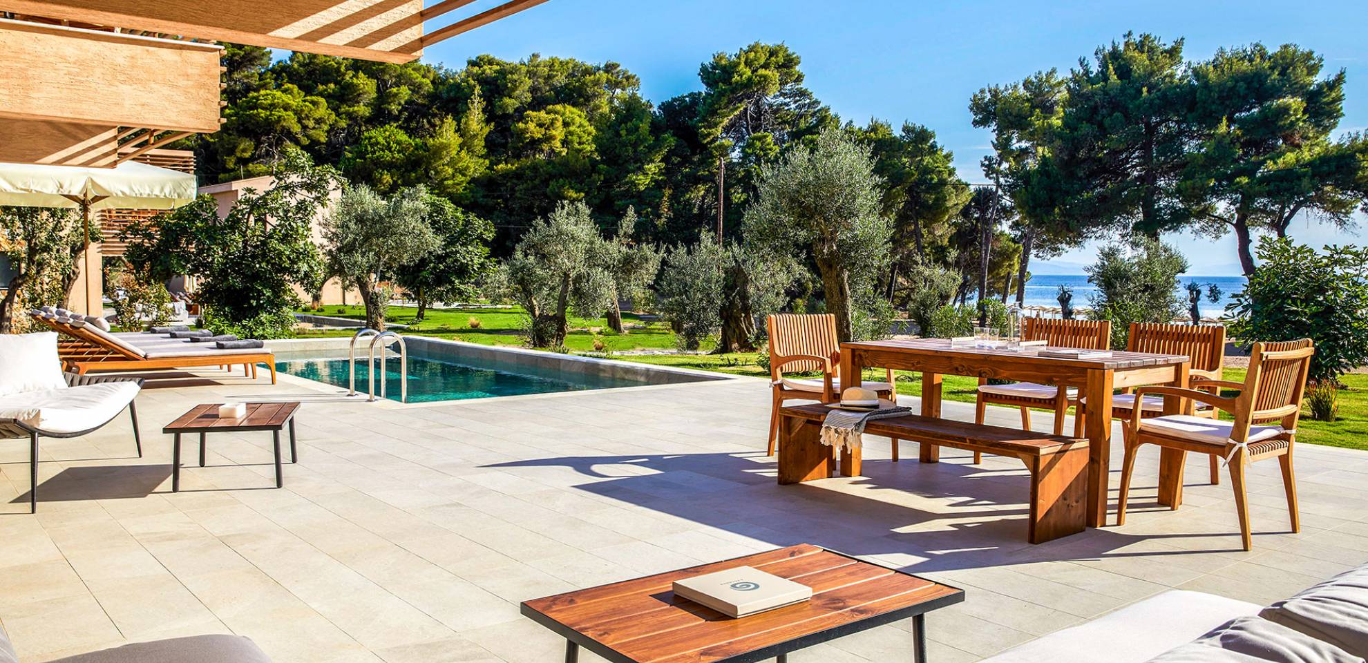 El ELIVI Skiathos Hotel redefine el servicio personalizado de lujo de cinco estrellas y la convivencia de la grandeza con la sencillez, todo en un magnífico entorno natural junto al mar. ofrece una experiencia estéticamente agradable al fusionar las huellas del pasado con la elegancia moderna.