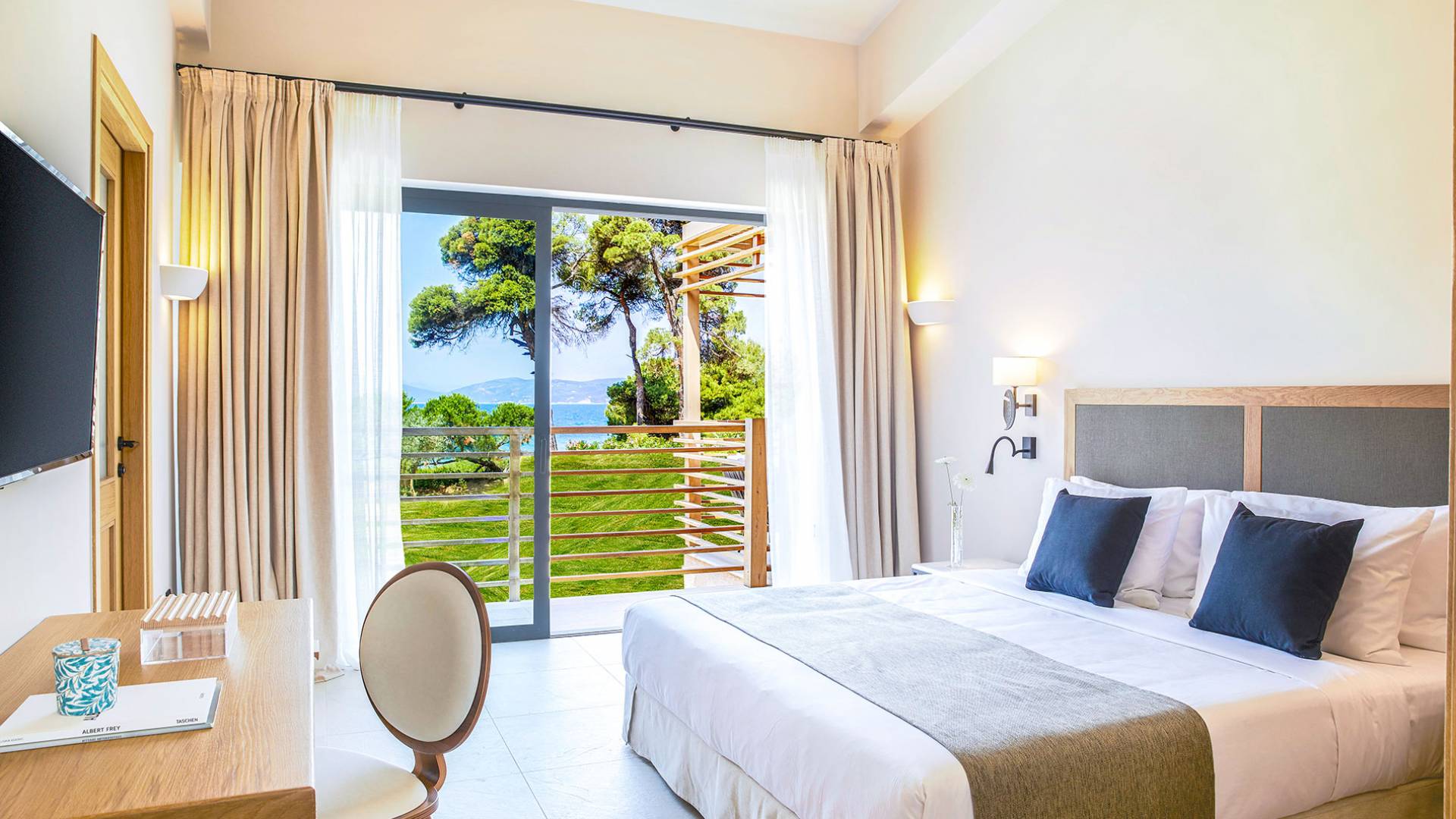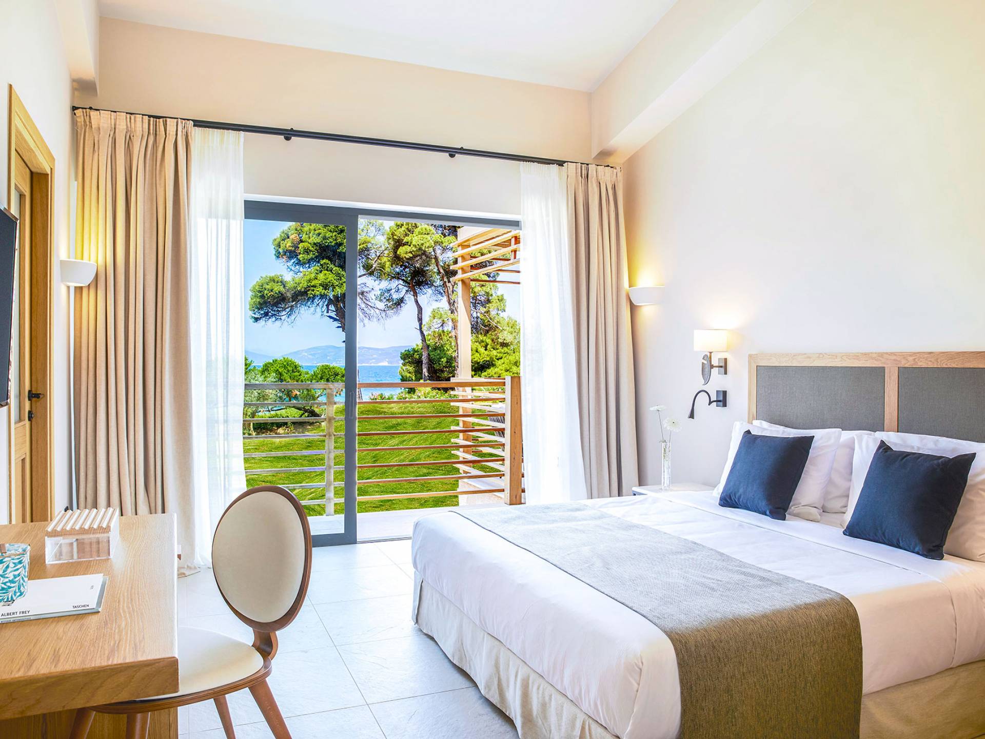 El ELIVI Skiathos consta de tres áreas residenciales independientes y tres tipos de alojamiento: el hotel Xenia, las habitaciones y suites Grace y las habitaciones, villas y suites Nest.