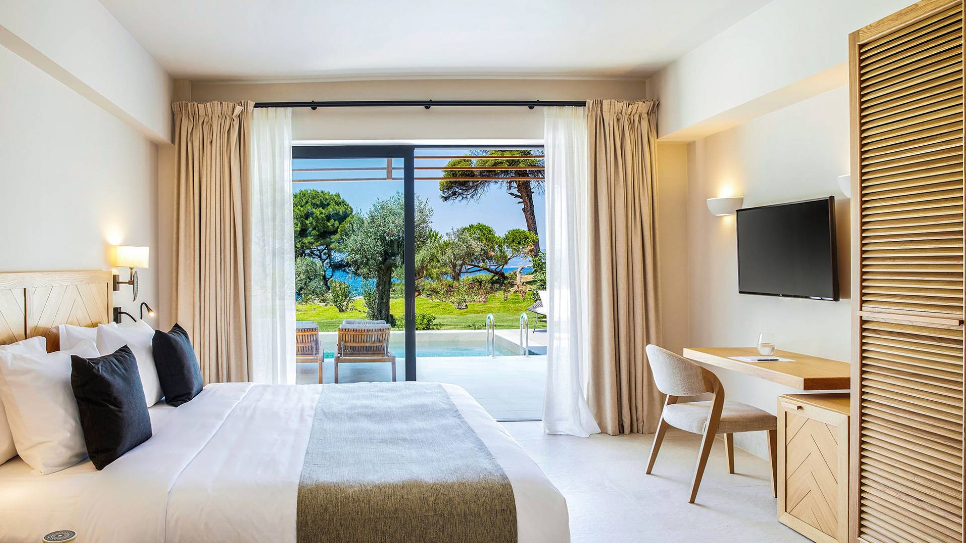 Diseñado y fabricado con la vista puesta en la perfección, integrado en un entorno natural tranquilo de belleza inigualable, el ELIVI Skiathos es sinónimo de autenticidad, hospitalidad y generosidad. Estos son los valores que quiere transmitir a sus huéspedes ofreciéndoles calidez, comodidad, lujo estético y servicios con un cuidado refinado: habitaciones y suites ultralujosas y espaciosas con piscinas y patios privados, rodeadas de bosques de olivos y pinos, ricas vegetación, a sólo unos pasos de la orilla.