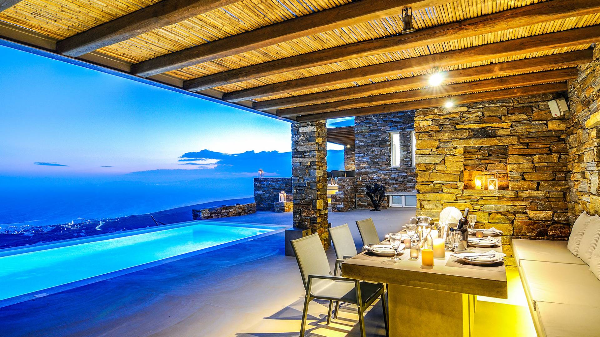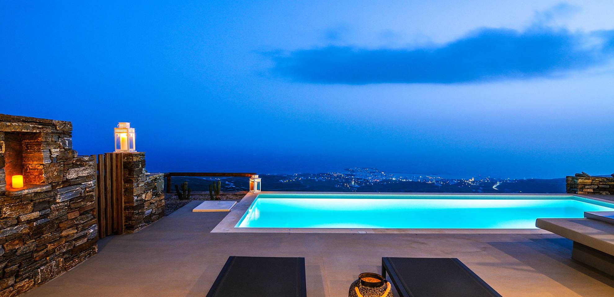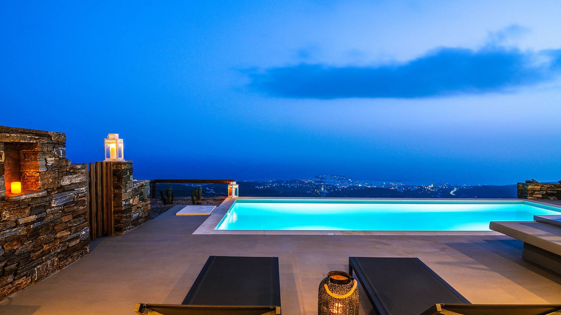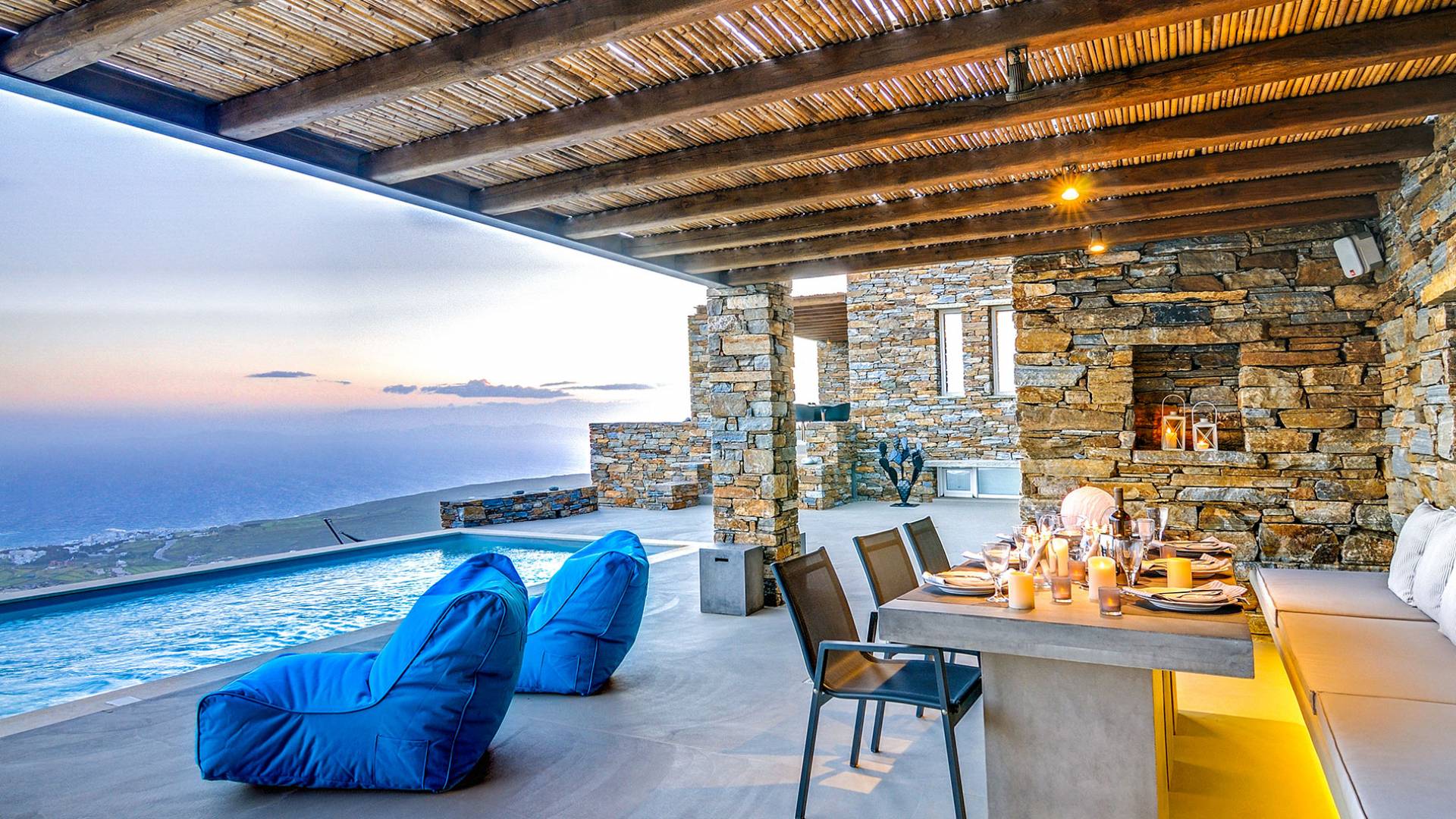 Amolia Luxury Houses Tinos son 2 alquileres de villas de lujo con 8 dormitorios y 2 piscinas privadas. Los edificios están en total armonía con el carácter único de Tinos, una isla amada por los artistas gracias a su belleza virgen, salvaje y rica tradición. Completamente construida en piedra (con piedra local por artesanos tradicionales) en un estilo minimalista contemporáneo, cada villa está diseñada con respeto al entorno natural arquetípico de las Cícladas, con colinas desnudas y vistas ilimitadas a la grandeza del Mar Egeo y 11 islas.