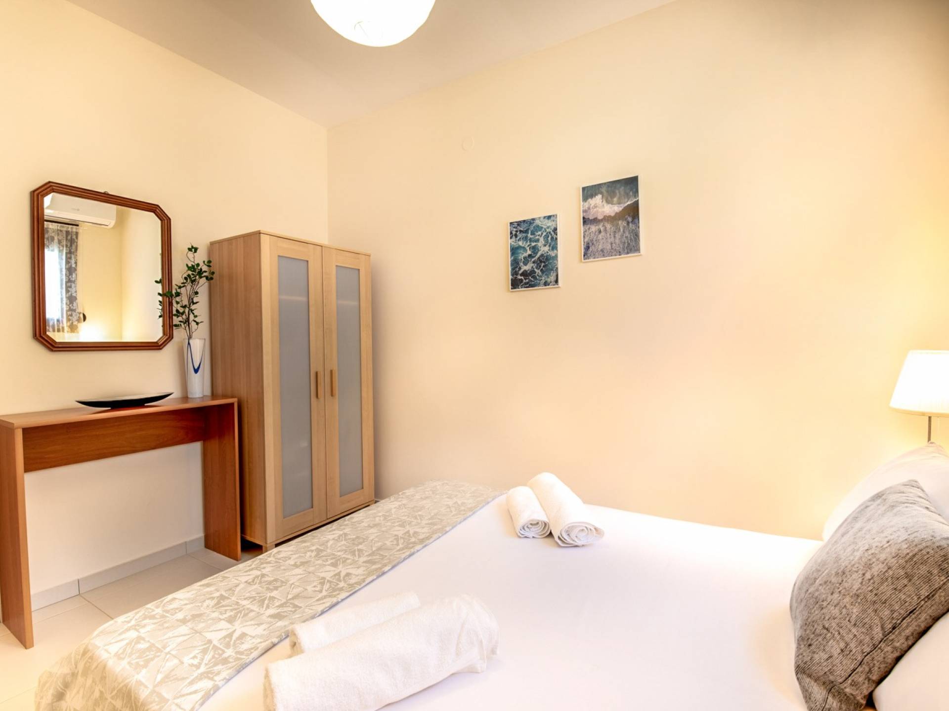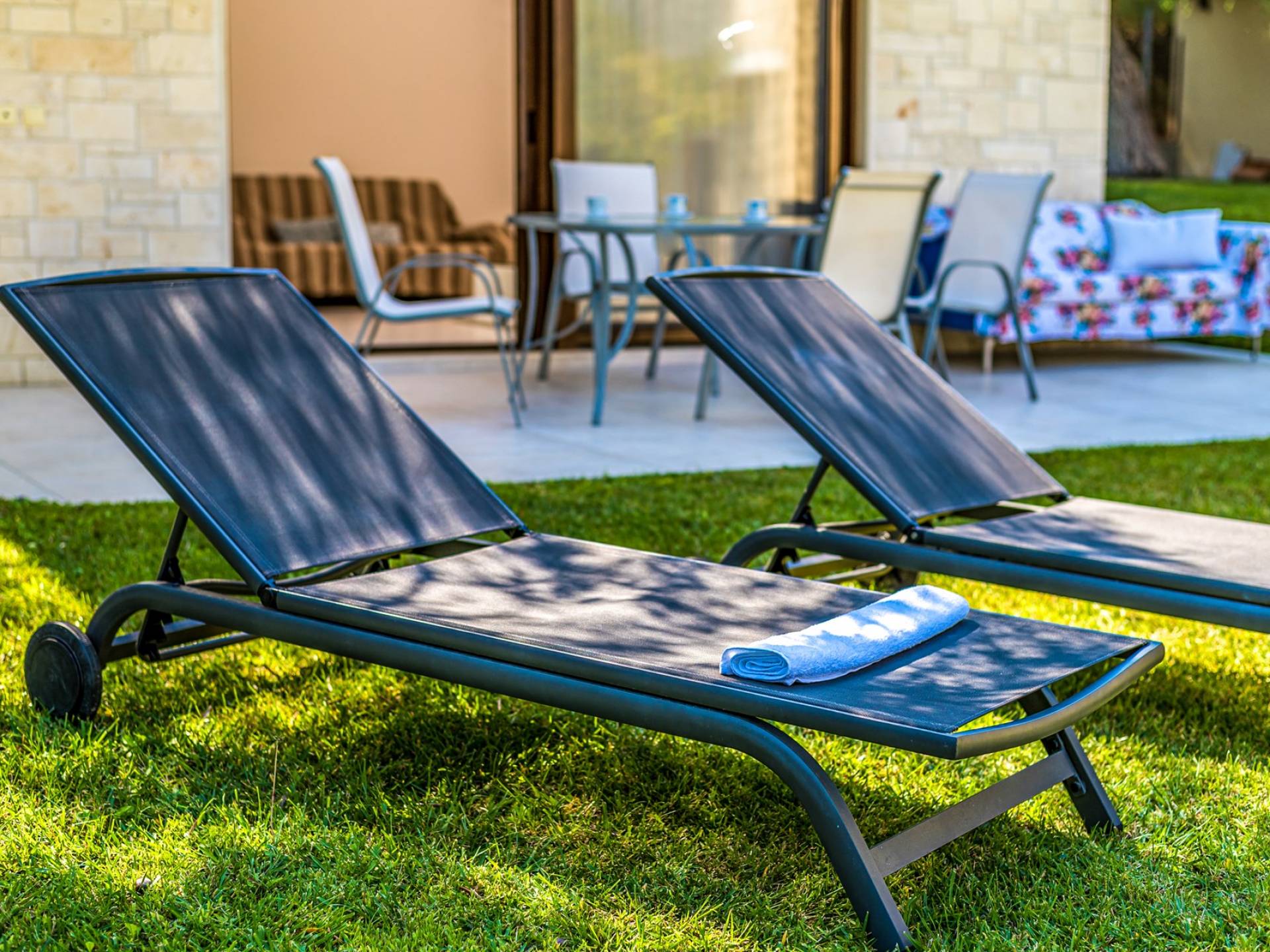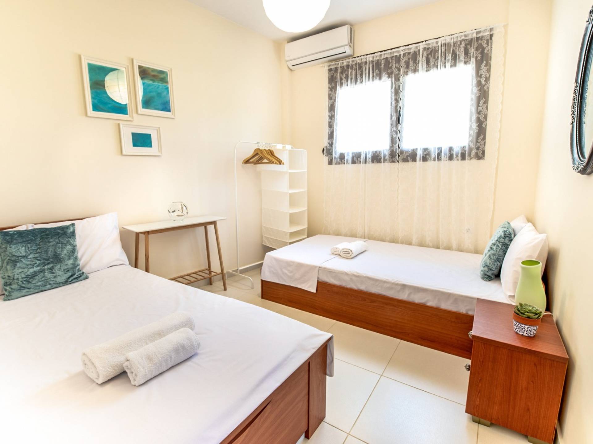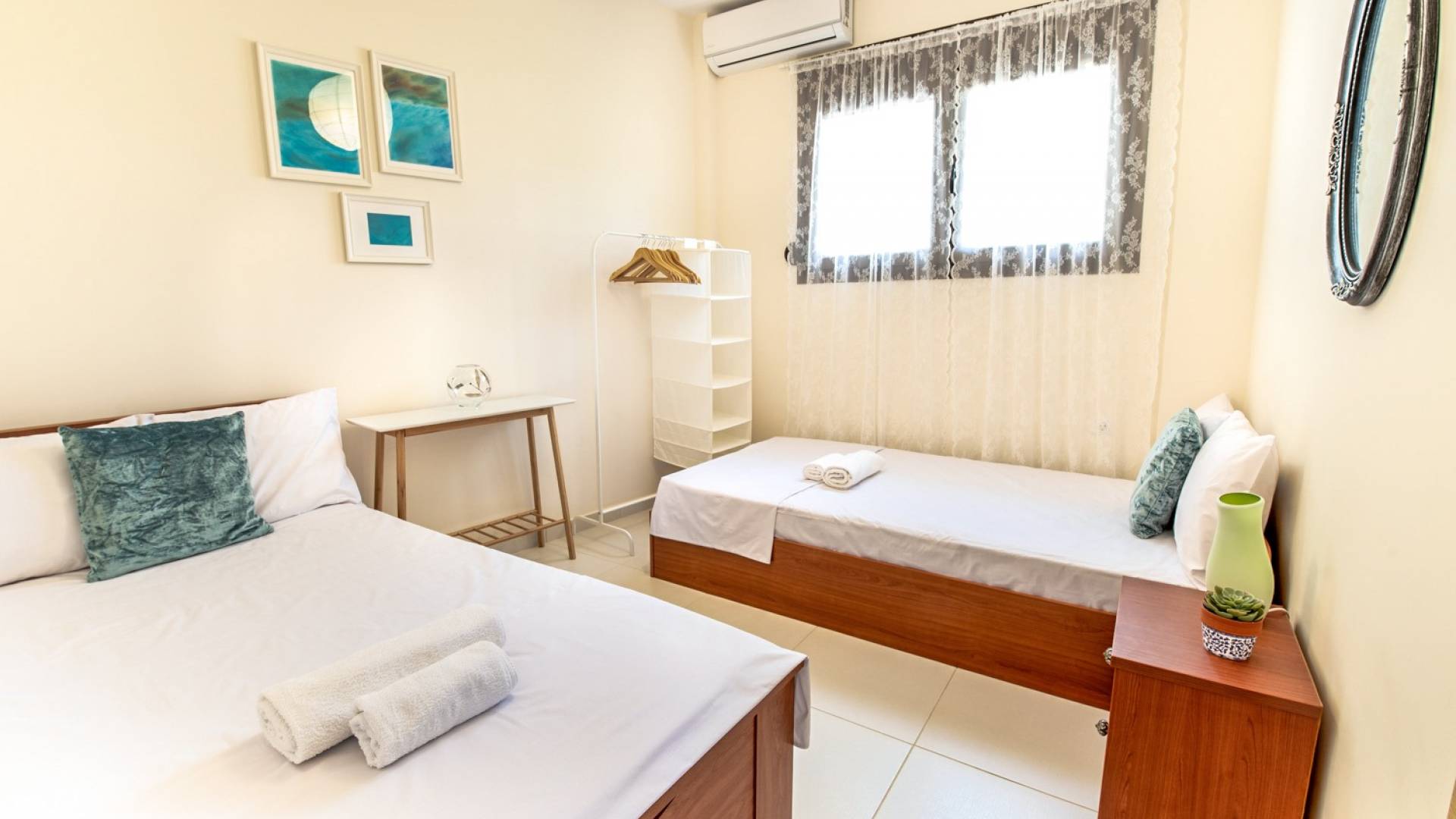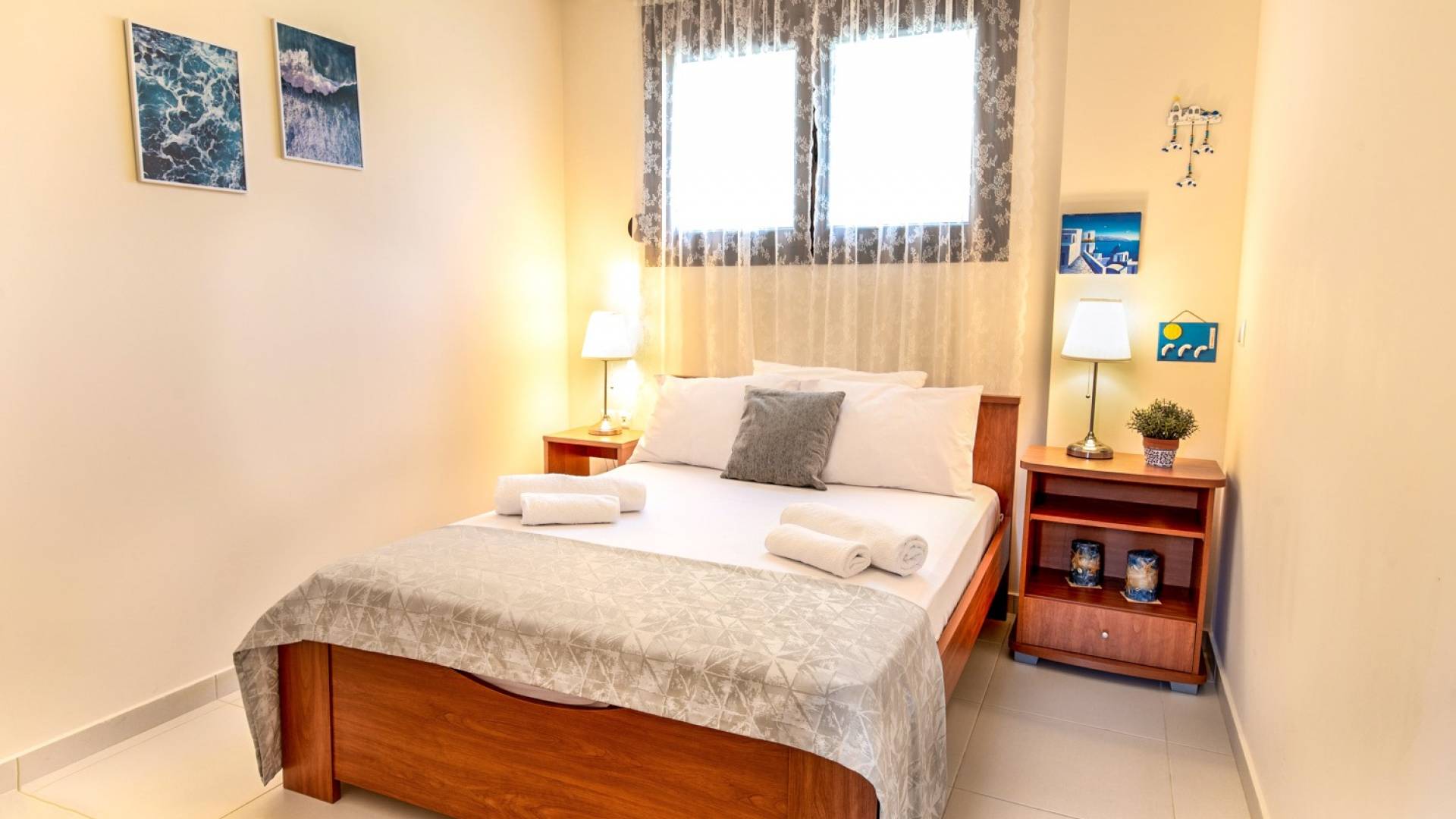 El segundo edificio está en la planta baja, de fácil acceso para las personas que quieren evitar las escaleras. Hay dos dormitorios, una sala de estar con TV plana, una cocina moderna, un baño, una lavadora y aire acondicionado. En el jardín hay mobiliario para que pueda disfrutar de sus comidas y tumbonas para tomar el sol. Ducha exterior con agua caliente, plazas de aparcamiento privado y zona de barbacoa.