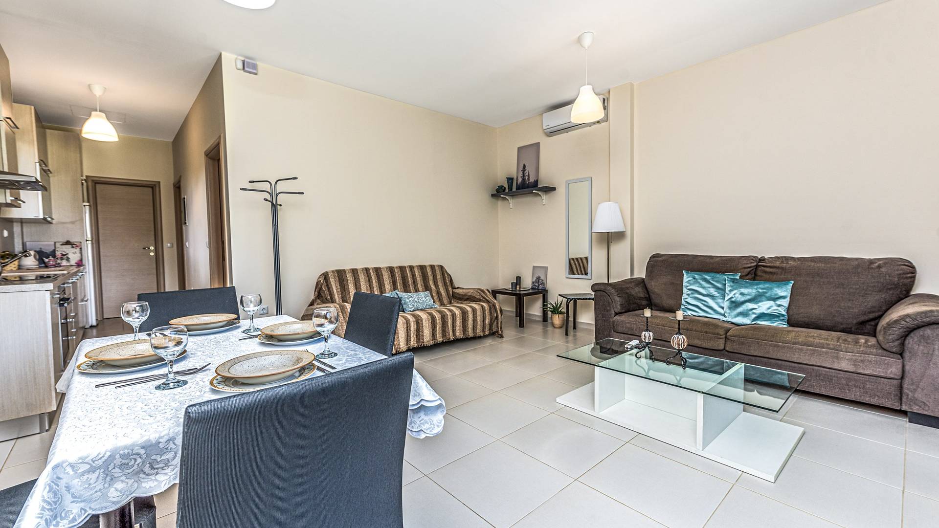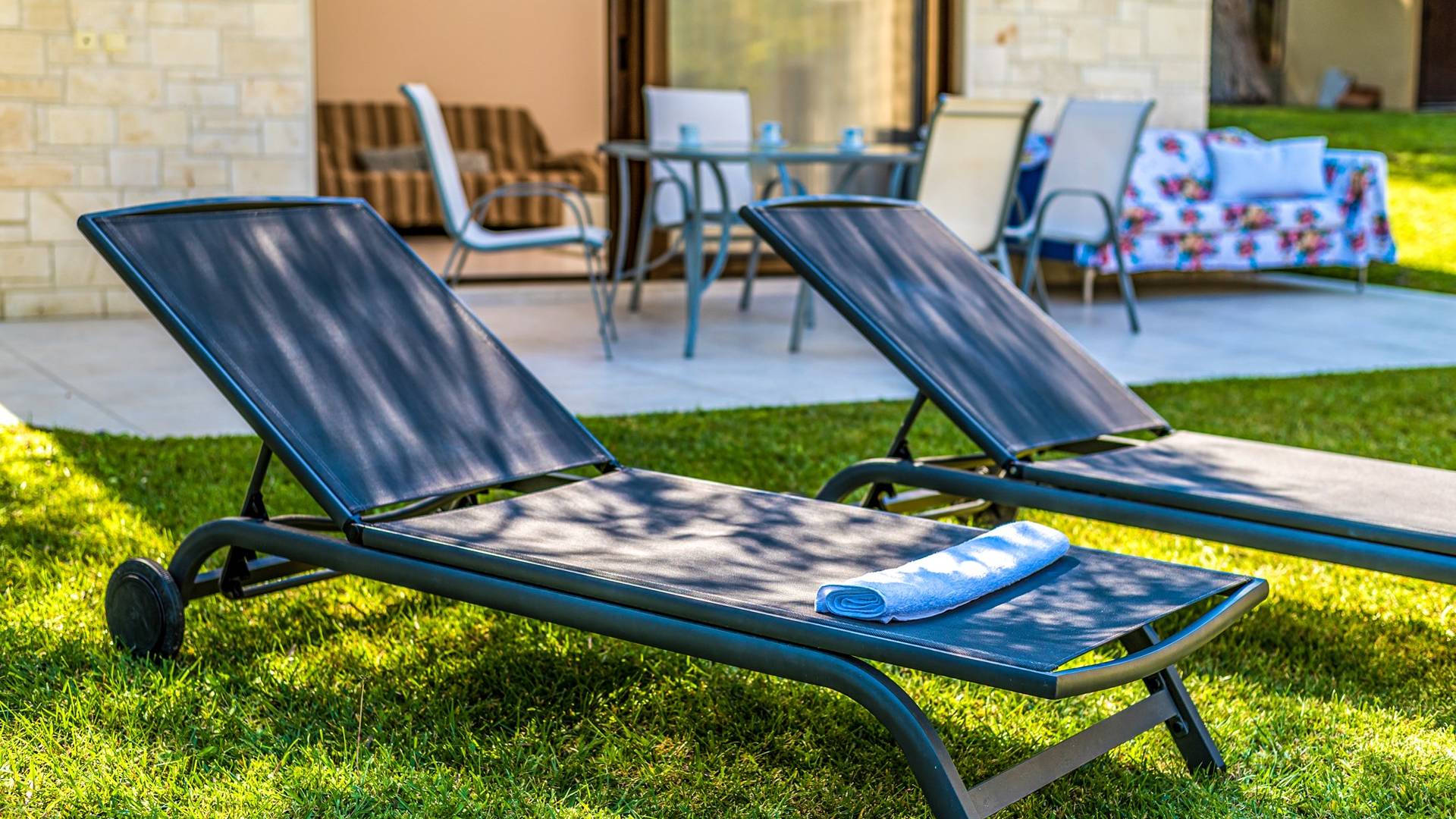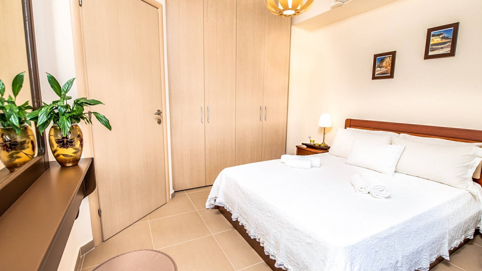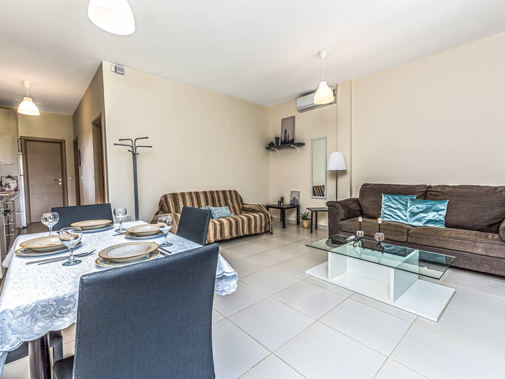 El segundo edificio está en la planta baja, de fácil acceso para las personas que quieren evitar las escaleras. Hay dos dormitorios, una sala de estar con TV plana, una cocina moderna, un baño, una lavadora y aire acondicionado. En el jardín hay mobiliario para que pueda disfrutar de sus comidas y tumbonas para tomar el sol. Ducha exterior con agua caliente, plazas de aparcamiento privado y zona de barbacoa.