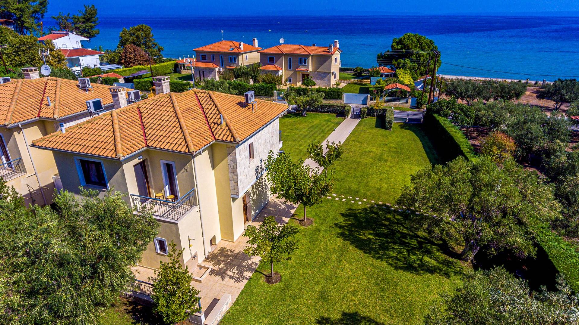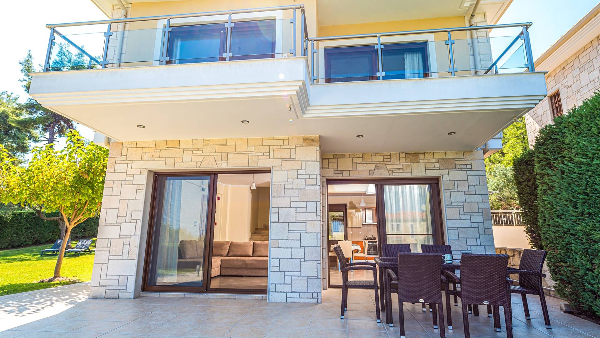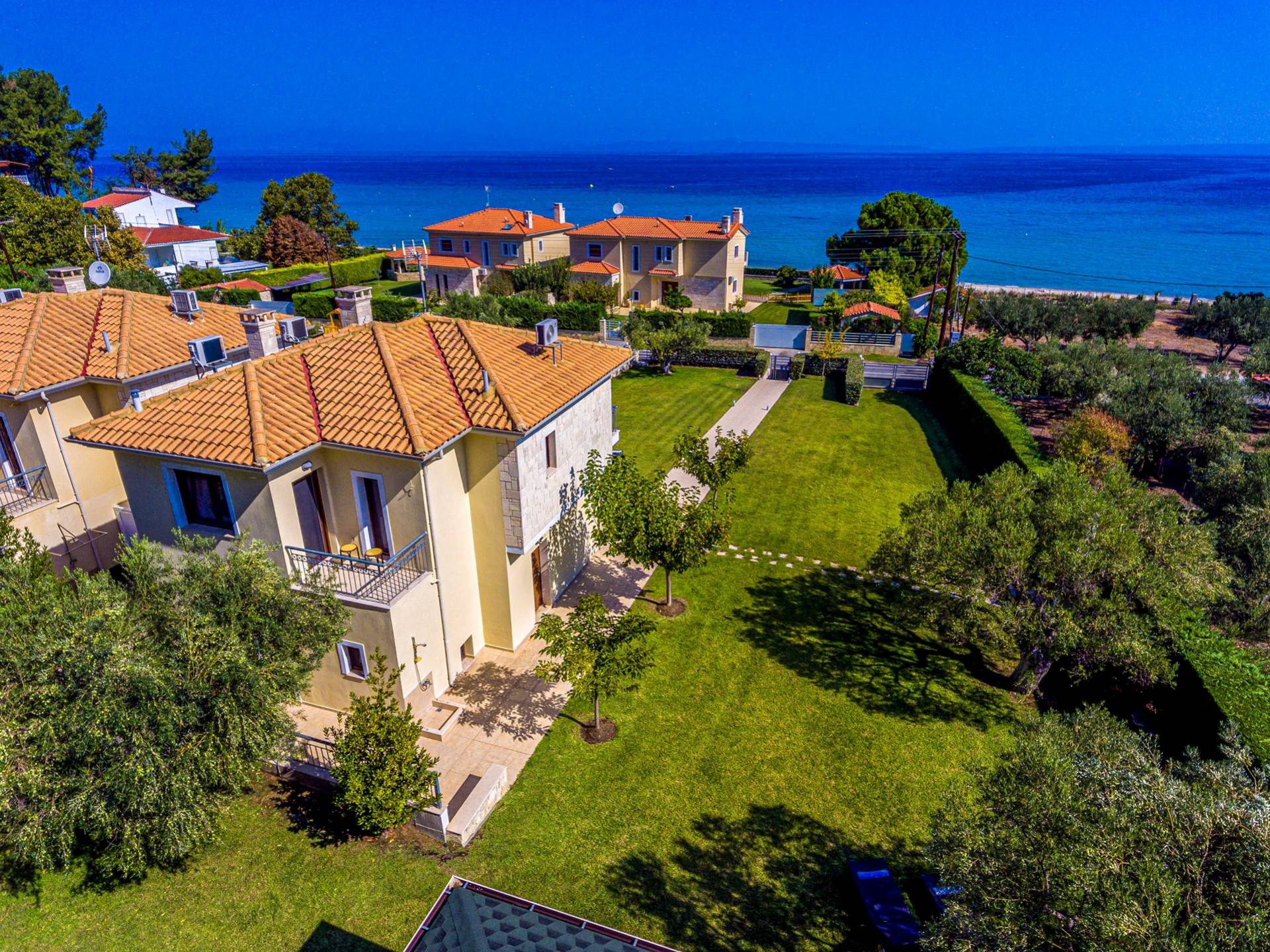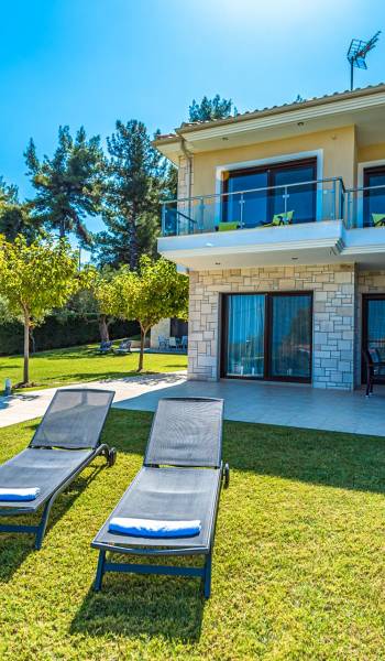 Increíble villa moderna con un amplio jardín a solo unos pasos de una hermosa y tranquila playa. Villa Ergopoli Halkidiki tiene dos edificios que comparten el mismo jardín, lo que le brinda más opciones de privacidad y comodidad.
