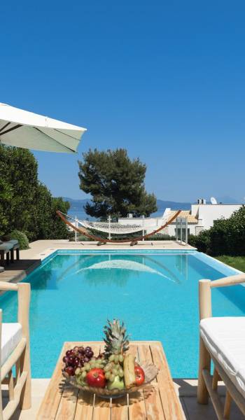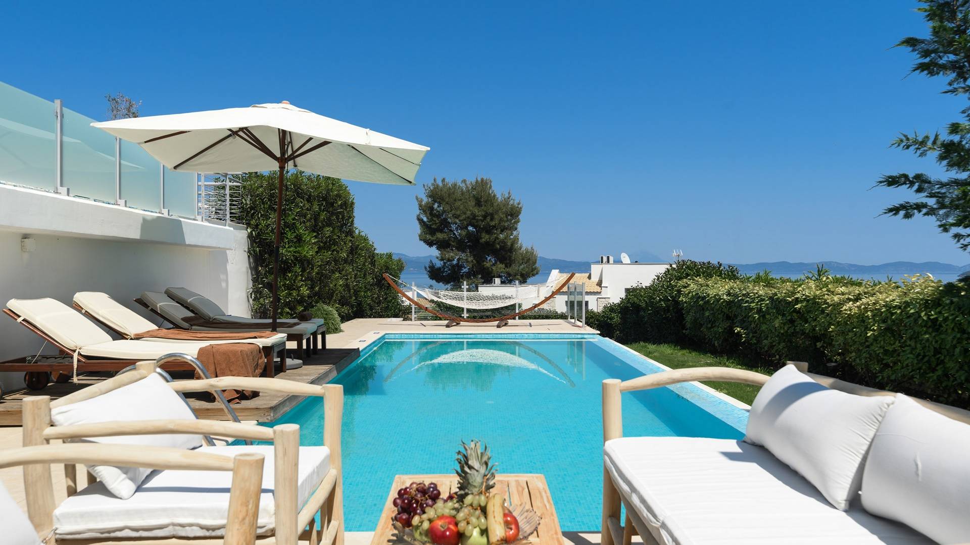 Disfruta tomando el sol junto a tu piscina, saboreando un cóctel frente a la hermosa vista al mar o mima tu cuerpo con un relajante masaje bajo una pérgola. Mímese con la atención exclusiva de nuestro personal en la residencia. Además de Villa Iliachtis, existe exactamente la misma villa con el nombre de Villa Alkyon que está disponible para alquilar.