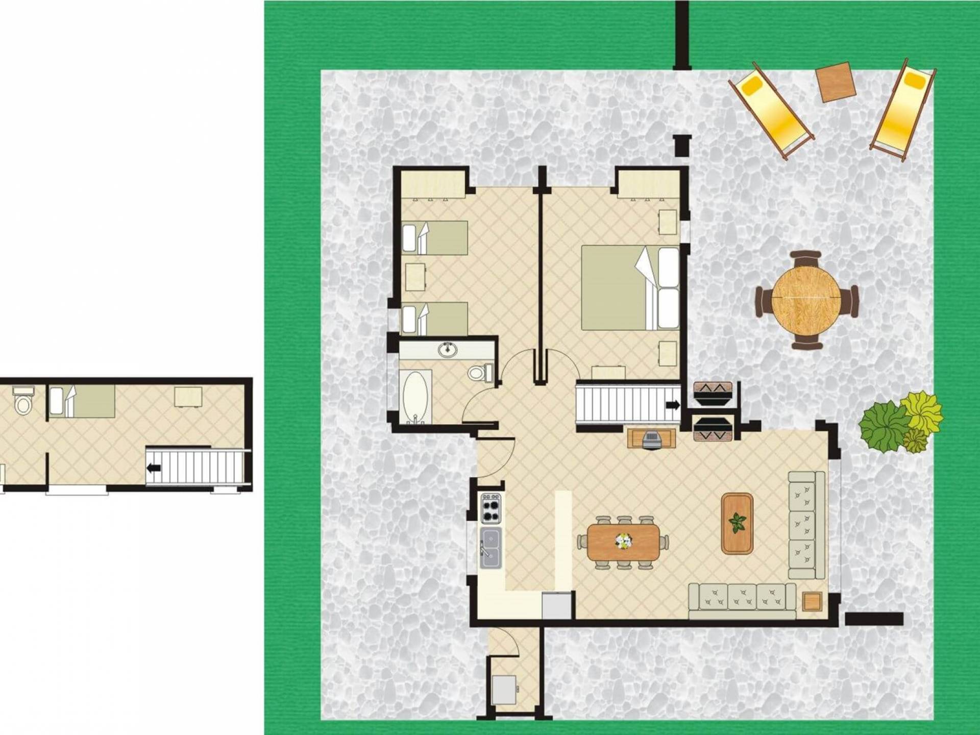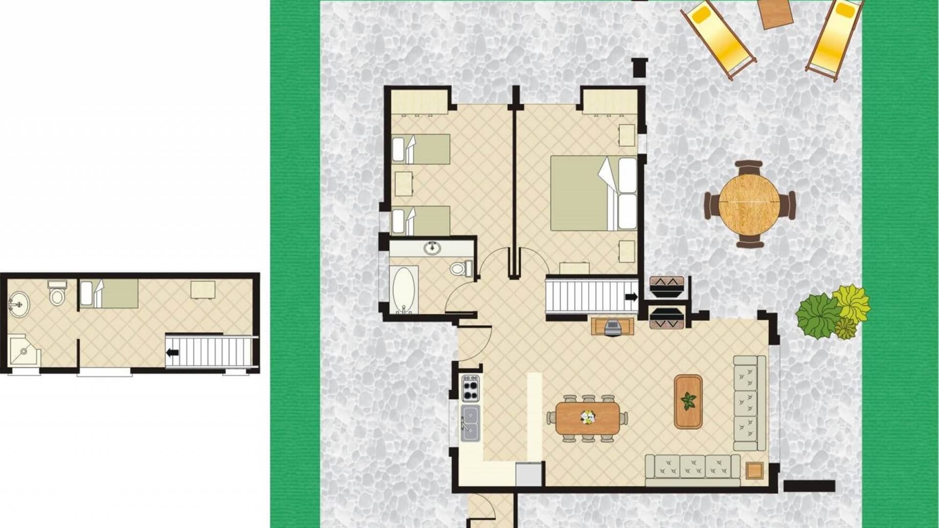 Thalia villa es una villa de dos pisos moderadamente espaciada contenida en su propia área de jardín y que comparte una piscina comunitaria con las otras villas del resort, un área de descanso y comedor en la planta baja se conecta a la casa. La villa tiene un dormitorio doble y una habitación individual en el nivel inferior y otro dormitorio individual en el nivel superior, que tiene su propio wc/ducha. La villa también contiene una amplia sala de estar que se conecta a la cocina. Para su higiene, la villa alberga un aseo/baño con ducha.