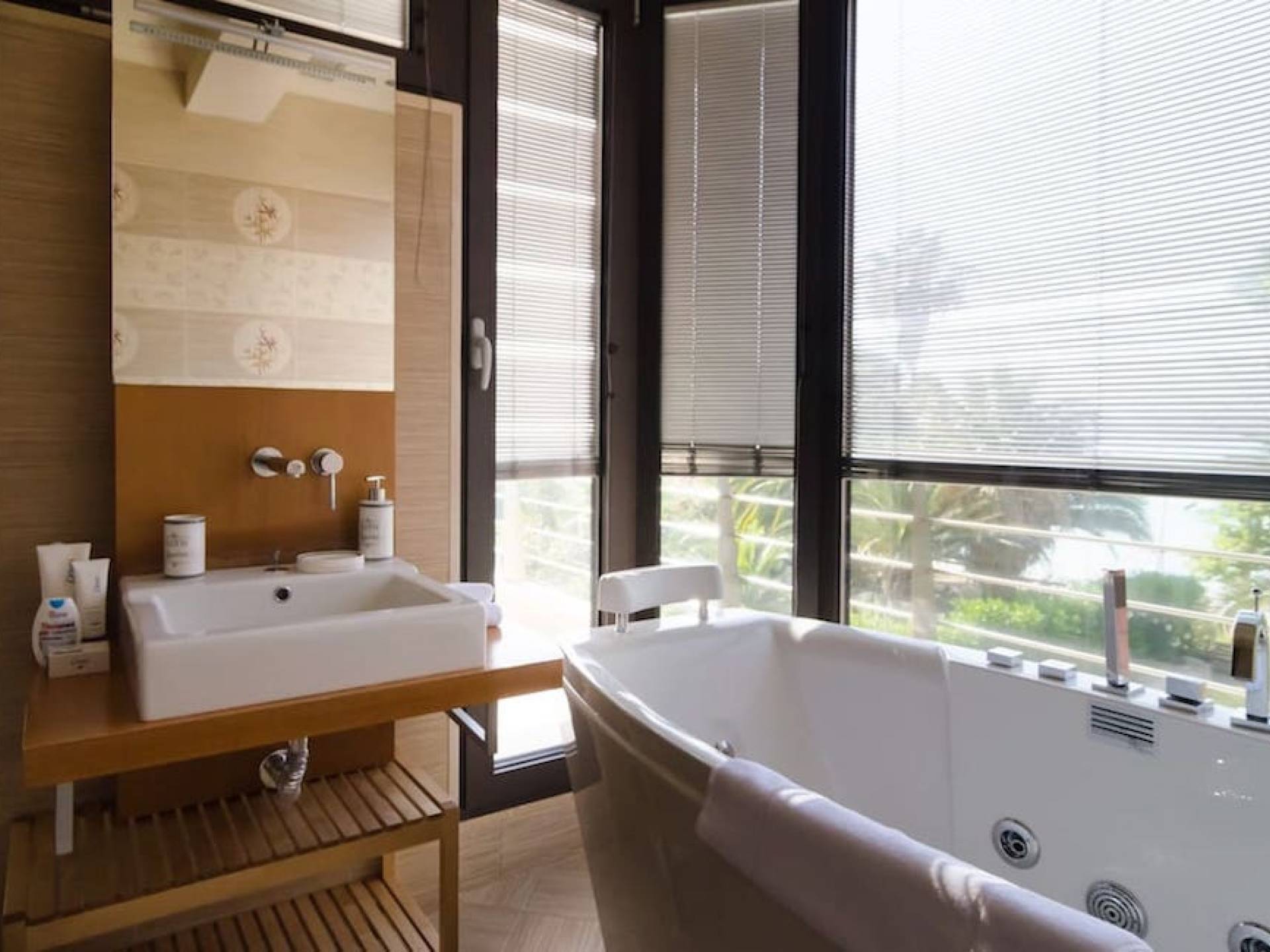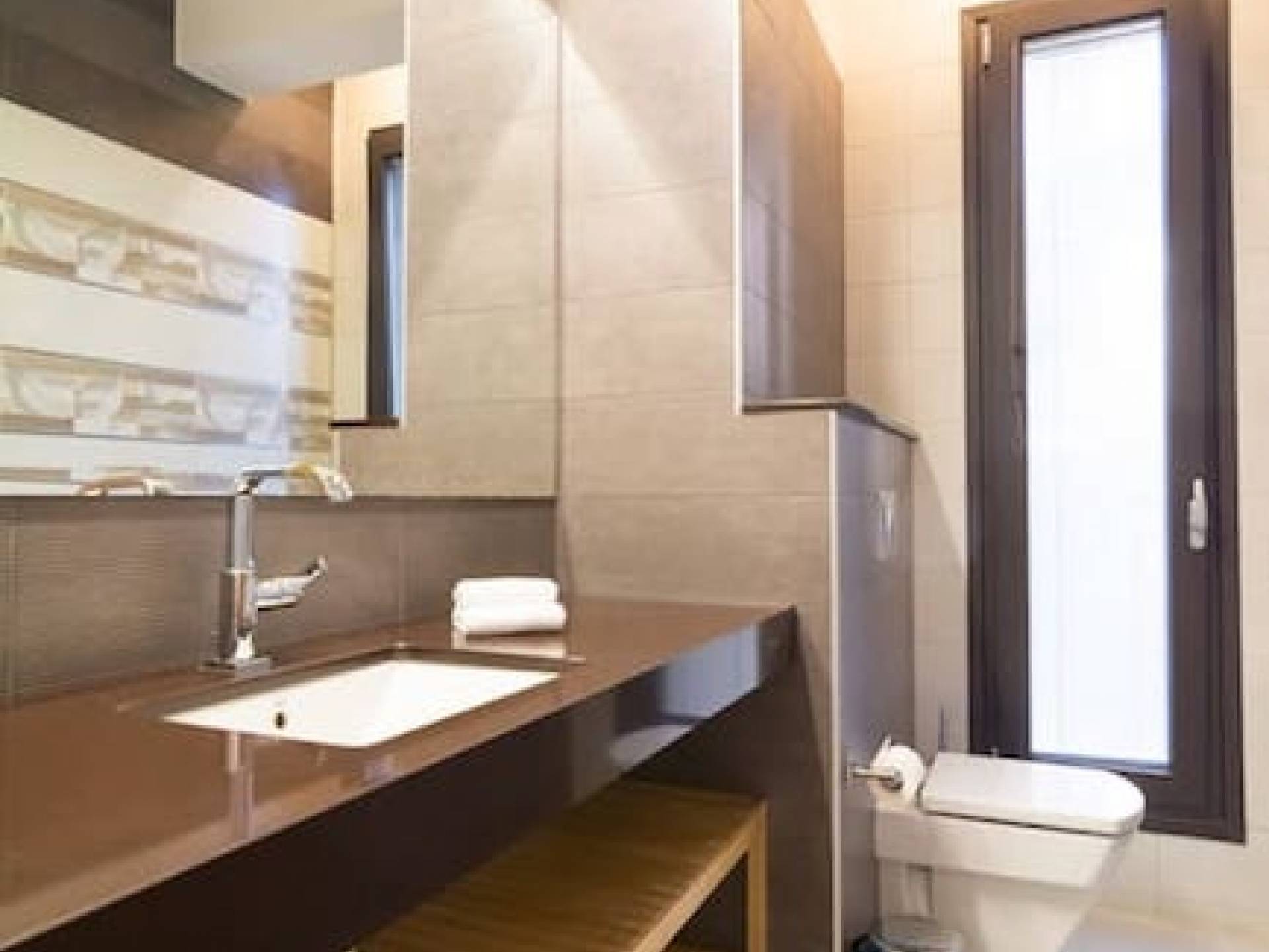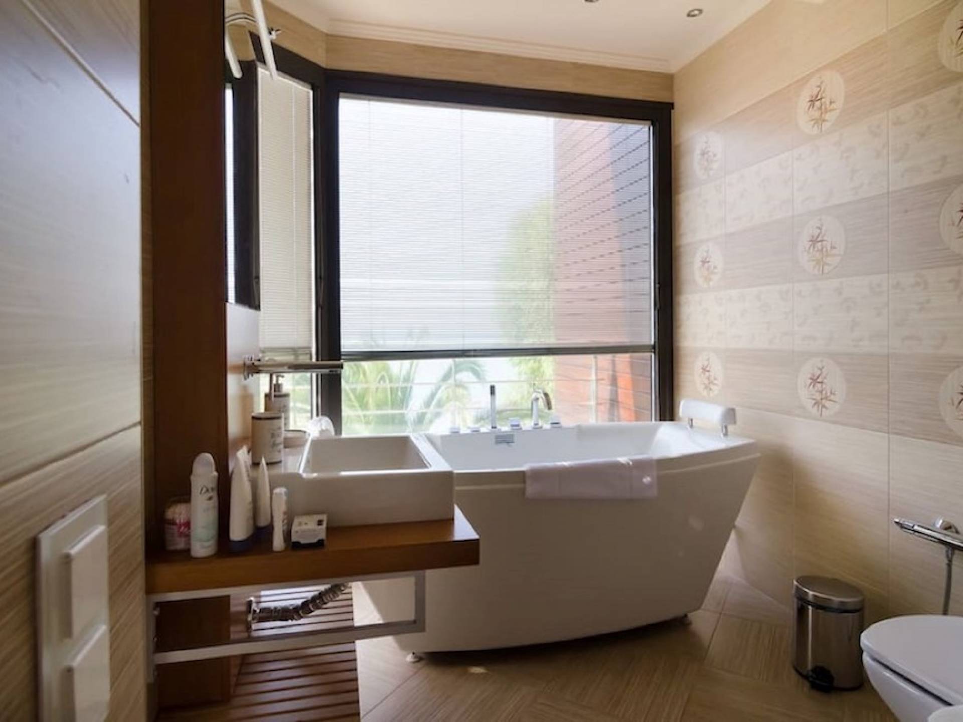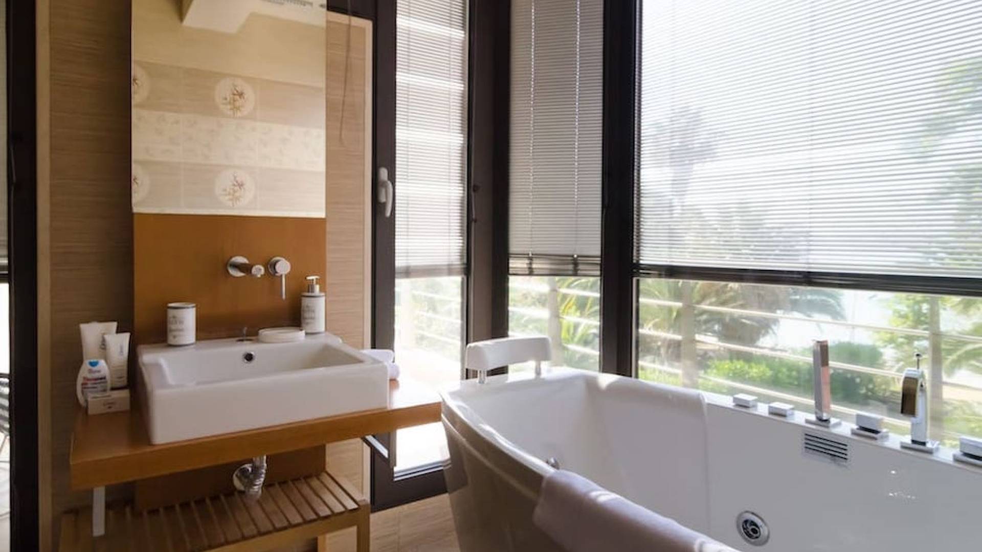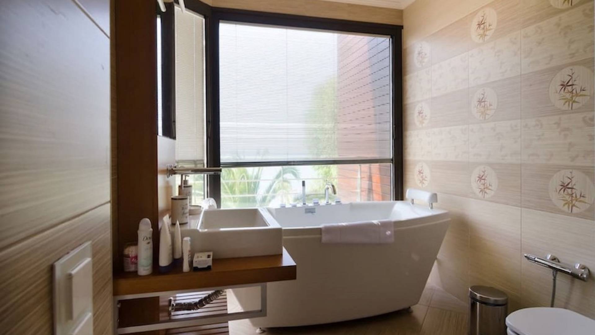 En la planta baja hay un estudio con cocina, dos dormitorios, baño y trastero. El primer piso tiene la sala de estar, cocina, comedor, sala de estar, baño y un dormitorio con baño en suite. La segunda planta consta de dos dormitorios todos ellos con baños en suite y el dormitorio principal de 60m2 con baño en suite con jacuzzi y vistas al mar. Samaya Beach Villa es nueva y está construida con la última tecnología y los materiales de construcción más caros.