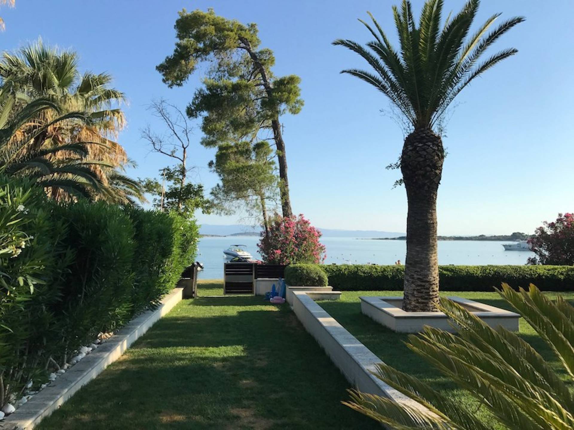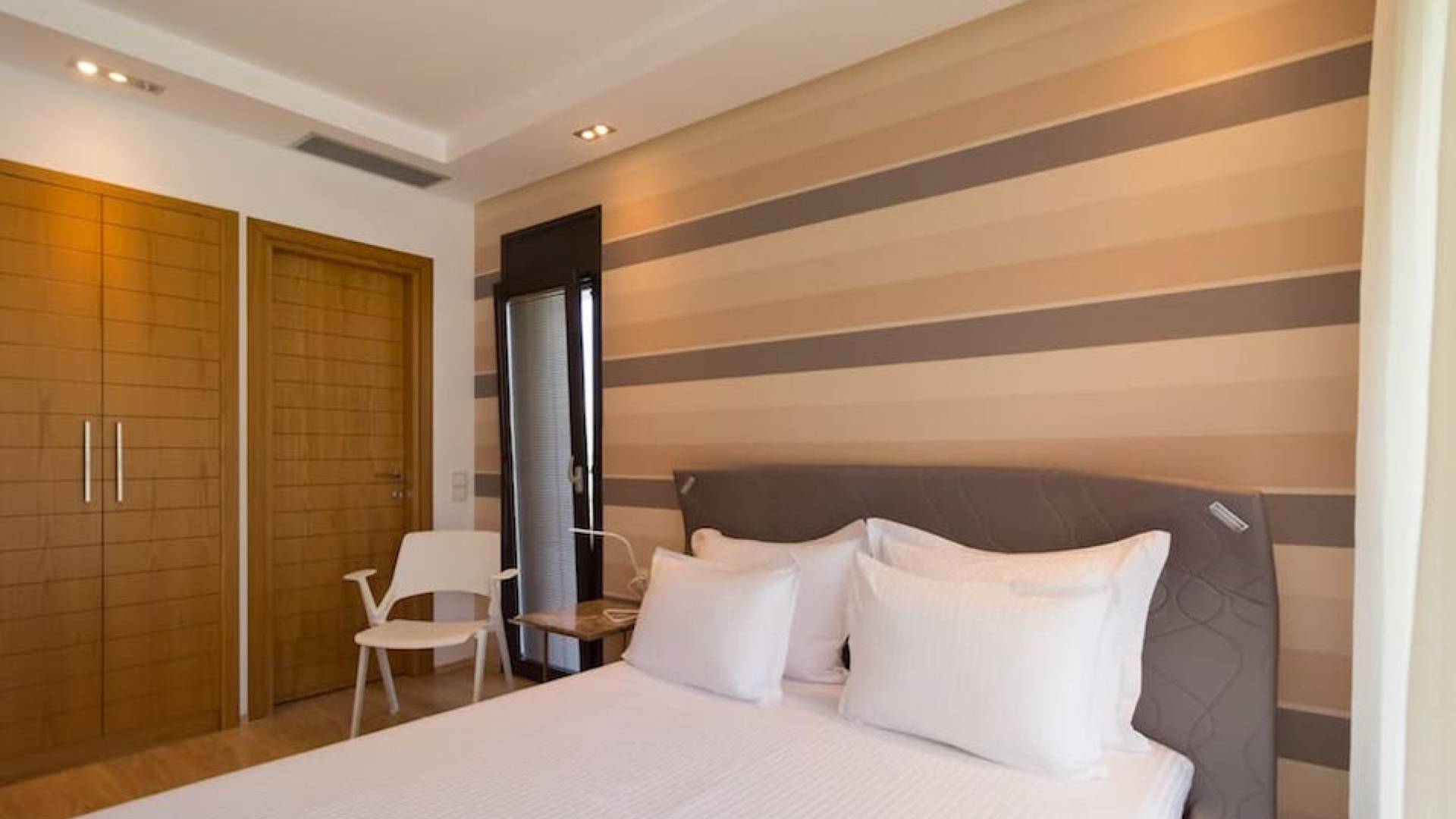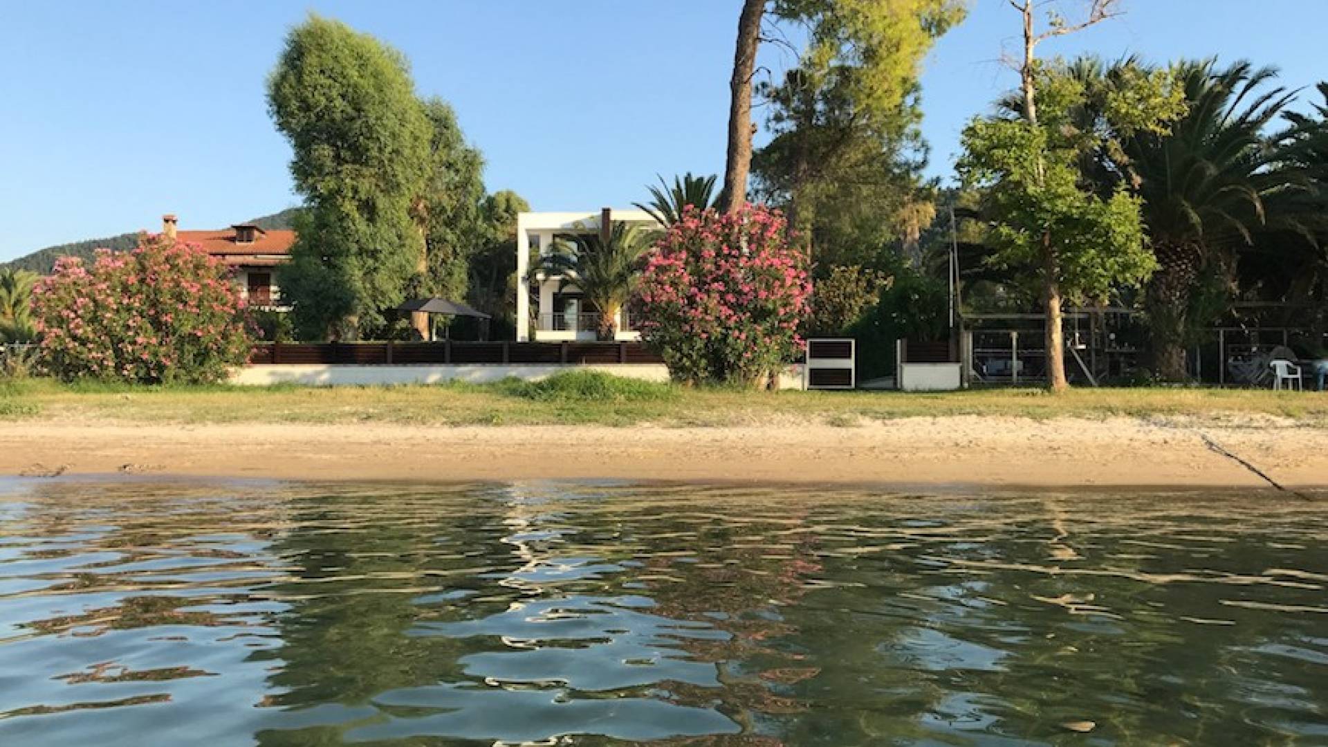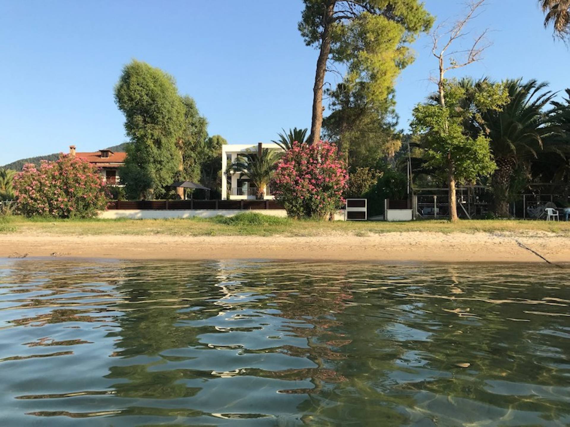 La villa Samaya Beach tiene 450m2 en una parcela de 2000m2 llena de árboles. La propiedad está ubicada frente a una hermosa playa de arena en Vourvourou, en la zona más prestigiosa de Sithonia, que ofrece increíbles vistas sobre el mar y la isla de Diaporos. Samaya Villa está construida en tres niveles con 6 habitaciones dobles, todas con baño en suite, una sala de estar principal y dos cocinas.
