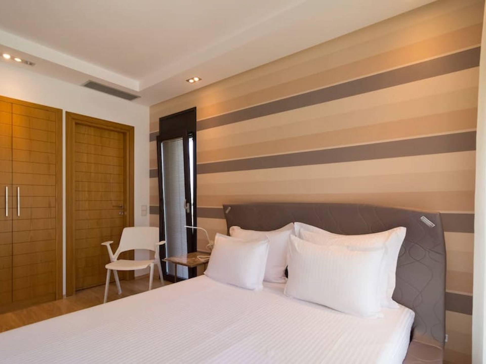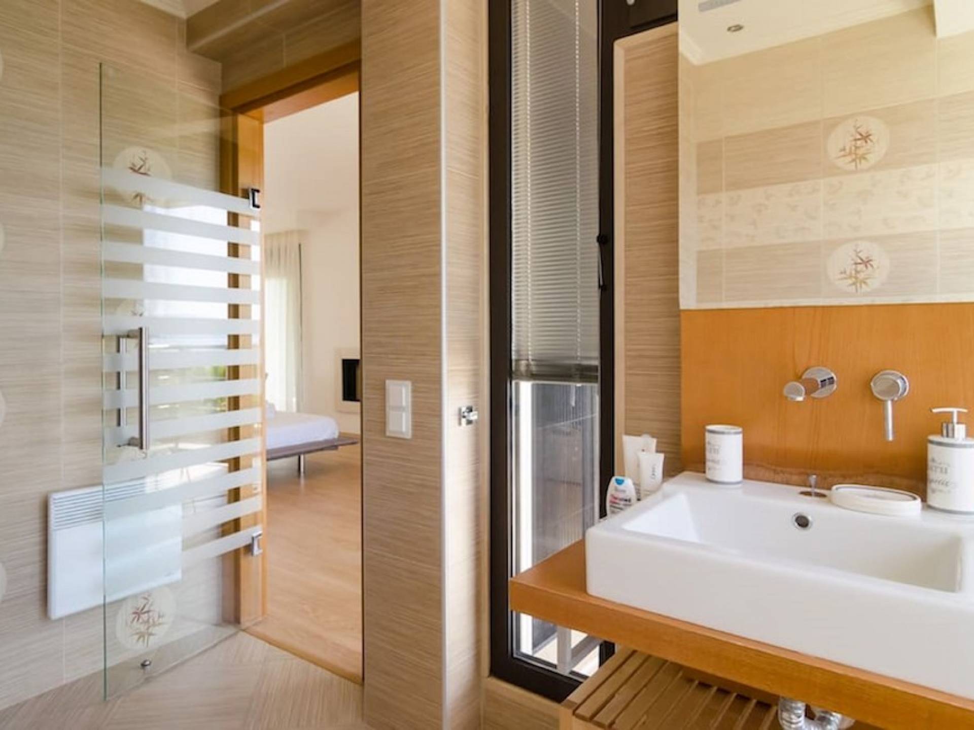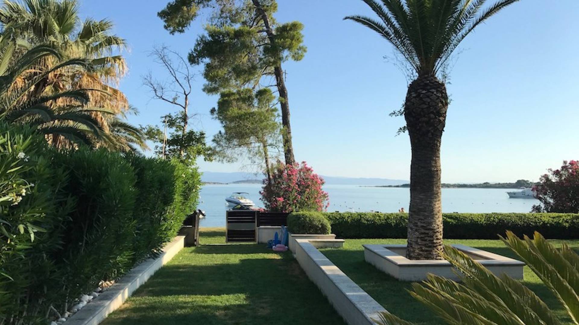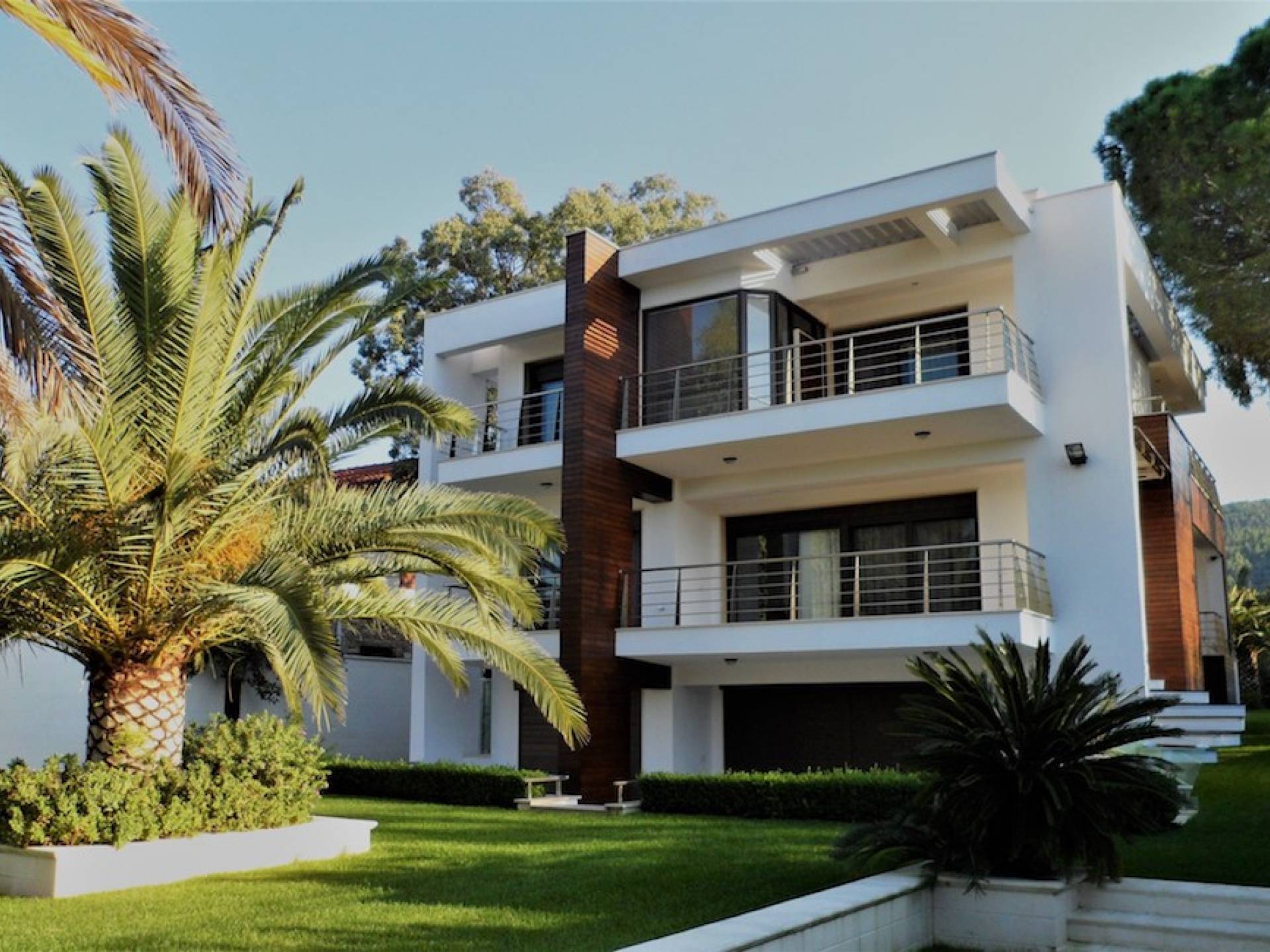La villa Samaya Beach tiene 450m2 en una parcela de 2000m2 llena de árboles. La propiedad está ubicada frente a una hermosa playa de arena en Vourvourou, en la zona más prestigiosa de Sithonia, que ofrece increíbles vistas sobre el mar y la isla de Diaporos. Samaya Villa está construida en tres niveles con 6 habitaciones dobles, todas con baño en suite, una sala de estar principal y dos cocinas.