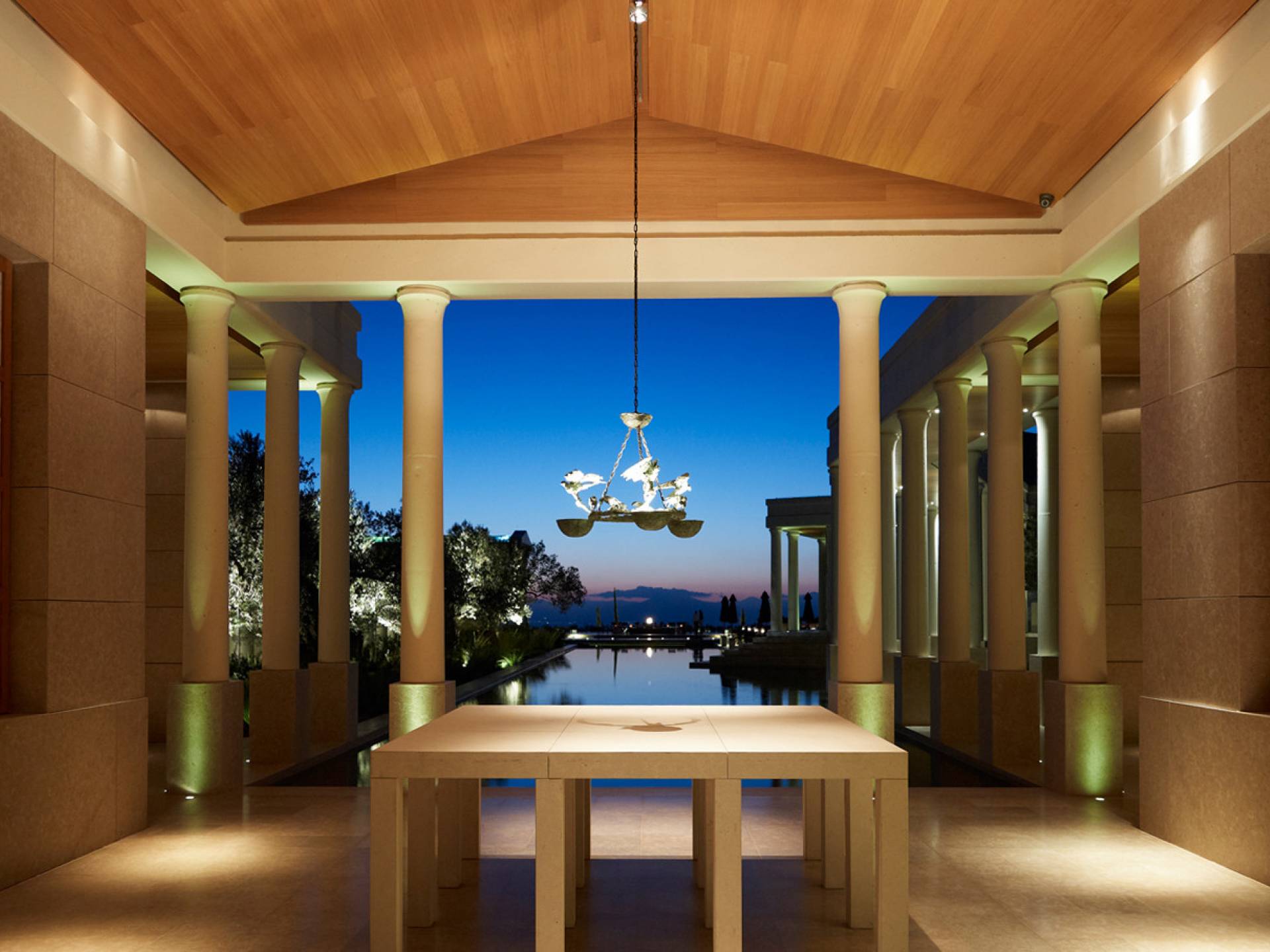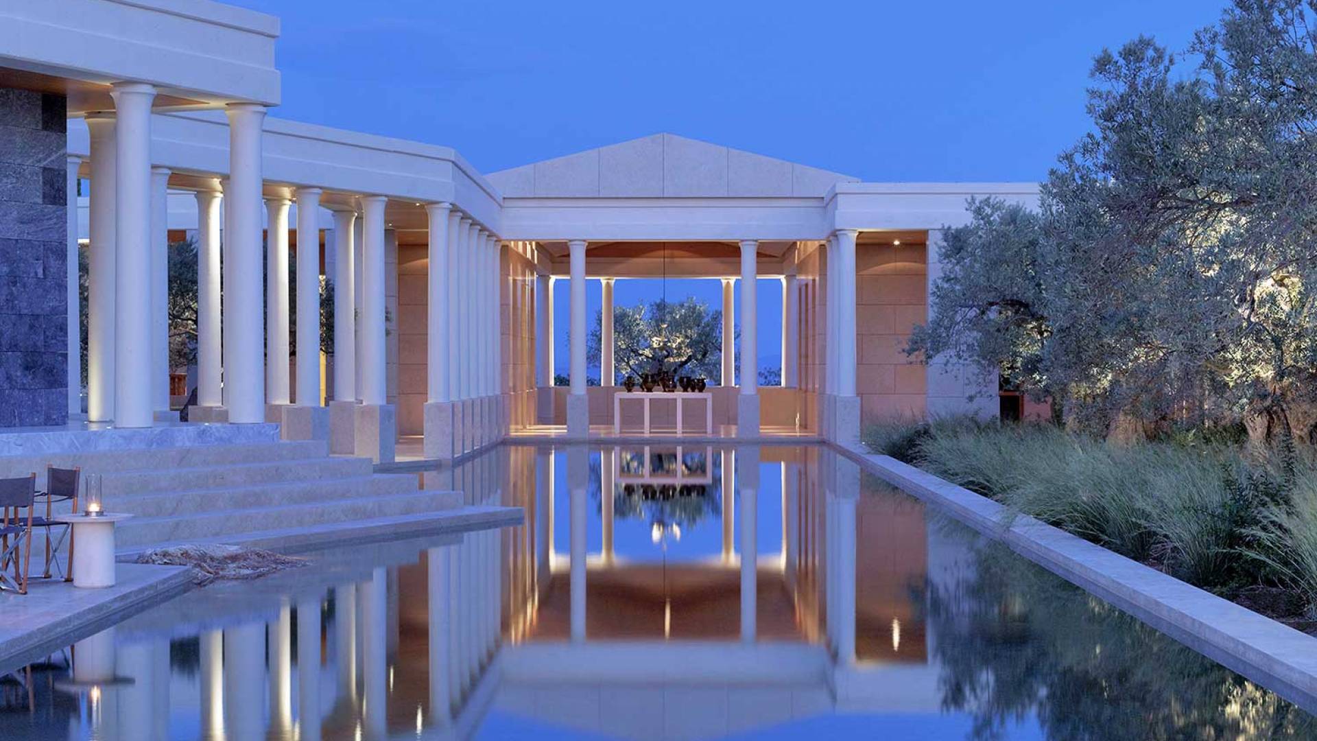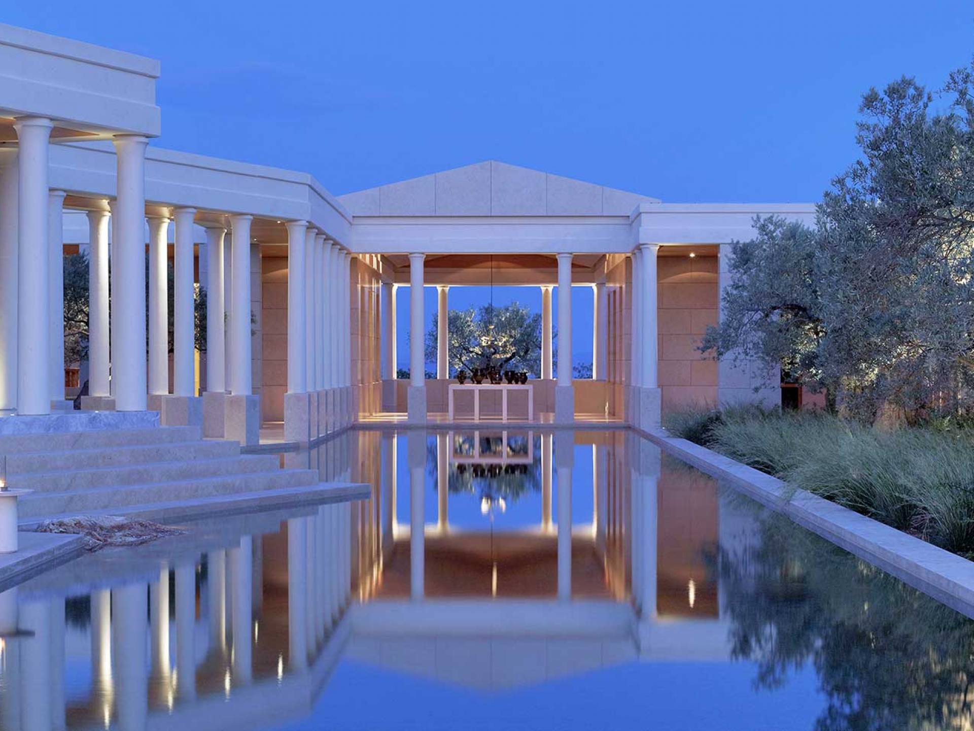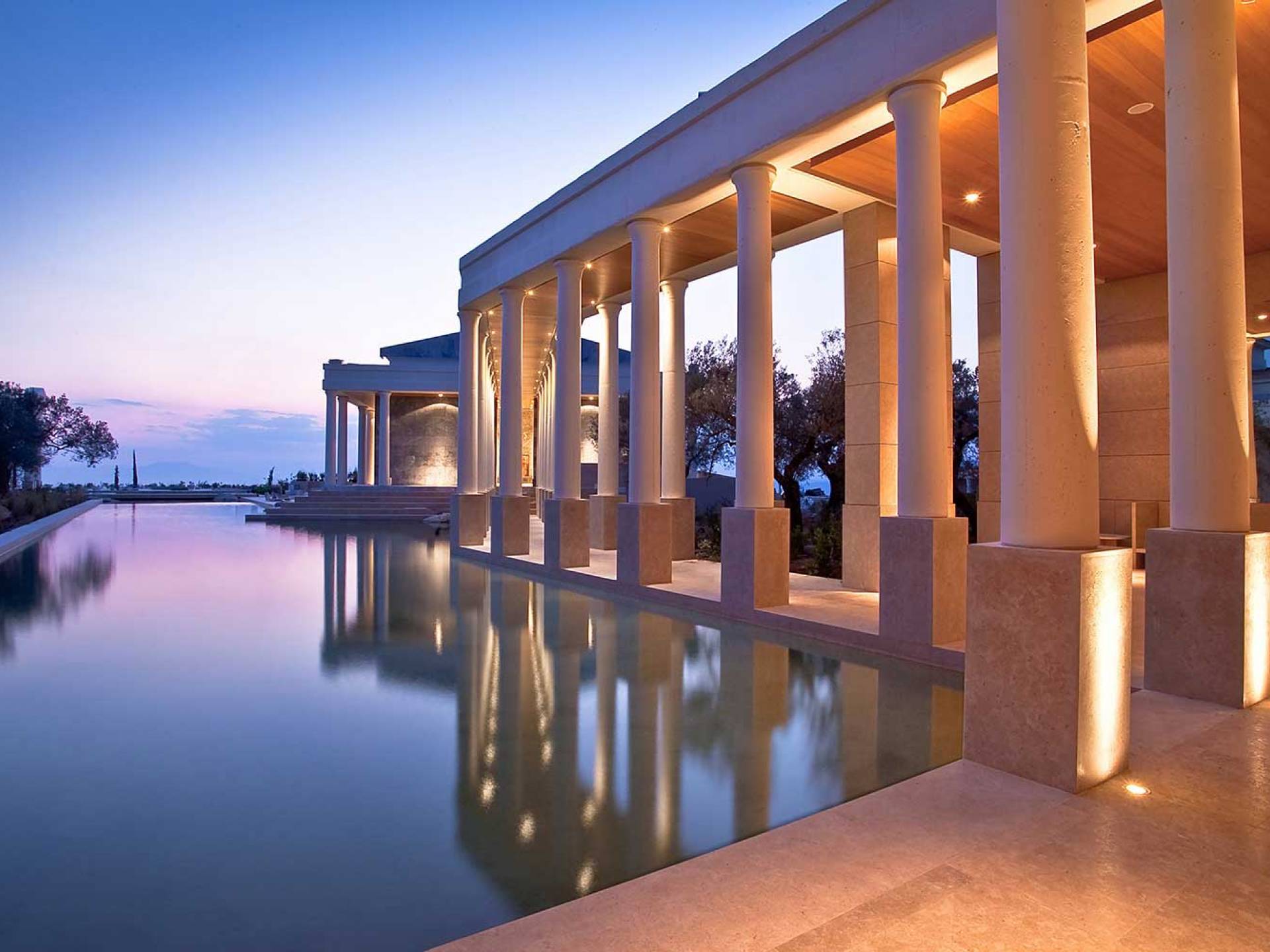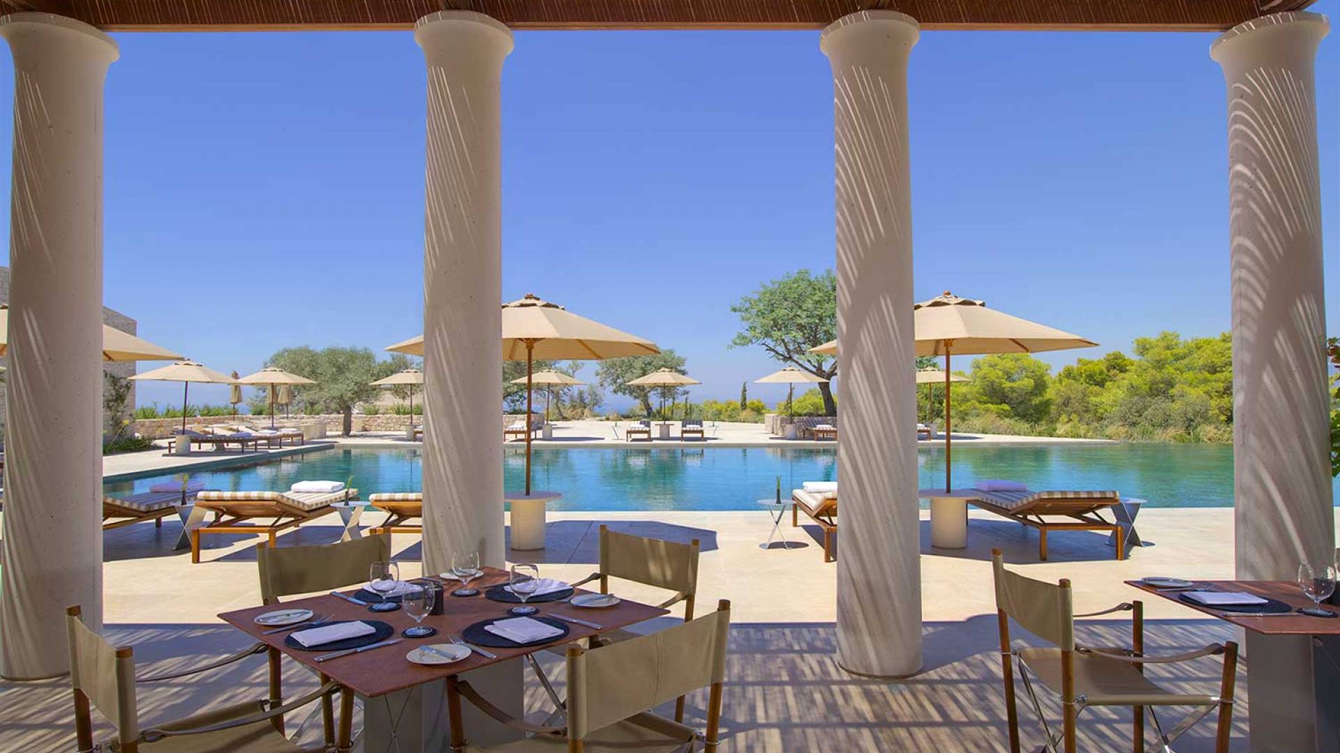 Amanzoe Resort en Porto Heli Grecia, antigua epopeya griega. El vuelo en helicóptero desde Atenas a Amanzoe crea una rápida transición hacia una Grecia completamente más salvaje, un lugar de naturaleza pura, donde el tiempo se detiene. Salpicado de ruinas de la Unesco, el Peloponeso por descubrir ha estado en el corazón de la cultura griega durante milenios, y es allí donde Amanzoe ha establecido su hogar en la cima de una colina, una Acrópolis moderna desde la cual las vistas de 360 grados abarcan olivares, azul del Egeo y poco más. Diseñadas para fusionarse con la tierra, las suites y villas con piscinas desmienten una notable sensación de espacio, abriéndose al fragante jardín o la playa, donde las lanchas rápidas esperan para deslizarse entre calas secretas y las cercanas islas de Spetses e Hydra.