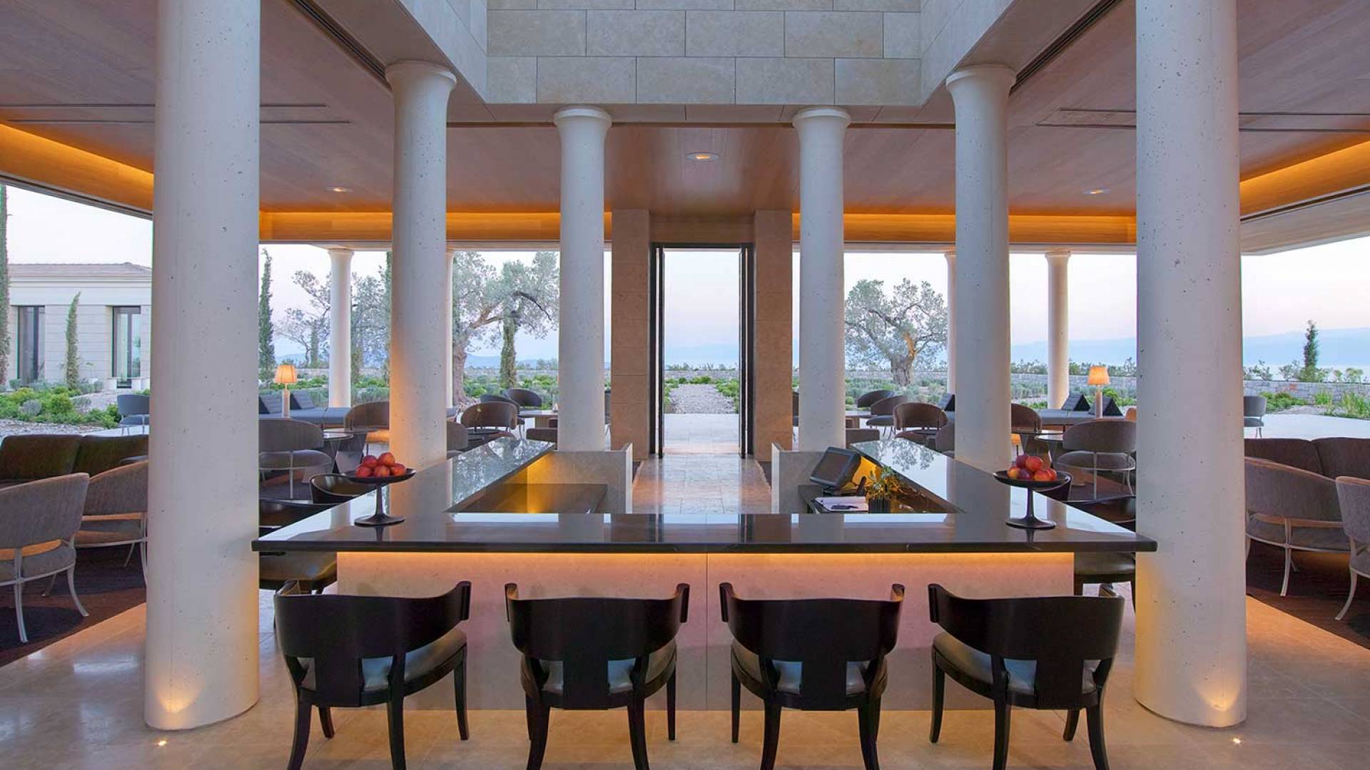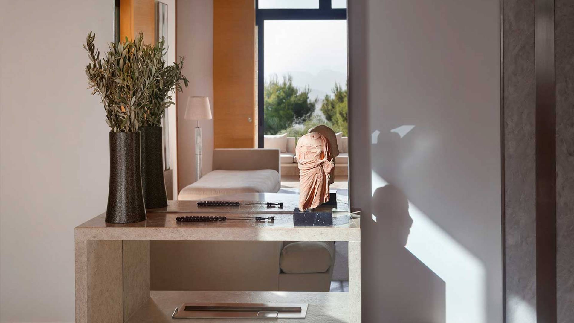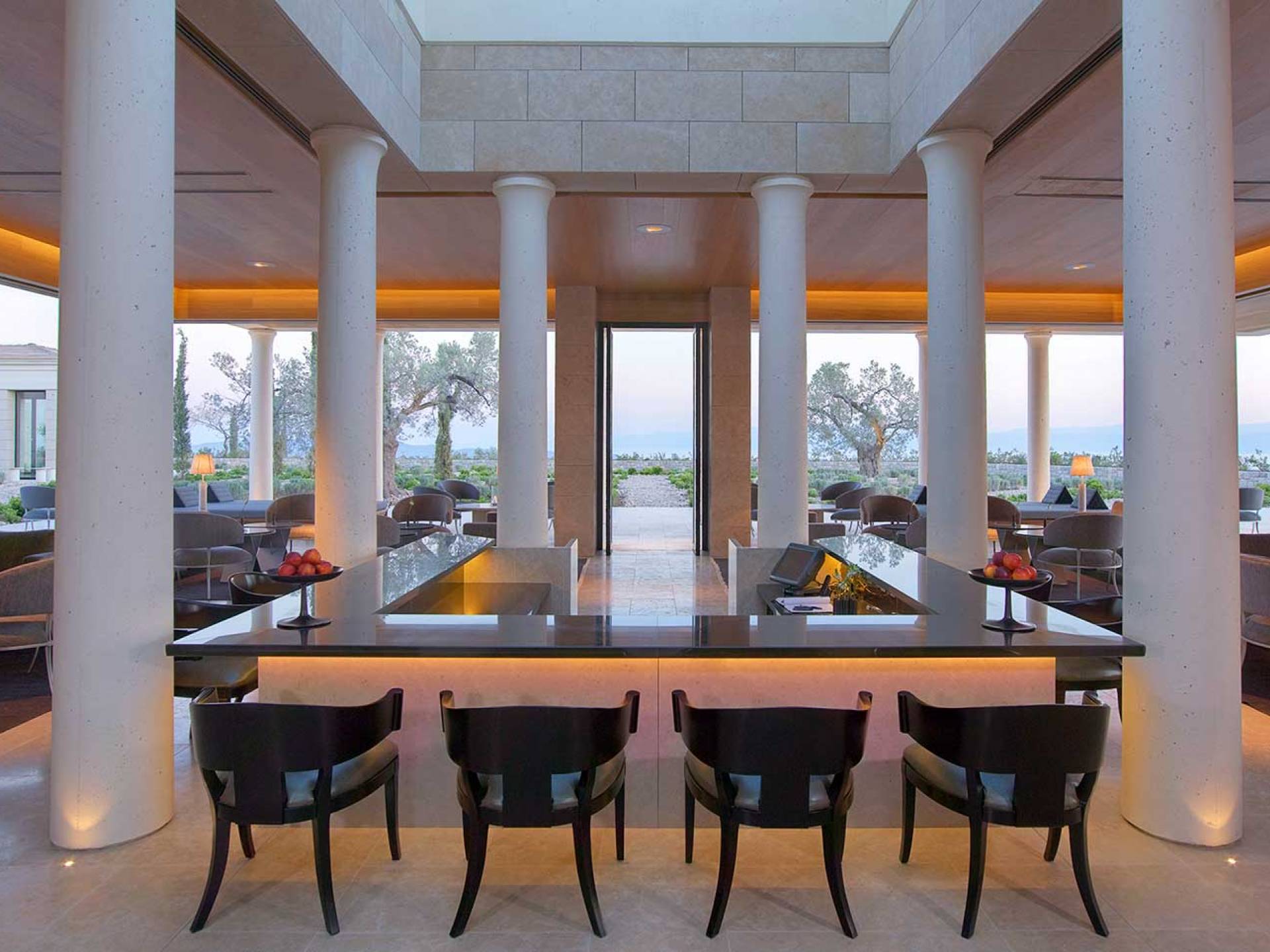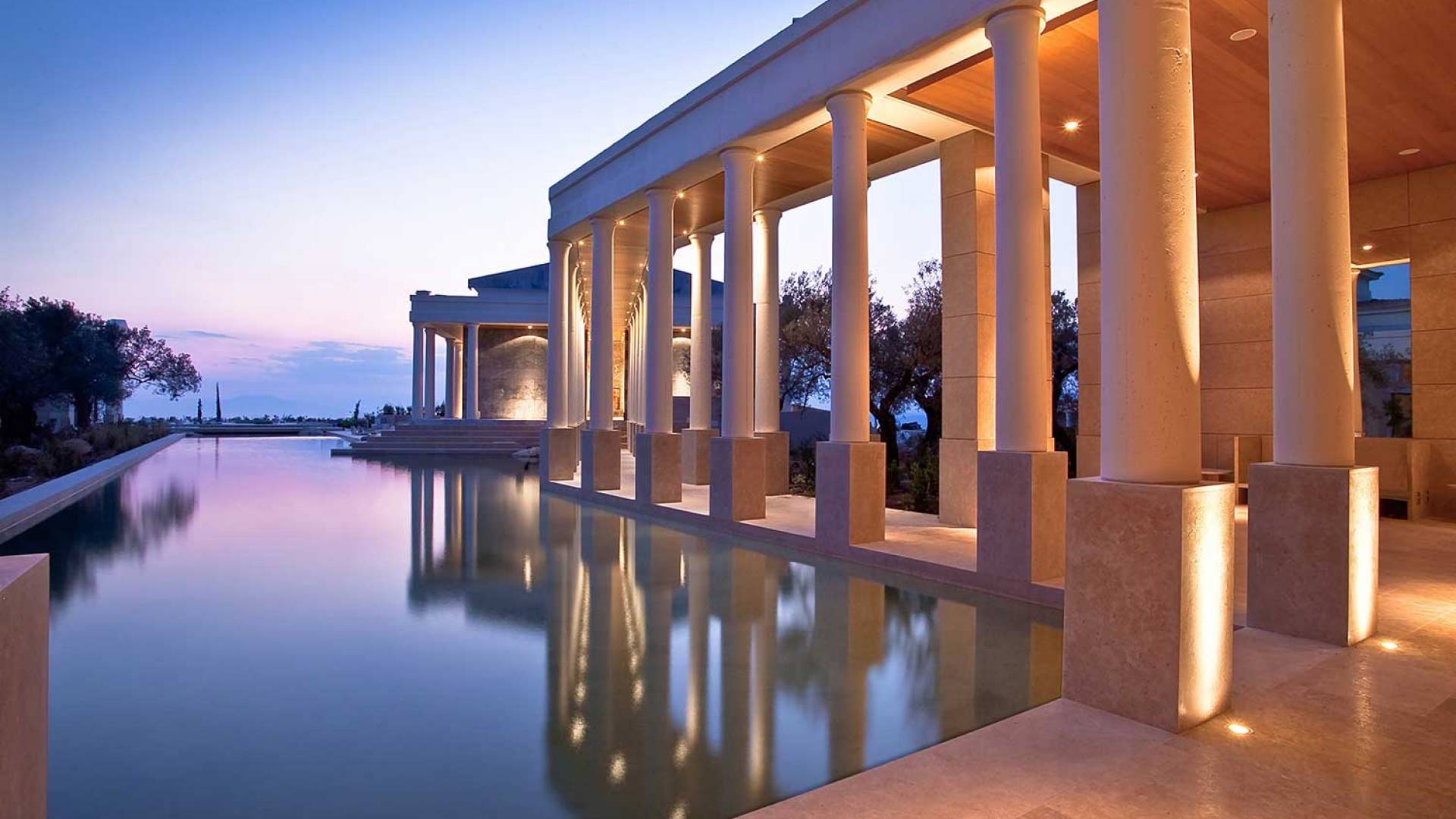 Amanzoe Resort en Porto Heli Grecia, antigua epopeya griega. El vuelo en helicóptero desde Atenas a Amanzoe crea una rápida transición hacia una Grecia completamente más salvaje, un lugar de naturaleza pura, donde el tiempo se detiene. Salpicado de ruinas de la Unesco, el Peloponeso por descubrir ha estado en el corazón de la cultura griega durante milenios, y es allí donde Amanzoe ha establecido su hogar en la cima de una colina, una Acrópolis moderna desde la cual las vistas de 360 grados abarcan olivares, azul del Egeo y poco más. Diseñadas para fusionarse con la tierra, las suites y villas con piscinas desmienten una notable sensación de espacio, abriéndose al fragante jardín o la playa, donde las lanchas rápidas esperan para deslizarse entre calas secretas y las cercanas islas de Spetses e Hydra.