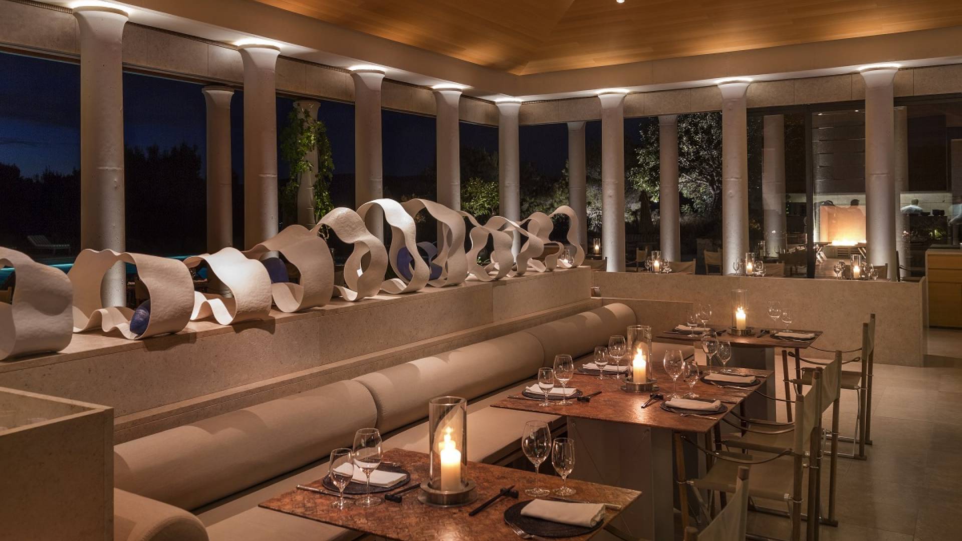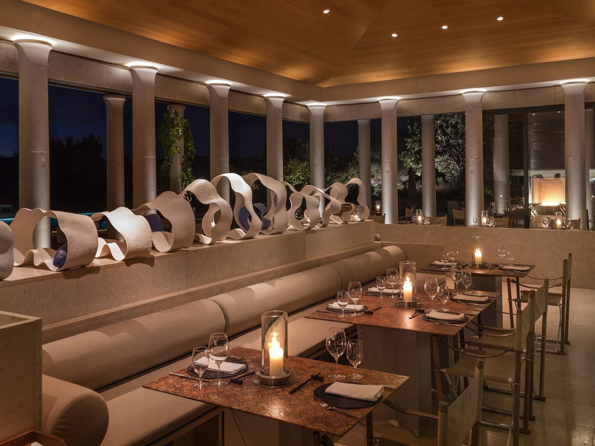 Desde la cocina japonesa de Nama hasta la comida mediterránea del restaurante, Amanzoe se centra en sabores simples, preparados por expertos. Las entregas diarias de lubina, besugo, mero y crustáceo local, así como cordero, cerdo y conejo criados localmente hacen de Amanzoe un campeón de los productos locales y de temporada, todo servido en el amplio restaurante, con sus vistas al mar azul profundo. , junto a la piscina, en el club de playa informal o rodeado de velas en privado.