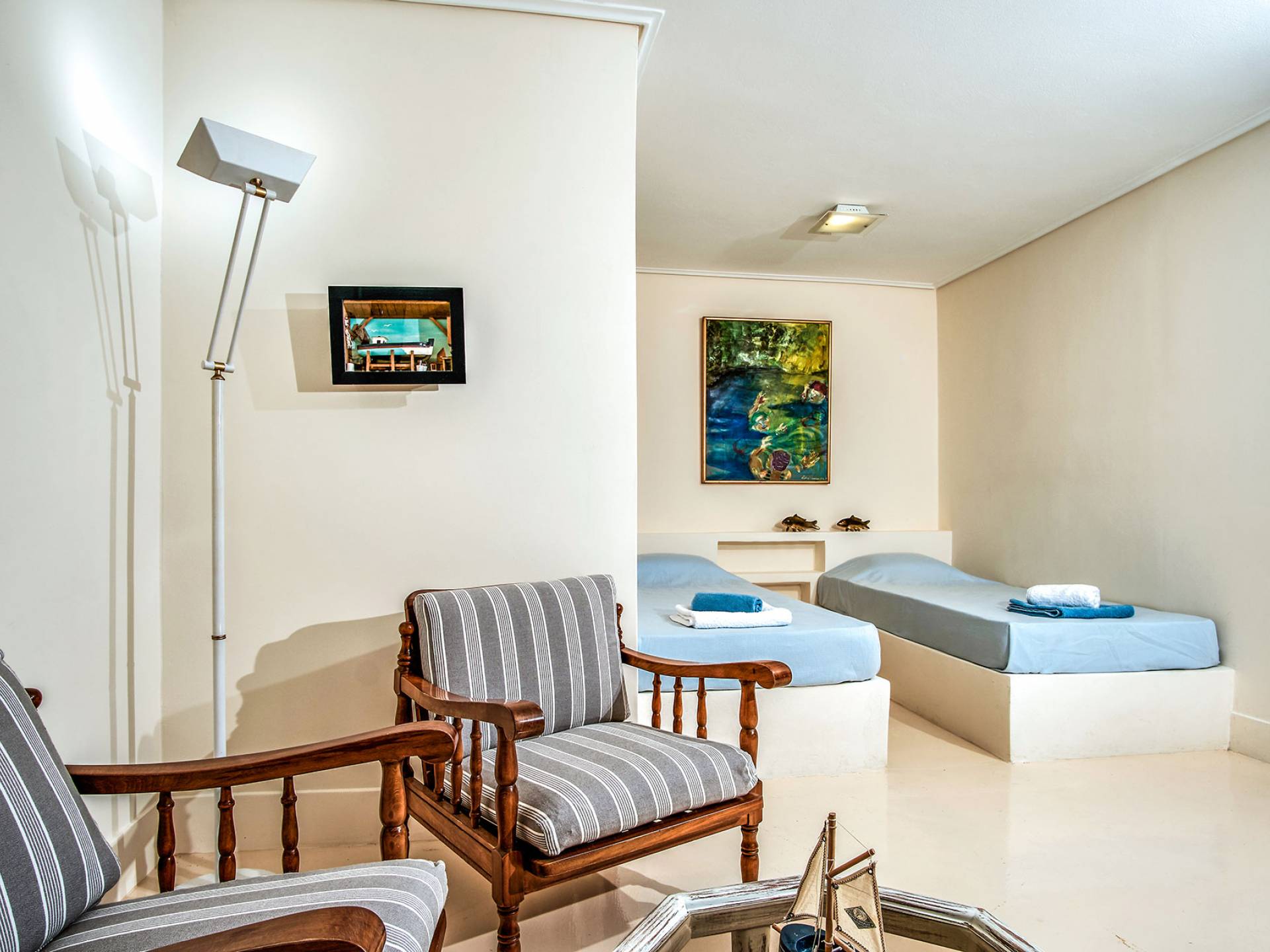 Villa Irini Porto Heli es una villa de lujo en alquiler con 6 dormitorios y piscina privada. El interior de la villa es acogedor, con una decoración acogedora, vistas impresionantes y amplias habitaciones. La sala de estar se une al comedor y ofrece una cómoda sala de estar con TV, reproductor de DVD, Wi-Fi y una pequeña estación de oficina con todo lo esencial (ordenador, impresora, fax).