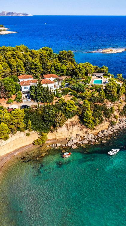 Porto Heli es una pequeña ciudad costera con un gran puerto ubicado en el lado este del Peloponeso. Este puerto alberga barcos de pesca y yates durante el verano, lo que le da a Porto Heli un carácter cosmopolita único. Porto Heli se considera la joya del Peloponeso que ofrece una exuberante naturaleza verde que abraza sus playas esmeralda. En su mayor parte, Porto Heli incluye pequeñas calas atractivas y aisladas, en lugar de playas organizadas (hay un par de ellas). Las aguas color pavo real cautivarán todos tus sentidos y te brindarán la relajación que anhelas en un ambiente de incomparable belleza.