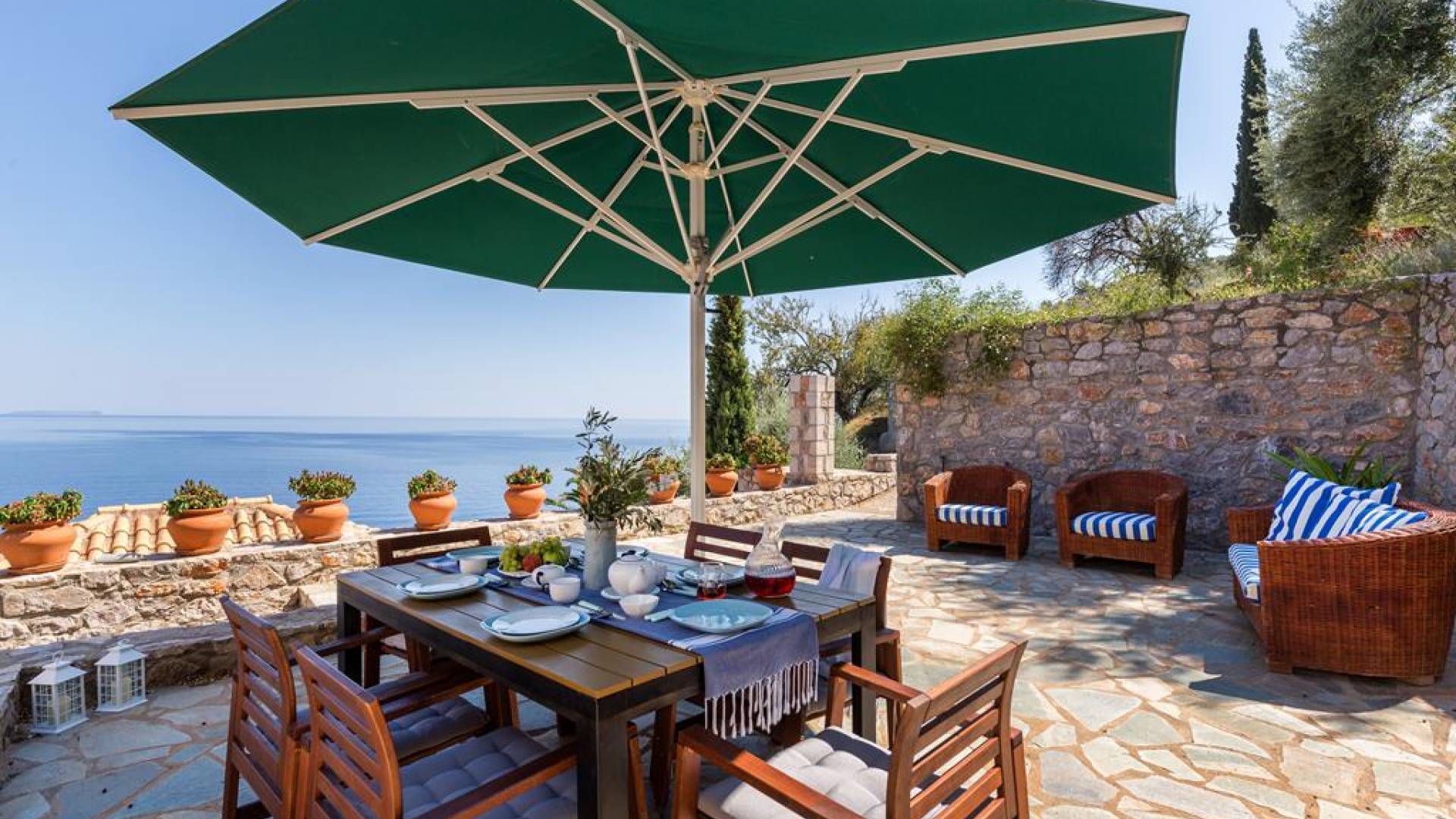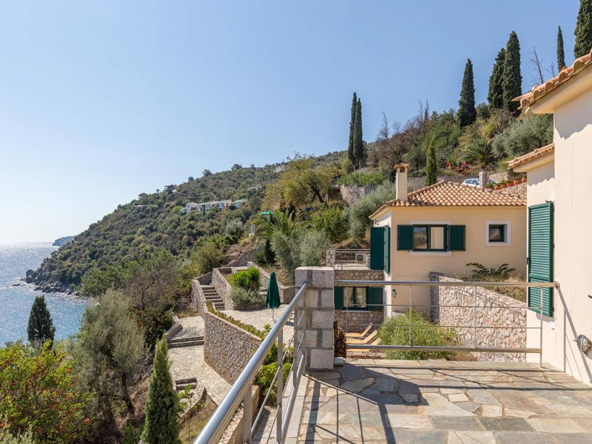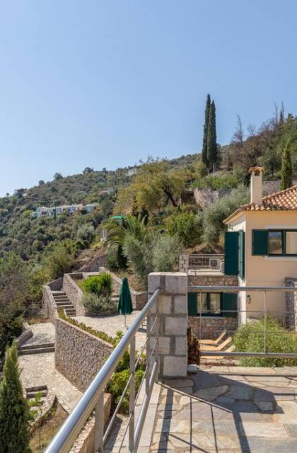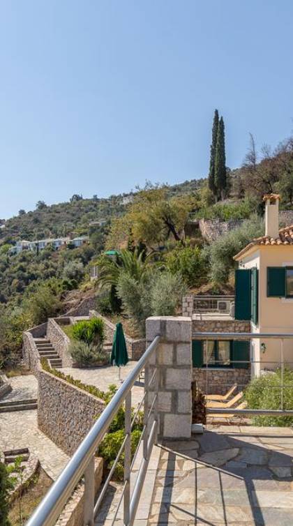 Kissakas Villas en Leonidio es un complejo de cuatro villas independientes. Estos alquileres de lujo están construidos en una ladera exuberante y verde, en medio de un bosque de olivos, almendros, perales, limoneros y palmeras. Al descender unos pocos pasos a través de una espesura de plátanos, se llega a la apartada playa de Kissakas.
