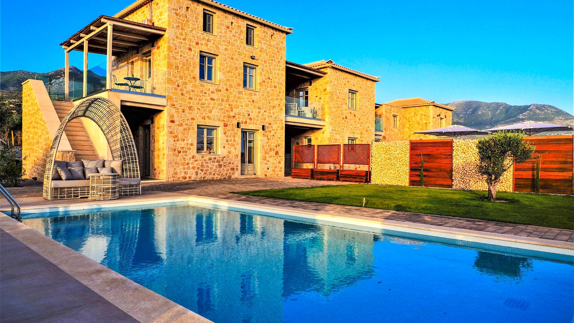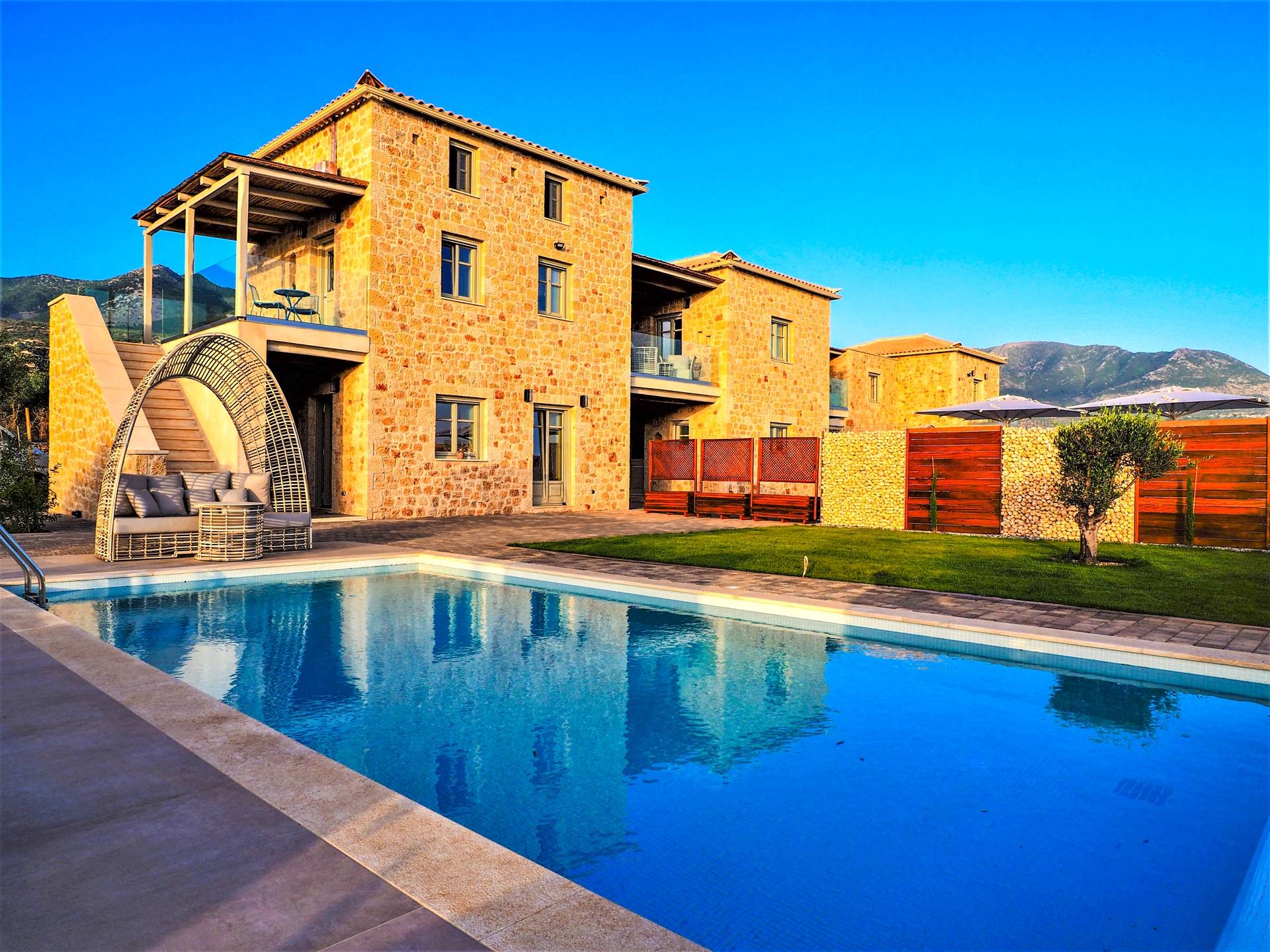 Katergo Luxury Villa 1 Messinia es un alquiler villa de lujo con 2 habitaciones y privada piscina. Katergo Luxury Villa 1 Messinia se encuentra en la Messinia, Peloponeso. Vea fotos, tarifas e información aquí.