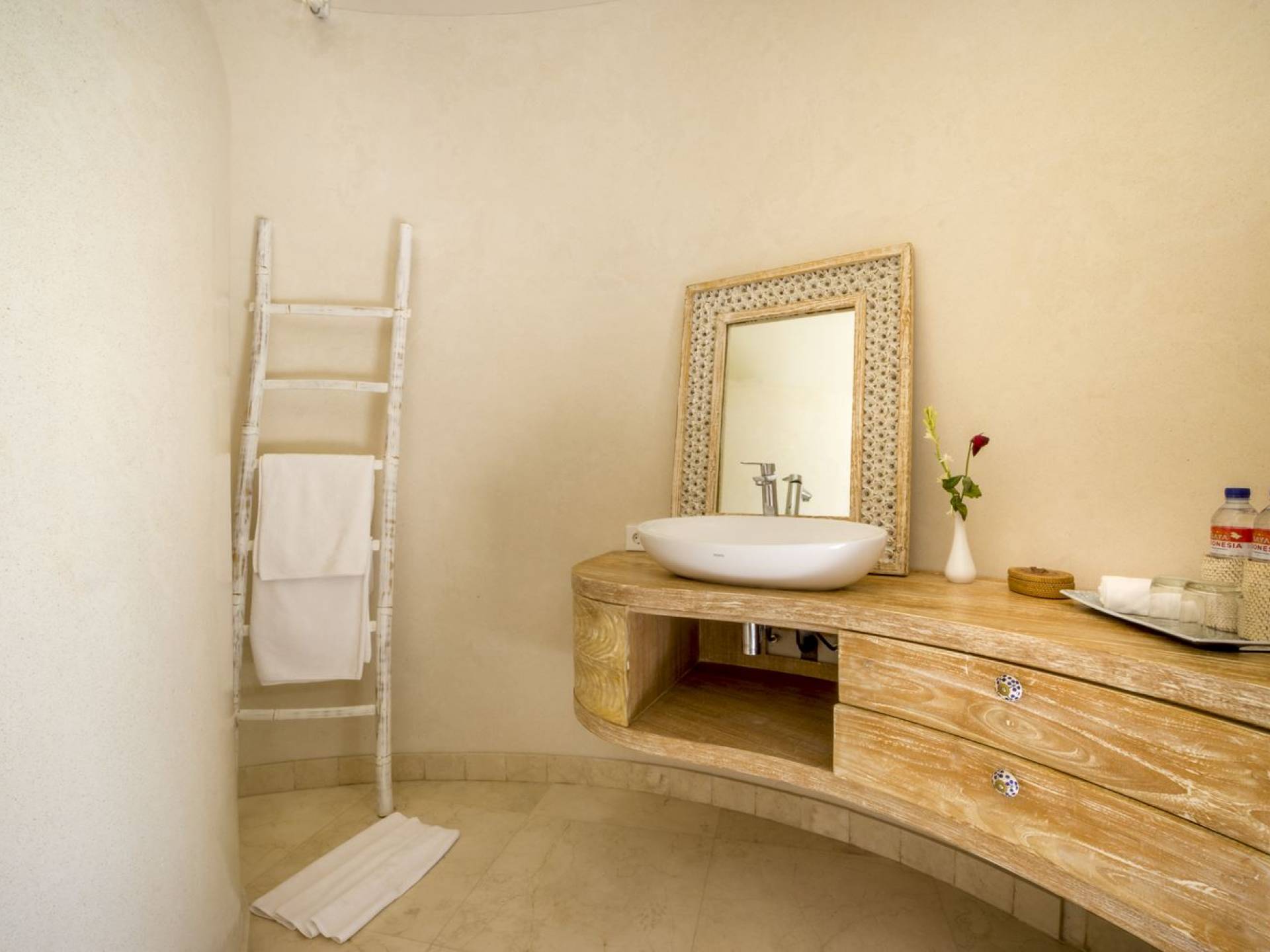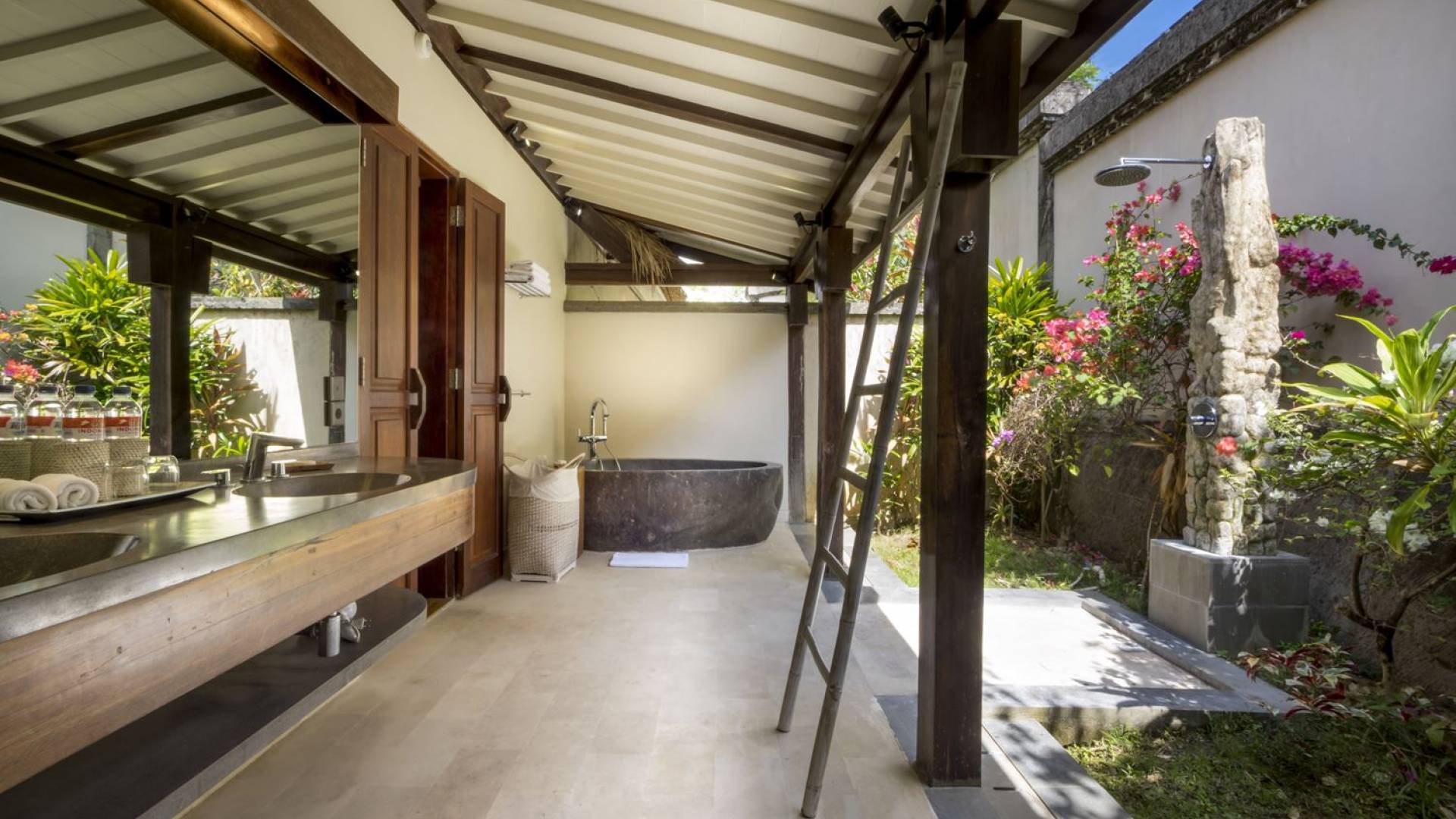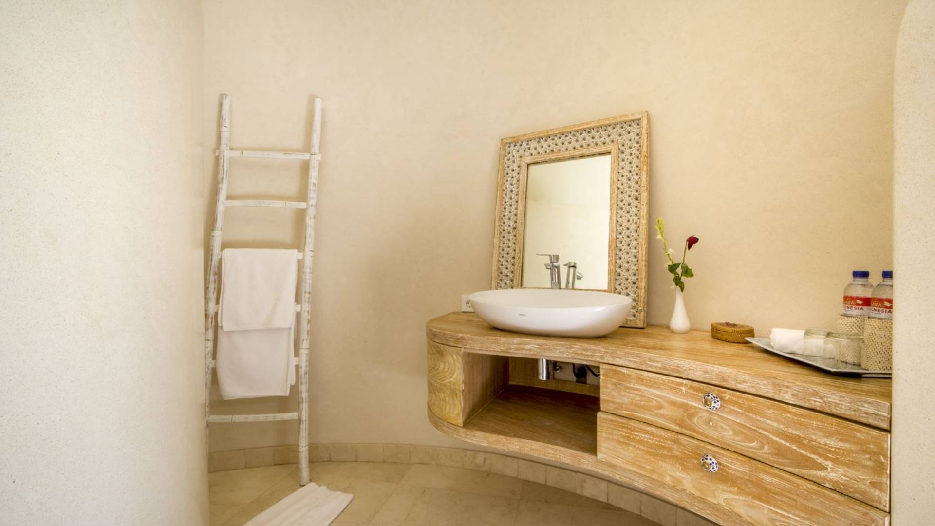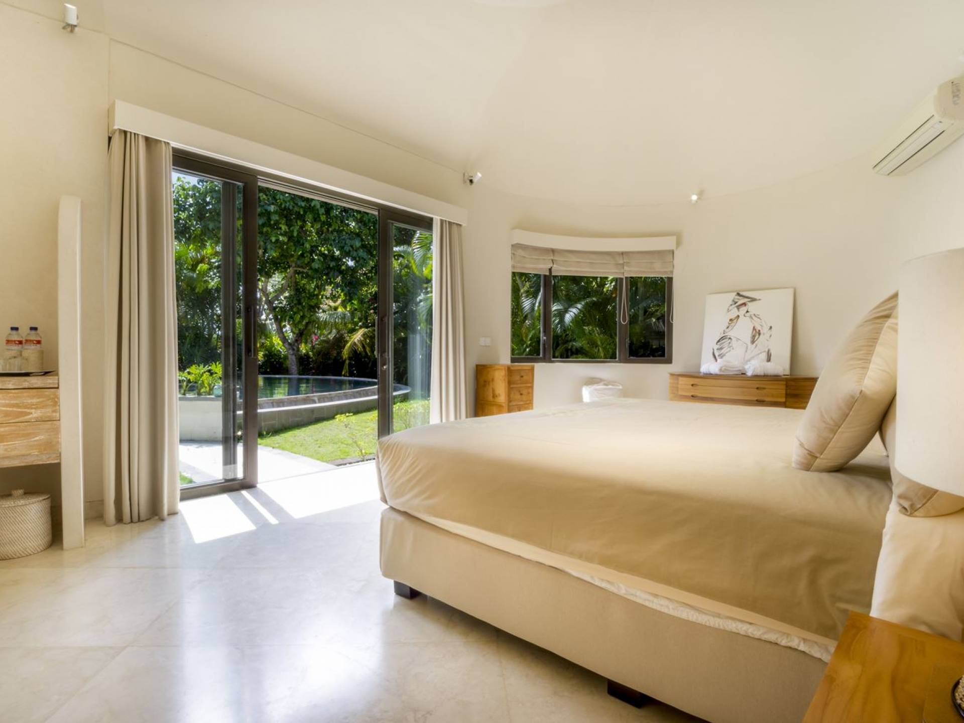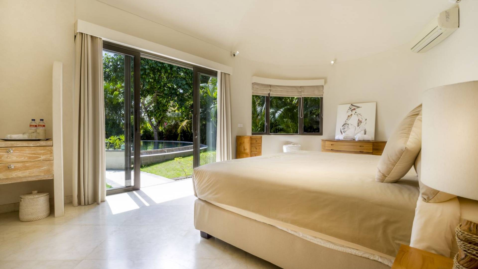 Esta adorable villa de lujo tradicional alberga 2 opulentas suites de un dormitorio. El dormitorio principal se encuentra dentro de la casa principal y el segundo dormitorio está ubicado en una casa de jardín separada de forma redonda, lo que brinda privacidad a todos los que se hospedan en Villa Lalita. El techo de paja tradicional de tono alto y el piso de madera rústica le dan al maestro dulce un ambiente natural y cálido. La luz natural del sol brilla durante todo el día, el aire puede circular fácilmente y la habitación está equipada con aire acondicionado. La gran cama tamaño king es súper cómoda y, antes de dormir, puede acurrucarse para ver una película o dos en el televisor de pantalla plana con canales internacionales y un reproductor de DVD. Detrás de la cama, hay un amplio vestidor con armarios de madera, un tocador y una caja de seguridad para guardar los objetos de valor que pueda tener. El baño privado está parcialmente al aire libre y está decorado con plantas con flores y vegetación tropical, un lugar maravilloso para disfrutar de una ducha bajo las estrellas o de un largo baño caliente en la bañera de roca de río. El segundo dormitorio también está completamente climatizado, equipado con dos camas individuales (convertibles en una cama doble extragrande bajo petición) y la habitación cuenta con una ducha en la habitación con un diseño único. ¡Lo verás cuando estés allí!