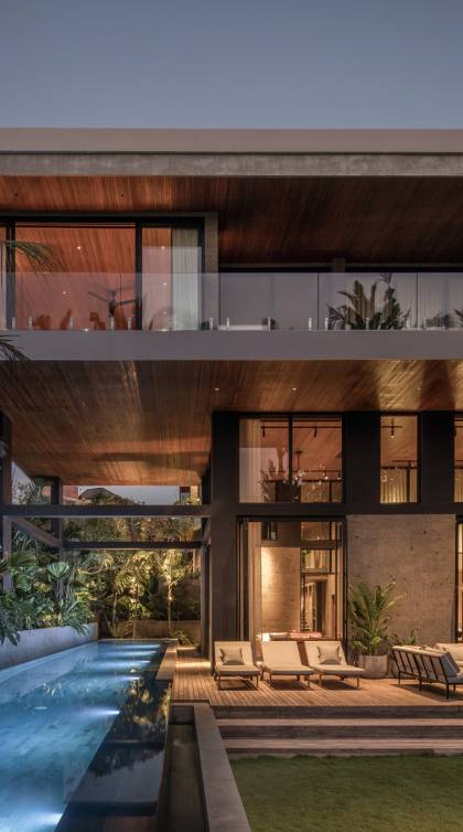 The River House Bali es una impresionante joya de diseño escondida en la idílica aldea frente al mar de Bali, Indonesia. Campos de arroz vecinos y lugares para surfear en Pererenan, a solo unos minutos de la emoción de la moda de Canggu. The River House Bali ofrece una arquitectura futurista impecable basada en vidrio integral y líneas limpias y contemporáneas, idealmente equilibradas por los interiores curados de la villa, que son claramente una sesión de fotos a punto de suceder.