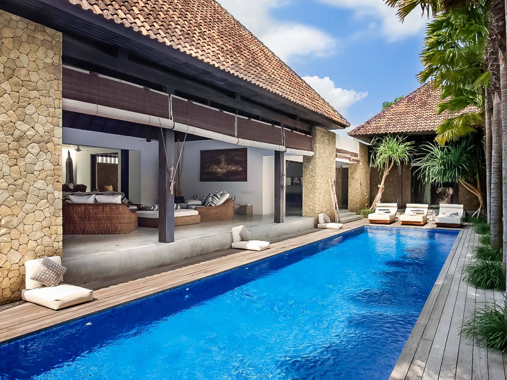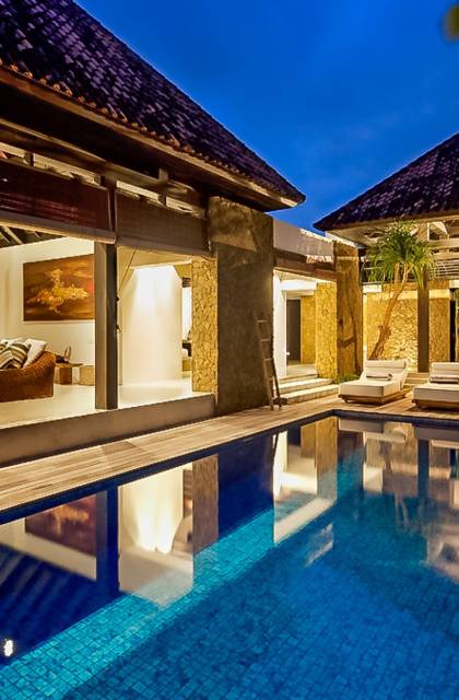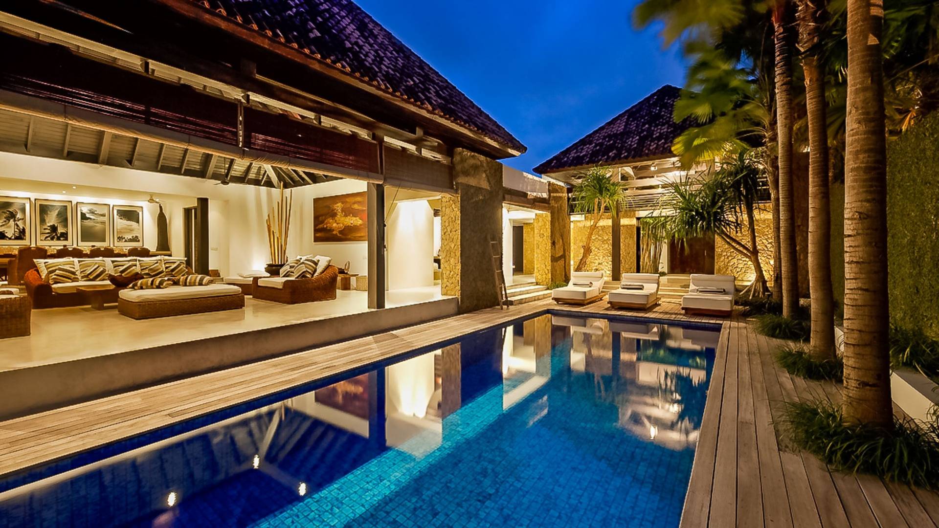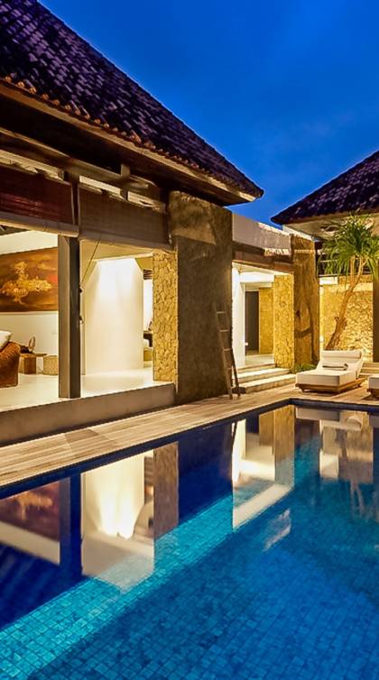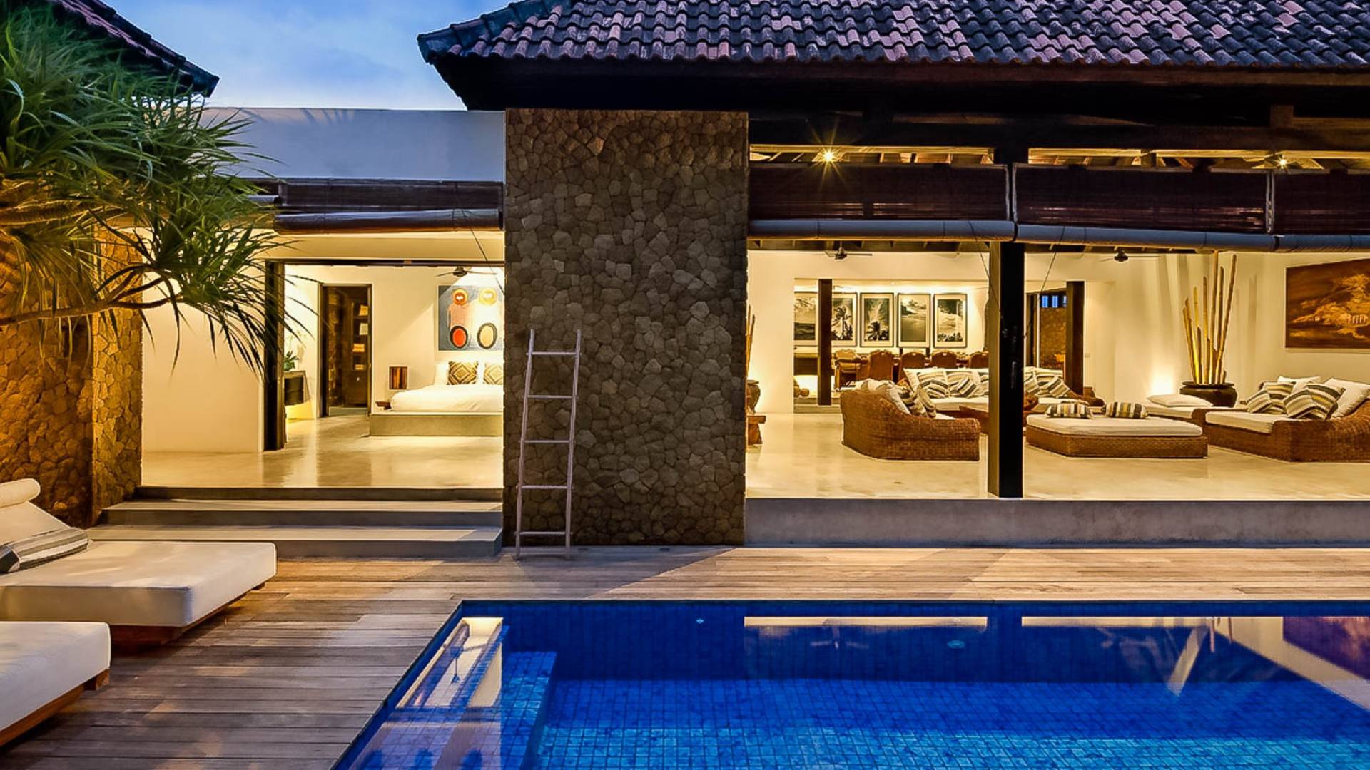 Villa Hana Canggu es una villa de vacaciones en alquiler con 4 dormitorios y piscina privada. Seguro en su propio jardín amurallado, la Villa Hana sorprendentemente contemporánea y con personal completo ofrece suites de cuatro dormitorios, que incluyen una habitación con literas dobles para niños, una sala multimedia con TV de 52 pulgadas y Playstation 2, y un pabellón de estar de dos niveles con vista a la piscina, ideal para familias con niños. Los amigos que practican surf apreciarán el ambiente relajado y relajado y el paseo de 300 metros hasta las zonas de surf de Echo Beach. Un coche y un conductor están disponibles a un precio especial; aunque con el extenso menú interno y el comedor formal y la gran terraza para barbacoa, no es necesario salir de la villa.