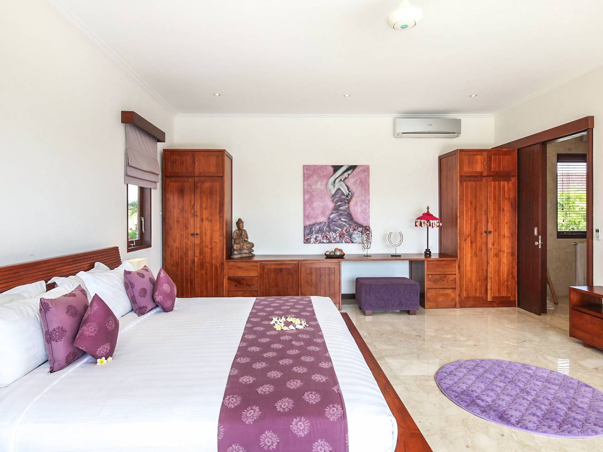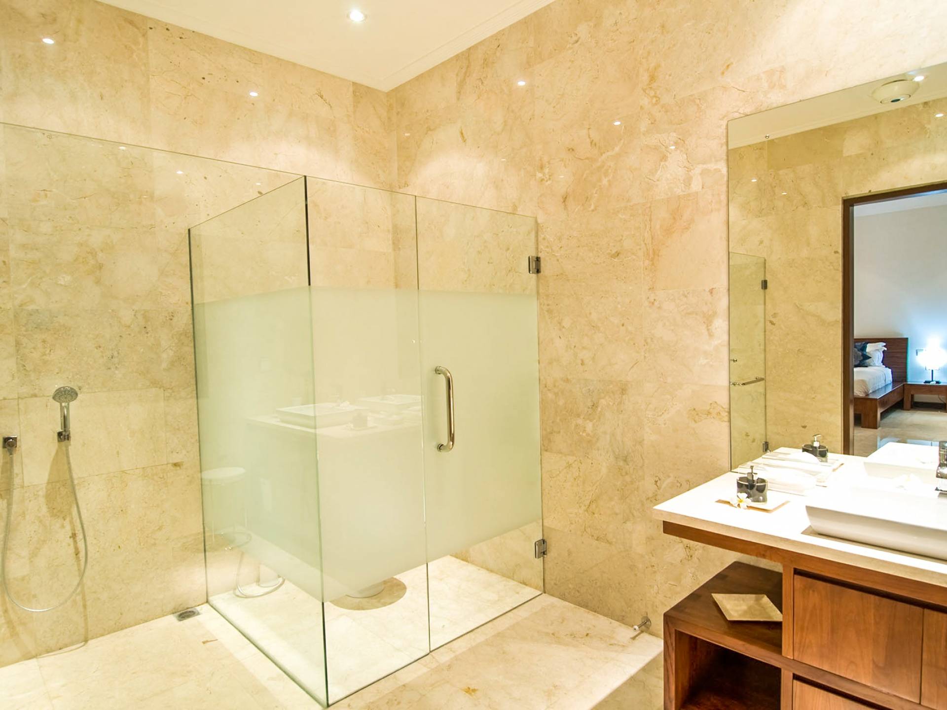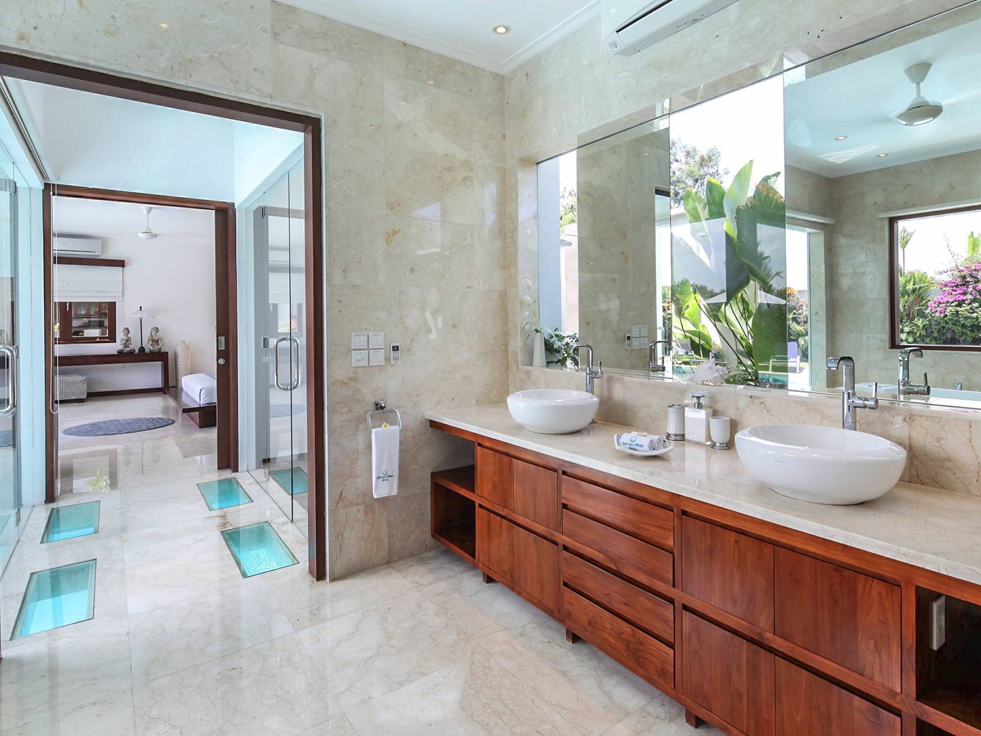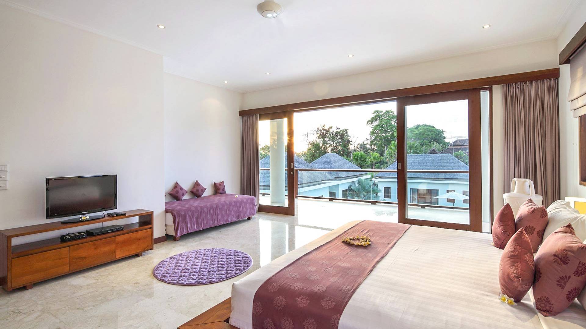 El dormitorio principal hará realidad tus sueños ya que está contiguo a la piscina, listo para que puedas sumergirte en cualquier momento y la habitación cuenta con un jacuzzi de súper lujo y una ducha tipo lluvia exterior e interior. Esta amplia habitación blanca cuenta con una cama extragrande, hermosas obras de arte y una zona de estar con TV de pantalla plana con reproductor de DVD. También hay un vestidor con aire acondicionado, caja fuerte y minibar.