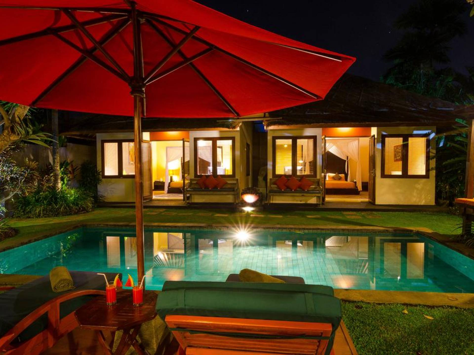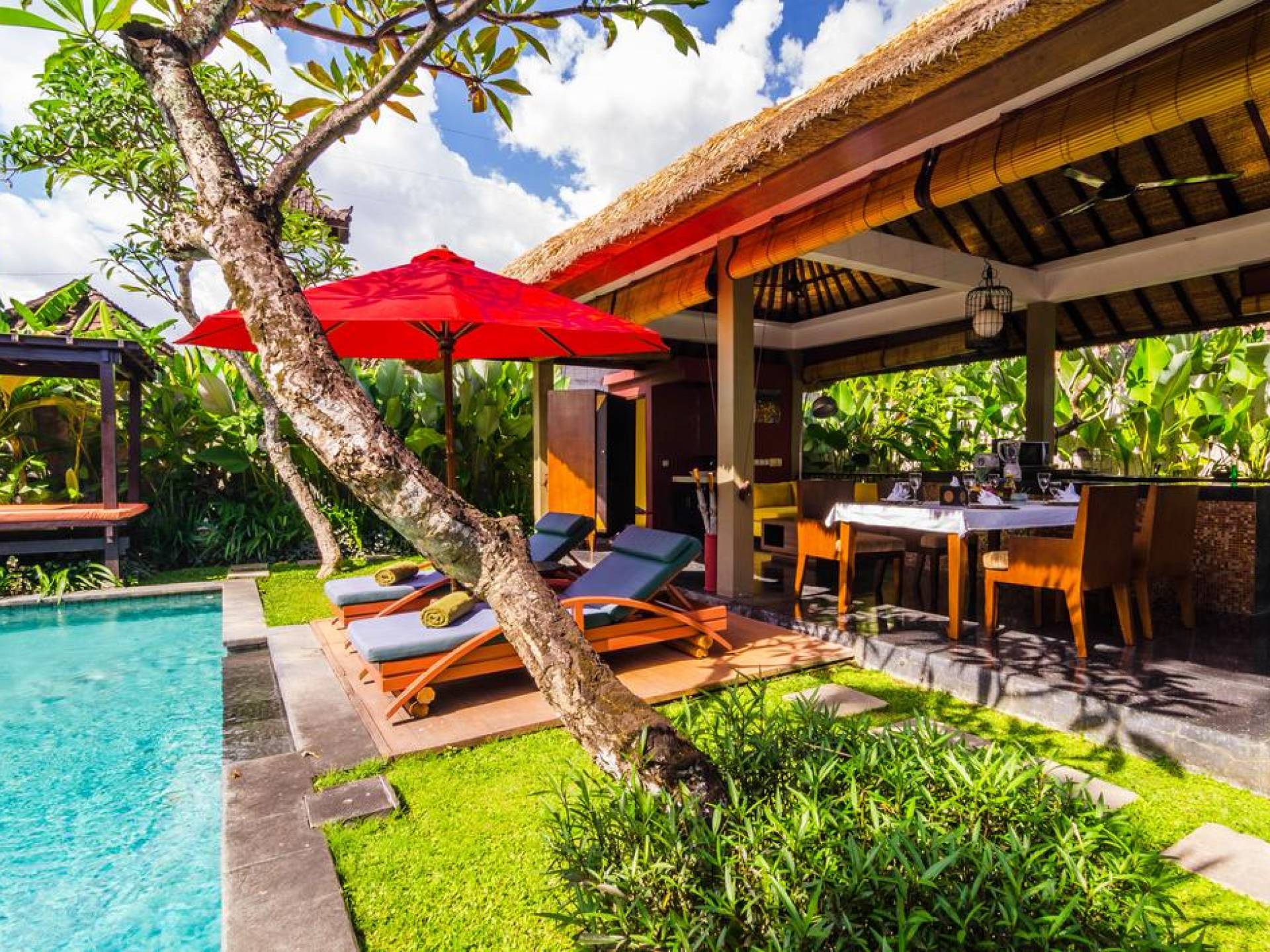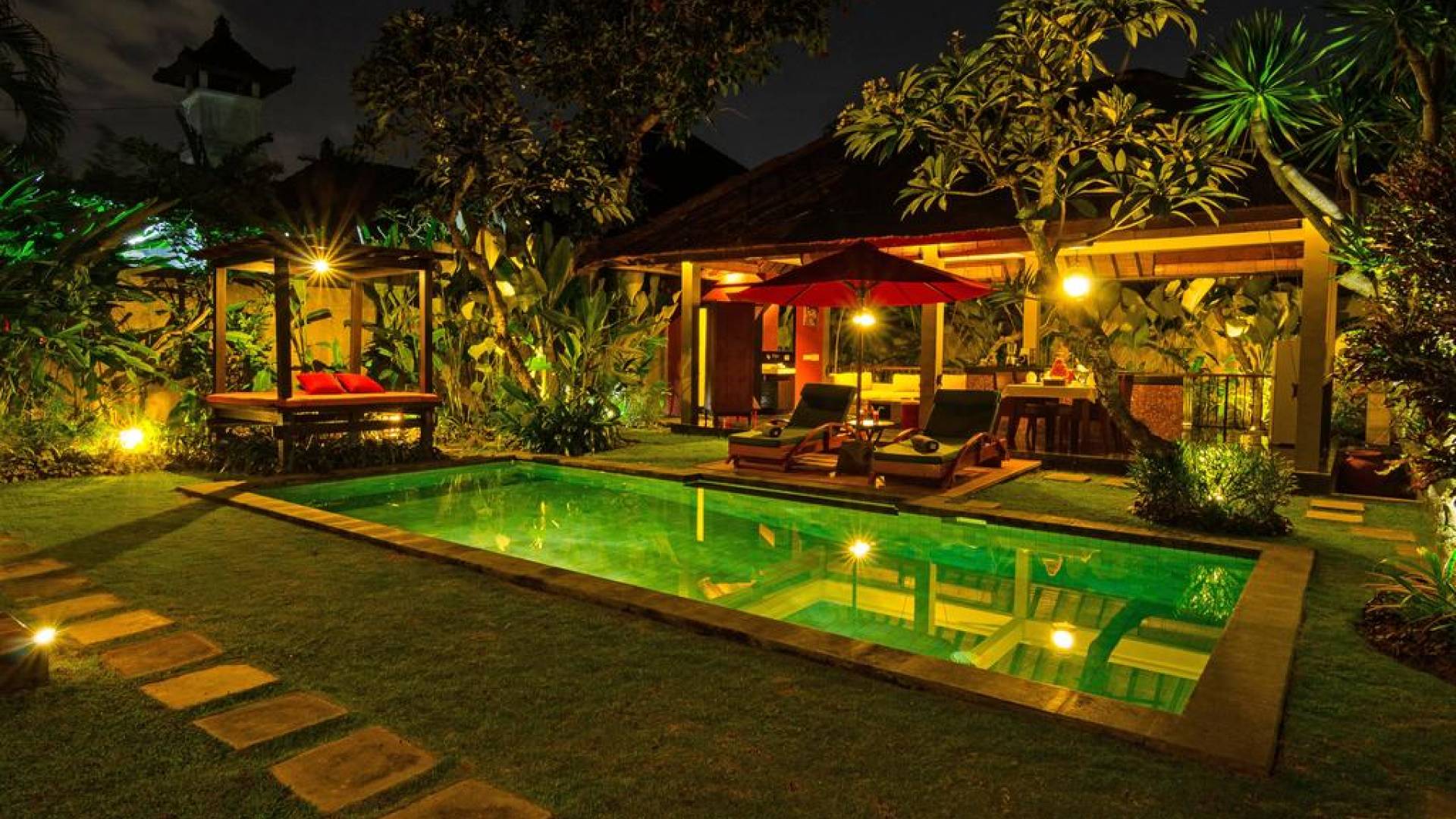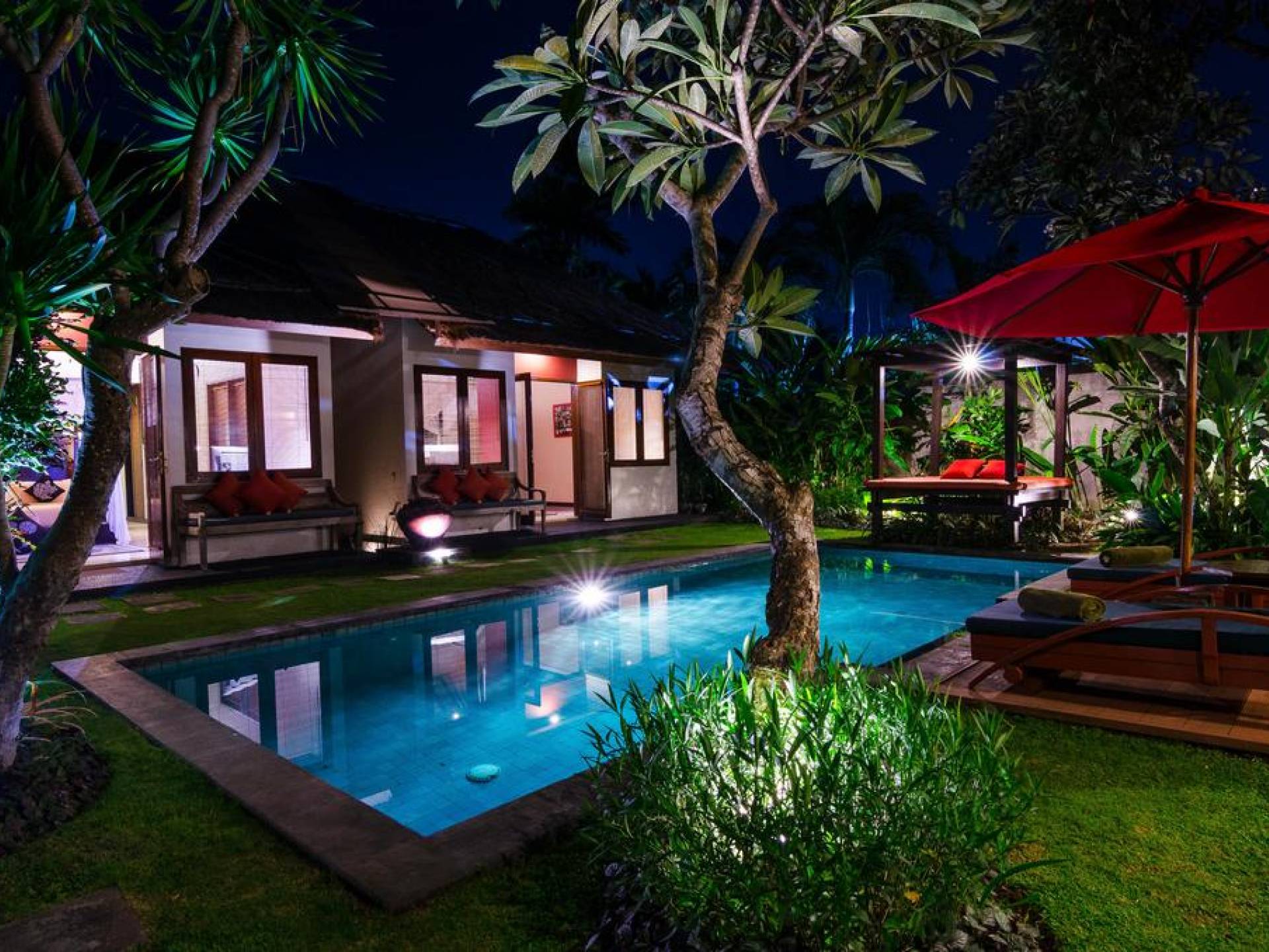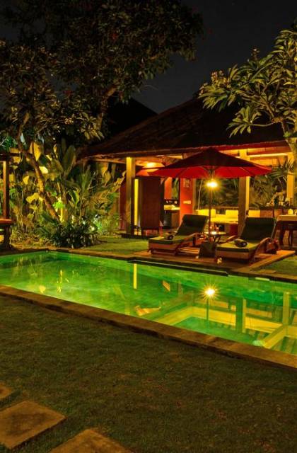 Villa Malika en Imani Villas Canggu es una villa de 2 dormitorios de una sola planta compuesta por dos pabellones de techo de paja "alang-alang" colocados en lados opuestos de una piscina de entrenamiento de 4.5 x 8 metros, dentro de un patio con jardín amurallado. El bonito jardín se caracteriza por un césped plano y verde plantado con fragantes árboles frangipani en flor, pandanus, palmeras, lirios araña y heliconias.