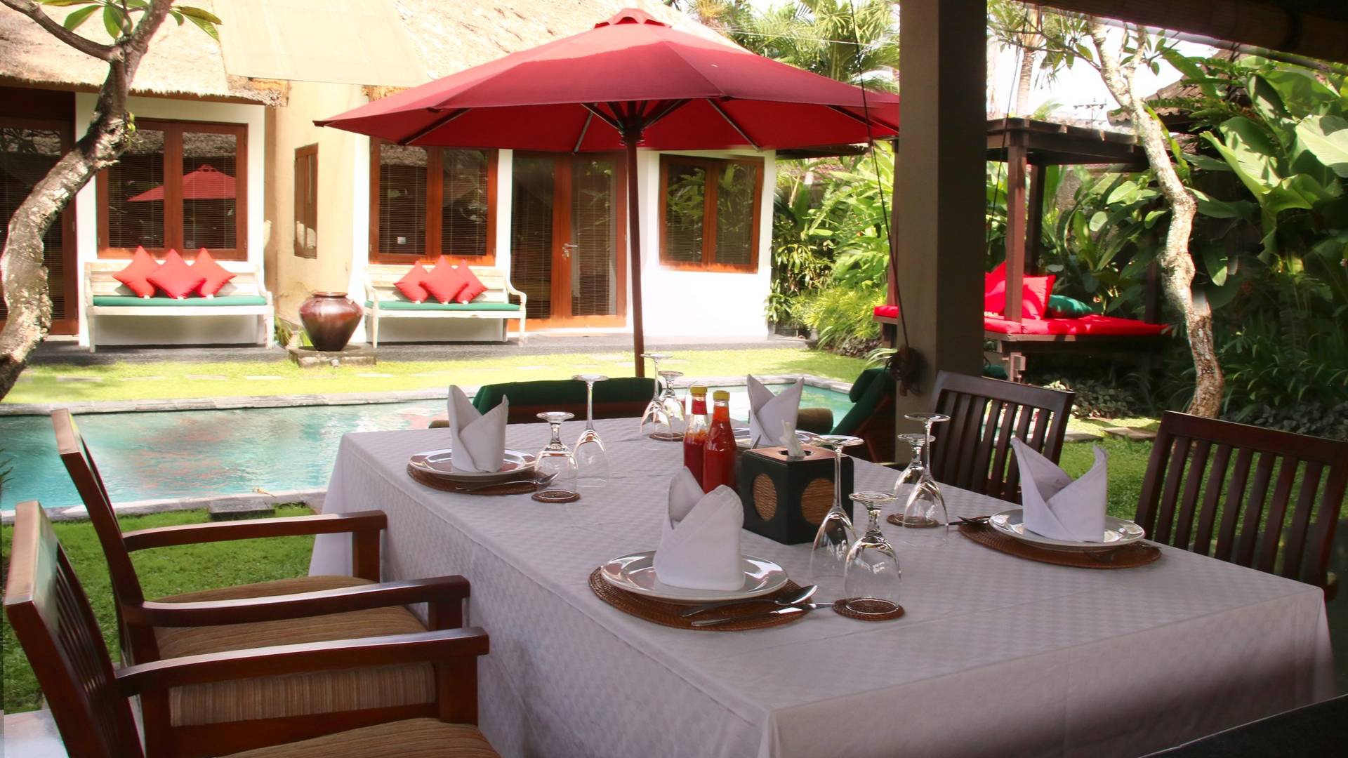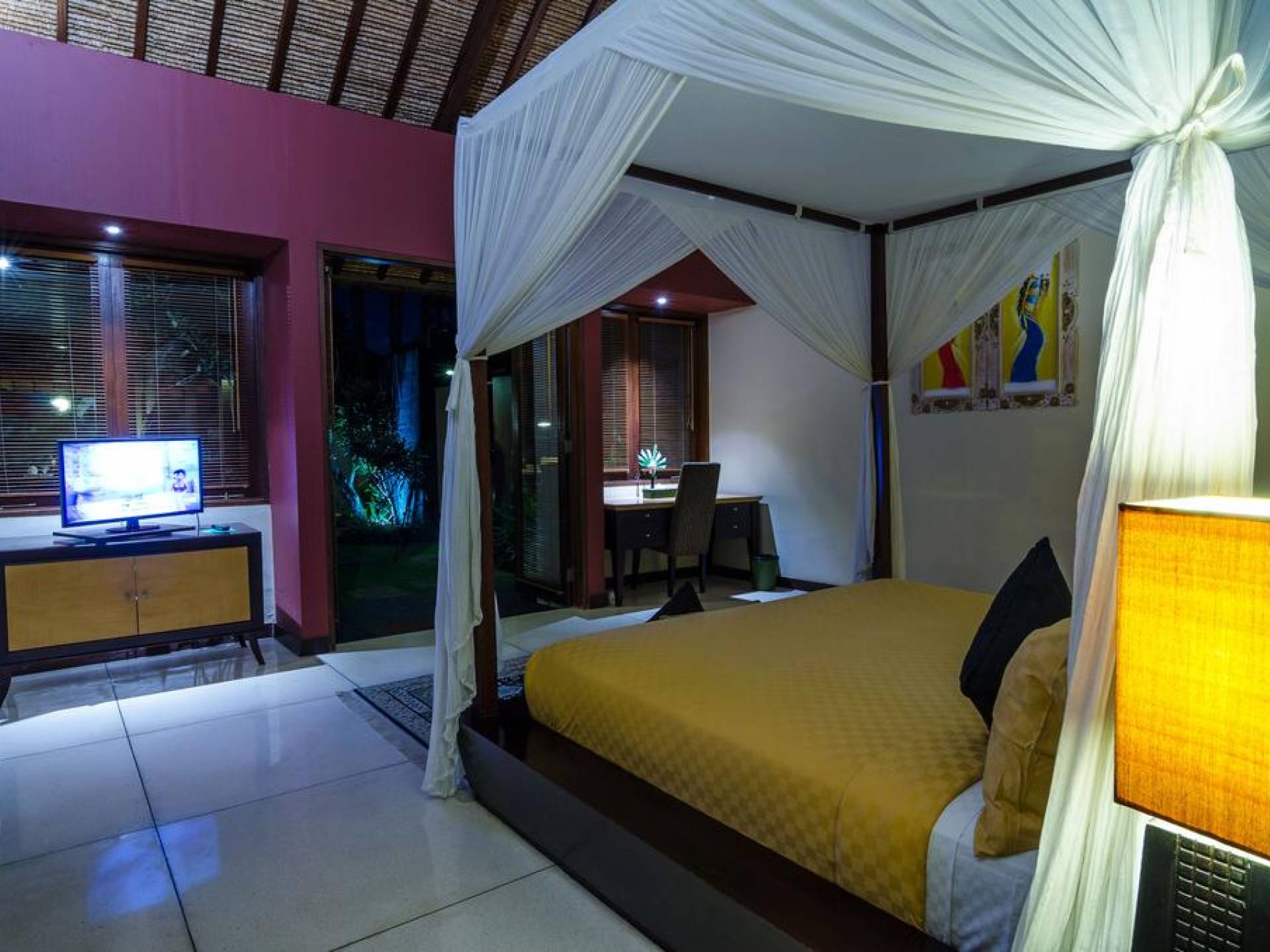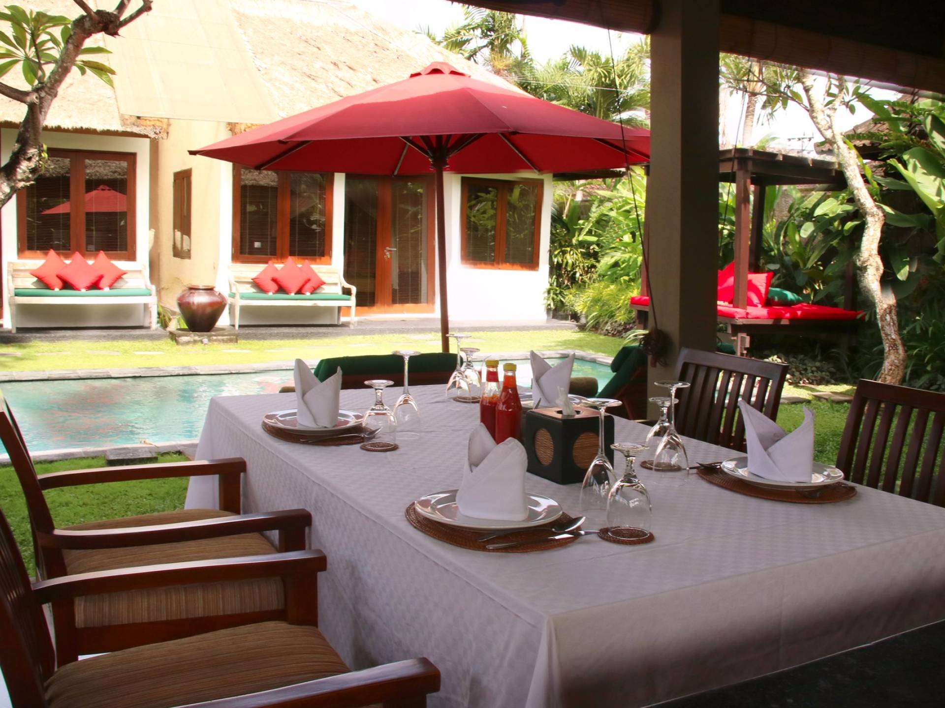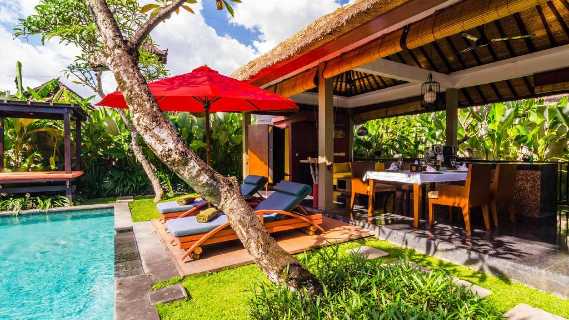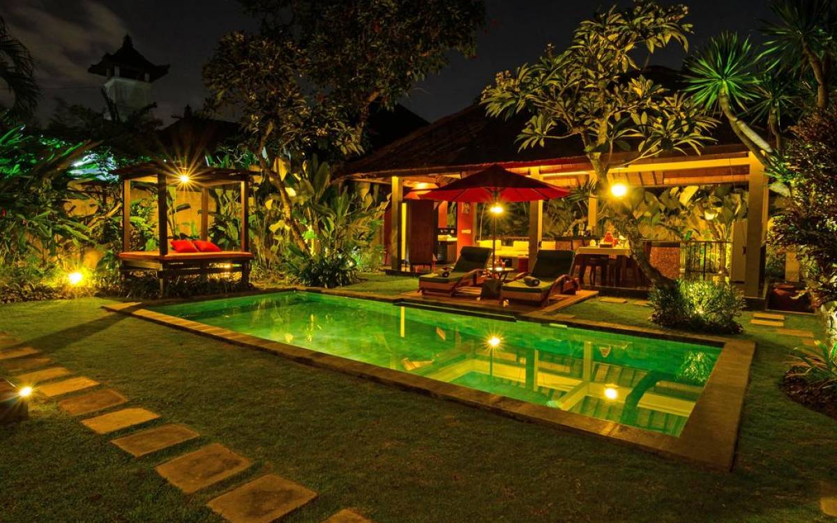 Villa Malika en Imani Villas Canggu es una villa de 2 dormitorios de una sola planta compuesta por dos pabellones de techo de paja "alang-alang" colocados en lados opuestos de una piscina de entrenamiento de 4.5 x 8 metros, dentro de un patio con jardín amurallado. El bonito jardín se caracteriza por un césped plano y verde plantado con fragantes árboles frangipani en flor, pandanus, palmeras, lirios araña y heliconias.
