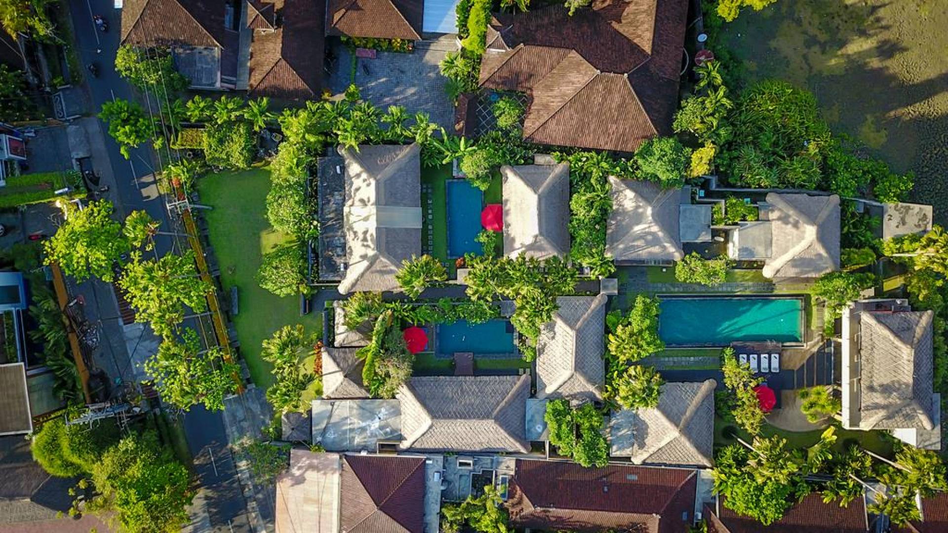 Imani Villas es un complejo de tres villas con techo de paja de 3 y 2 dormitorios, cada una con una piscina privada, escondida en los campos de arroz, a solo diez minutos en coche de la playa en la costa suroeste de Bali. El estilo combina la arquitectura balinesa moderna con un diseño minimalista y materiales locales. Todas las villas son completamente independientes y seguras, con entradas privadas unidas por un camino amurallado bordeado de lirios araña y follaje verde. La proximidad de las tres propiedades con un total de 7 dormitorios significa que el complejo es ideal para grupos más grandes de personas o familias que desean estar cerca unos de otros sin perder un elemento de independencia y privacidad.