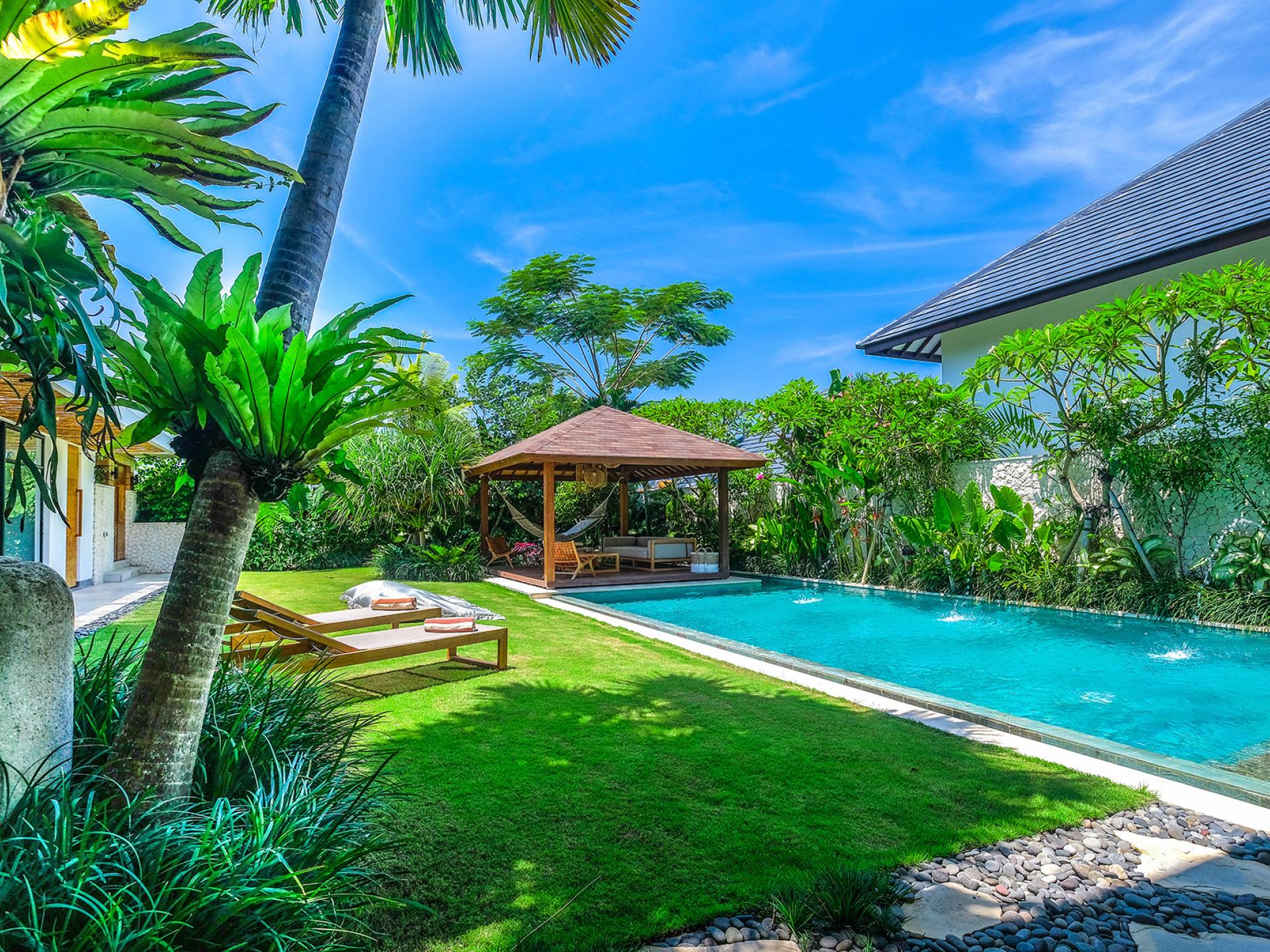 Familias o grupos de amigos que quieran estar cerca de la acción en el moderno y moderno barrio de Batu Bolong y tener una cómoda villa para retirarse en un refugio tranquilo escondido de todo el ajetreo y el bullicio.