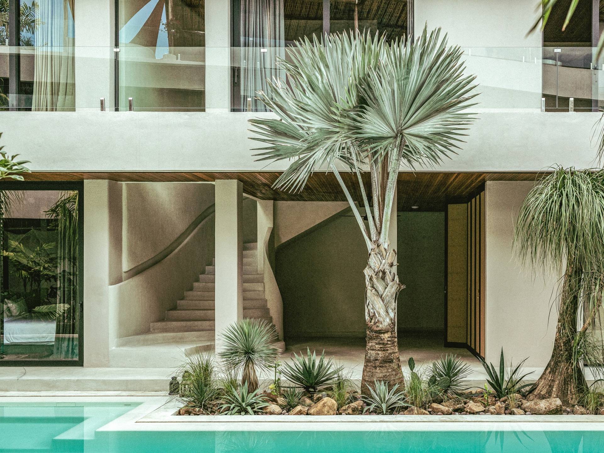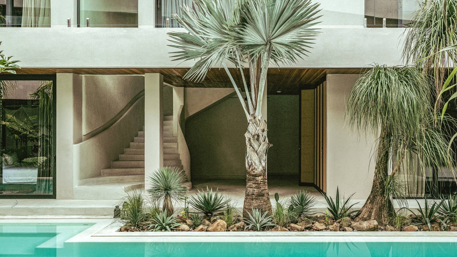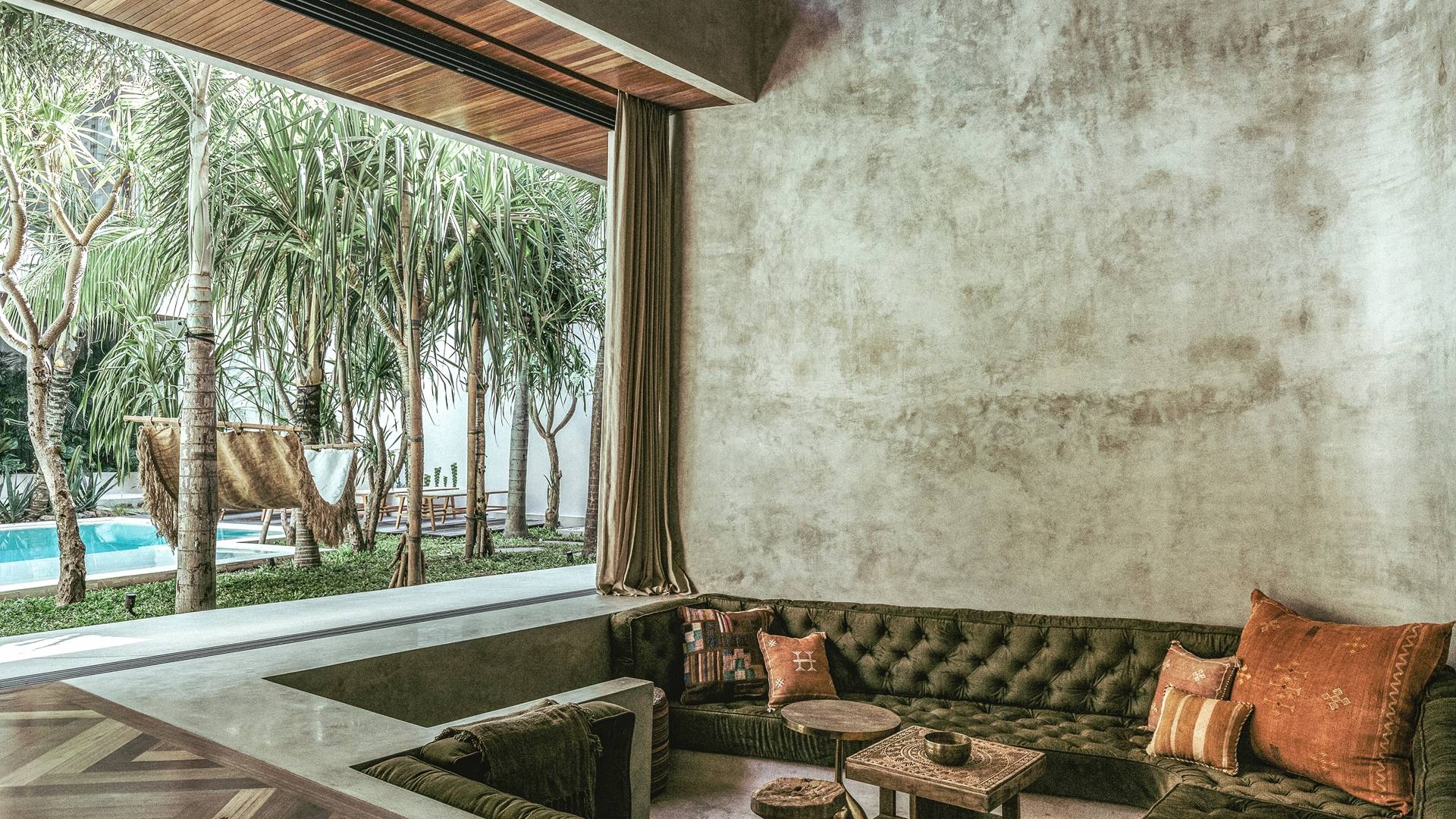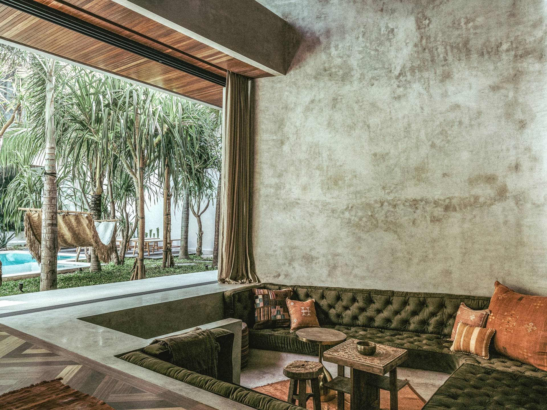 Redefiniendo la experiencia de la villa en Canggu con su nivel único y personalizado de lujo y comodidad, venga a descubrir y déjese cautivar por el alma que es The Turiya. Reflejando la naturaleza y el paisaje de Bali, la paleta de colores de los interiores de The Turiya combina cálidos tonos tierra, oliva y verdes reales, que cobran vida a través de materiales de textura como madera, terrazo, latón cepillado, terciopelo, pisos de cemento pulido y cal. paredes lavadas.
